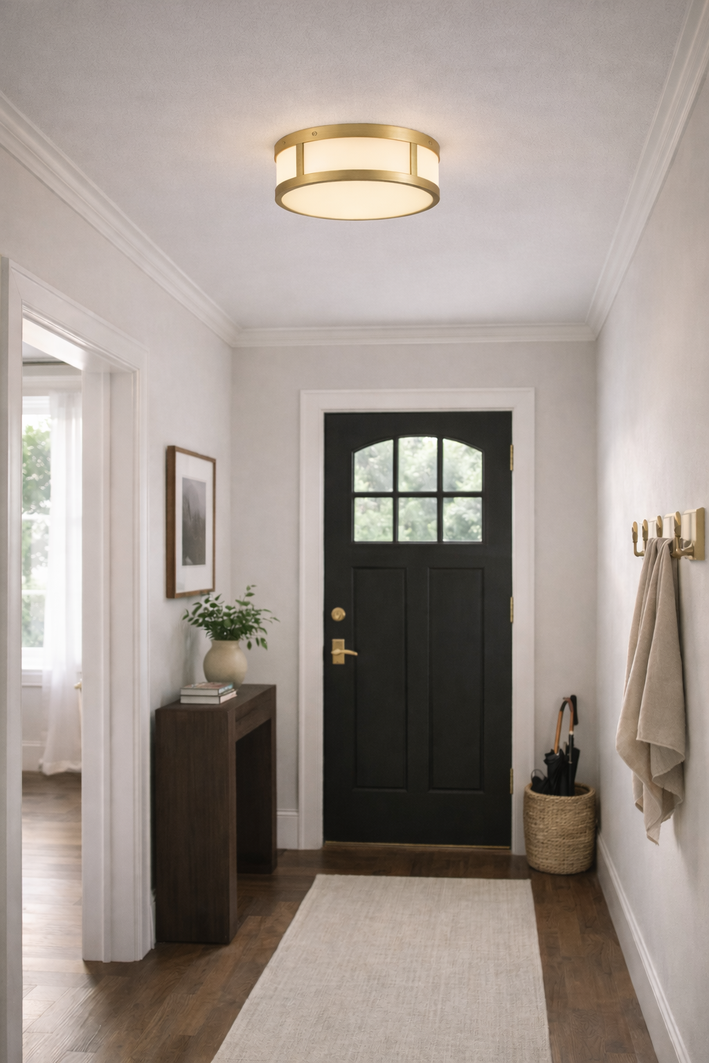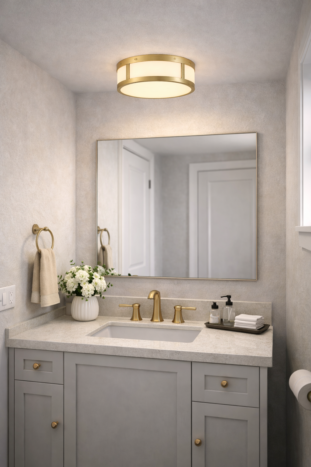 NEOSGO 10-inches Antique Brass Intgrated LED Flush Mount Light is intended to provide focused wall lighting while also adding decorative detail to the surrounding space. This style is especially useful near mirrors, over bathroom vanities, along hallways, in bedrooms, or in accent areas that benefit from directed light rather than relying only on ceiling fixtures. Based on the product presentation, it offers a practical mix of daily illumination and visual styling, which helps the room feel more complete and intentionally designed. It is a good option for customers who want better task lighting together with a more refined finished look on the wall. Overall size is approximately 12.68 x 12.68 x 6.69 inches with a listed weight of 4.75. The current listing includes 10 product images, which help clarify the product shape, proportions, and visual placement in a real room setting.
