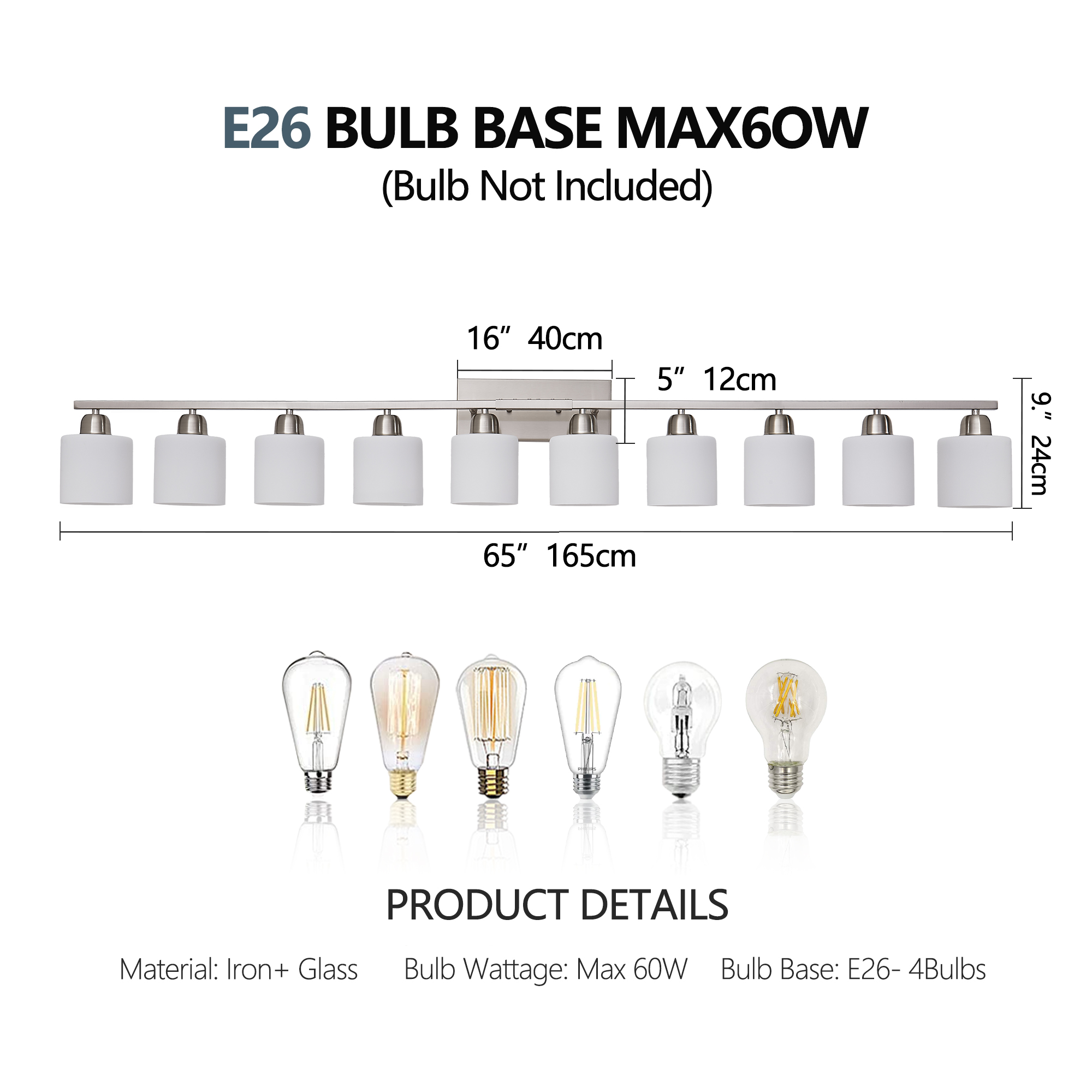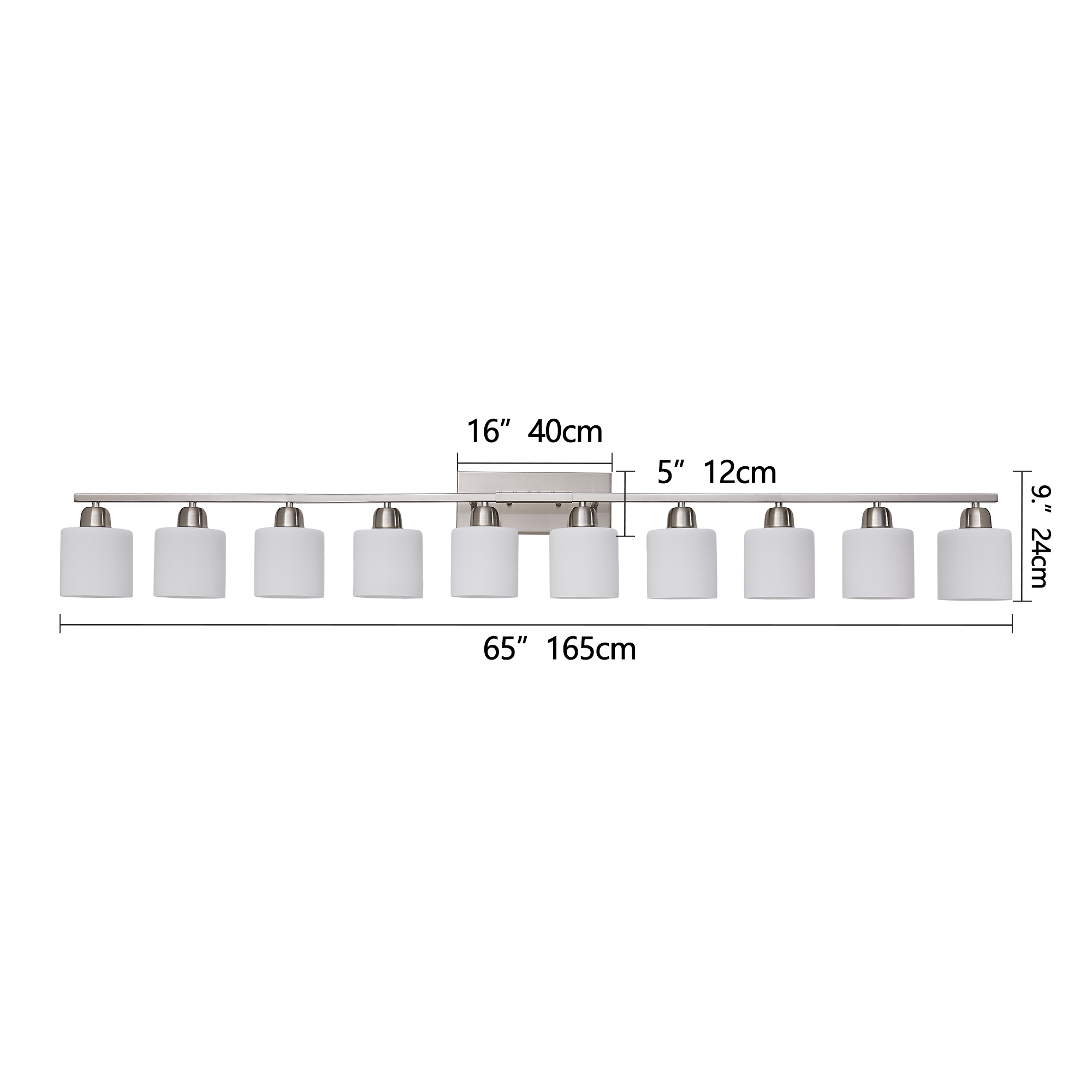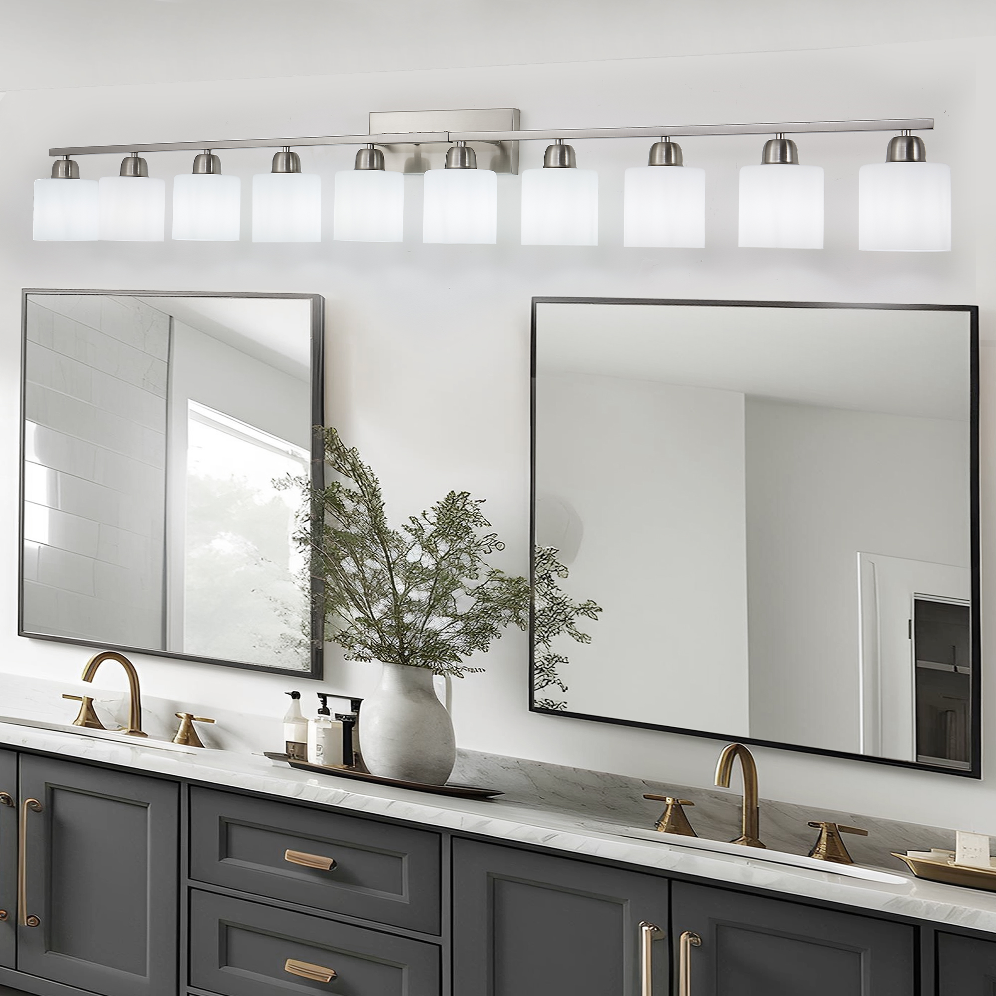 10-Light Bathroom Light Fixtures, 6552inch Nickel Vanity Light with Milky White Glass Shade, Modern Bathroom Wall Lights Over Mirror, Farmhouse Wall Sconces Lighting for Bedroom Living Room