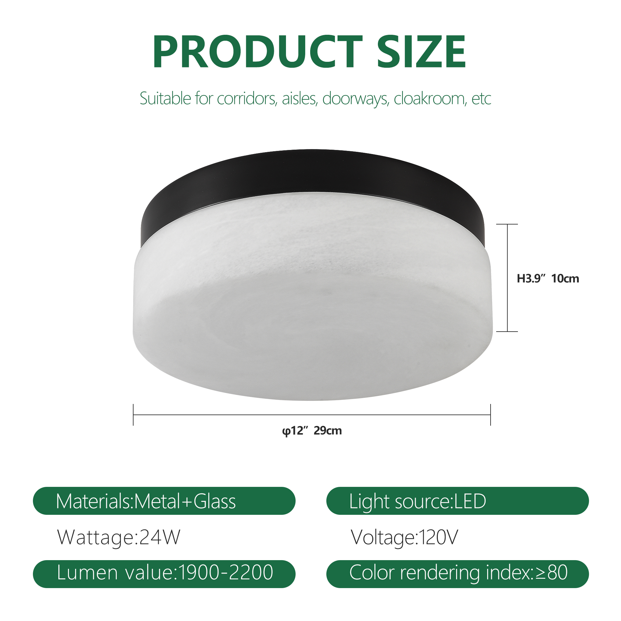 12 Inch LED Ceiling Light, 24W Flush Mount Ceiling Light,Round Low Profile Ceiling Lights for Bedroom, Living Room, Dining Room(Black)