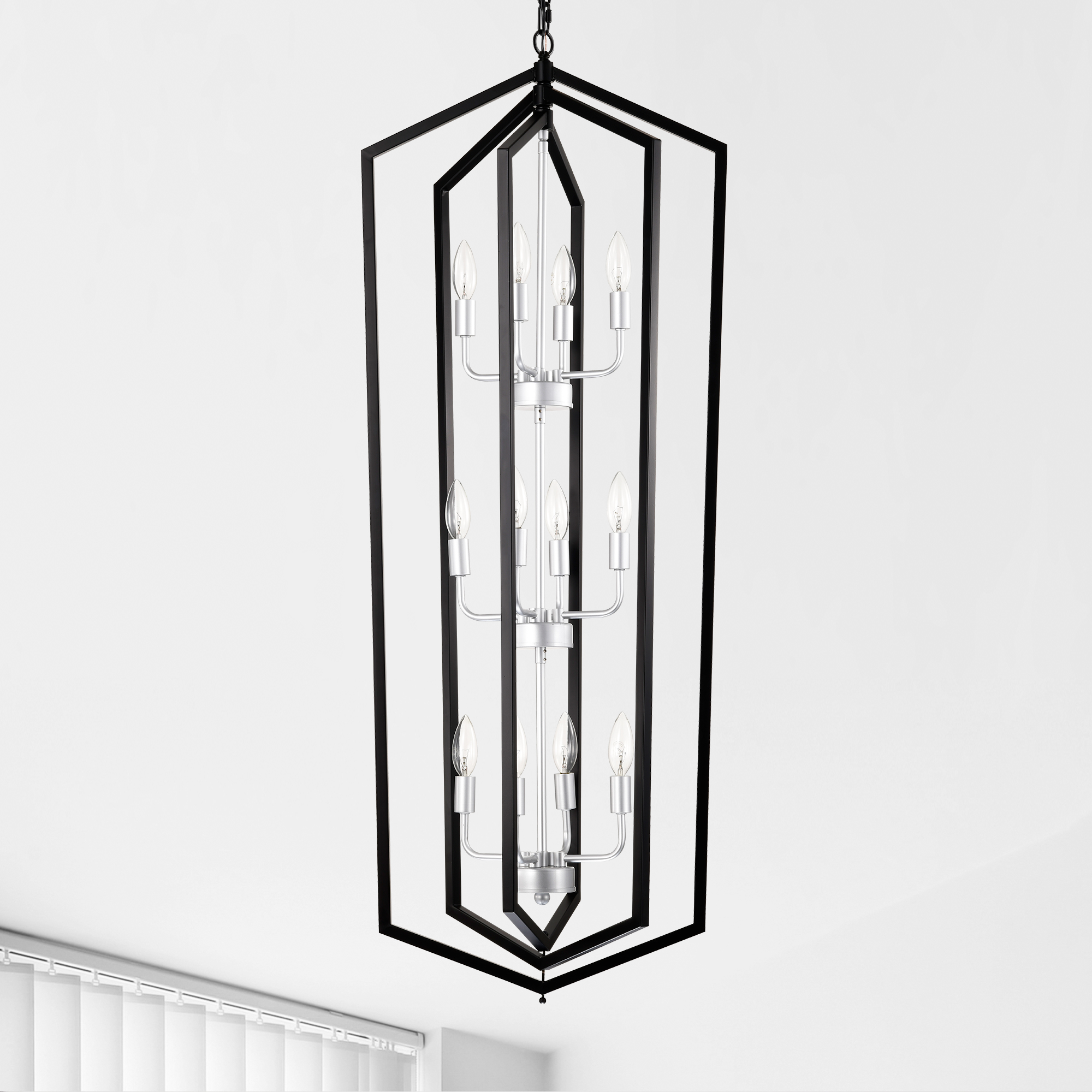 12-Light Farmhouse Kitchen Chandeliers, Matte Black and Sliver Vintage Rustic Cage Light Fixture Adjustable Height Chandeliers for Dining Room Hallway Foyer Entryway(E12 Bulbs Not Included)