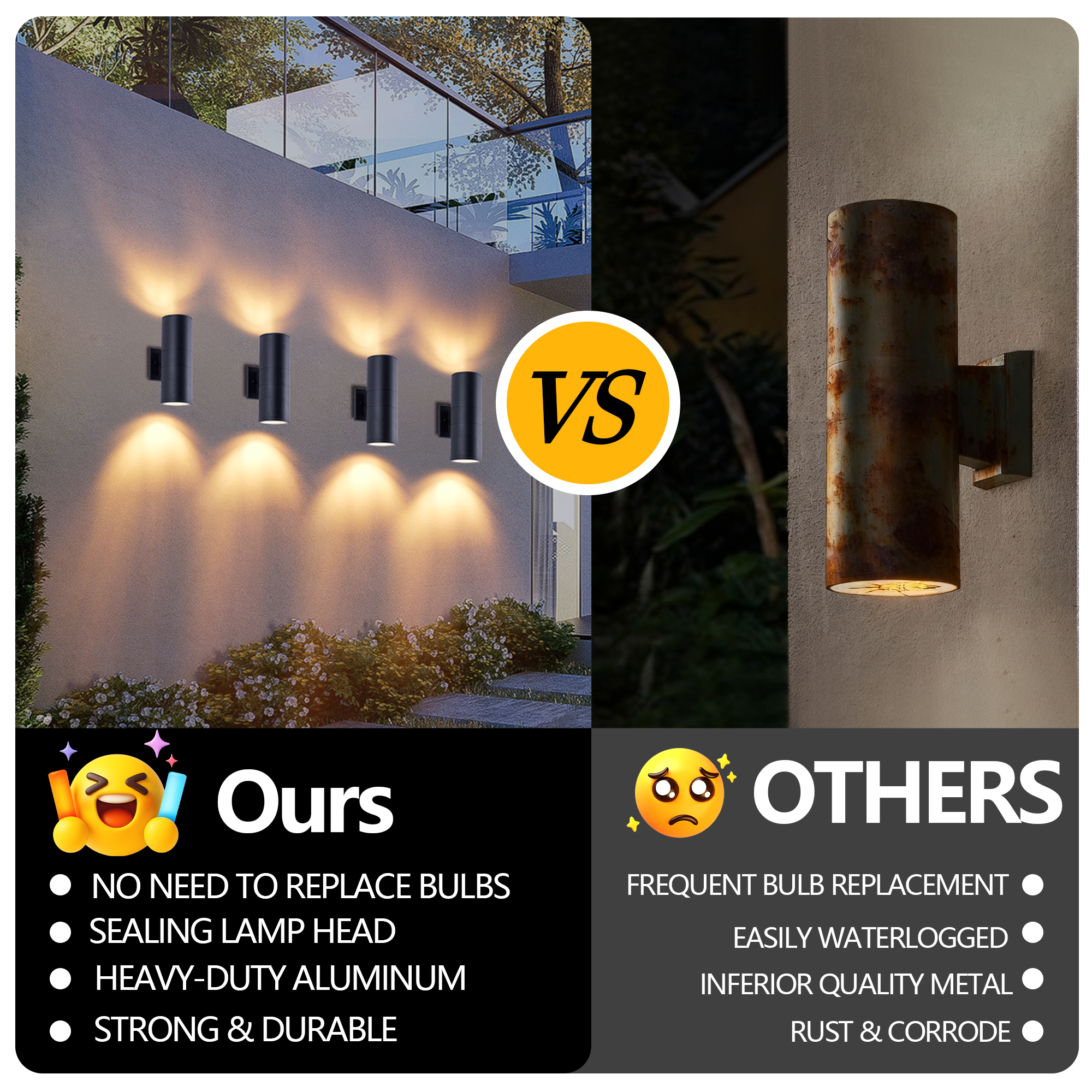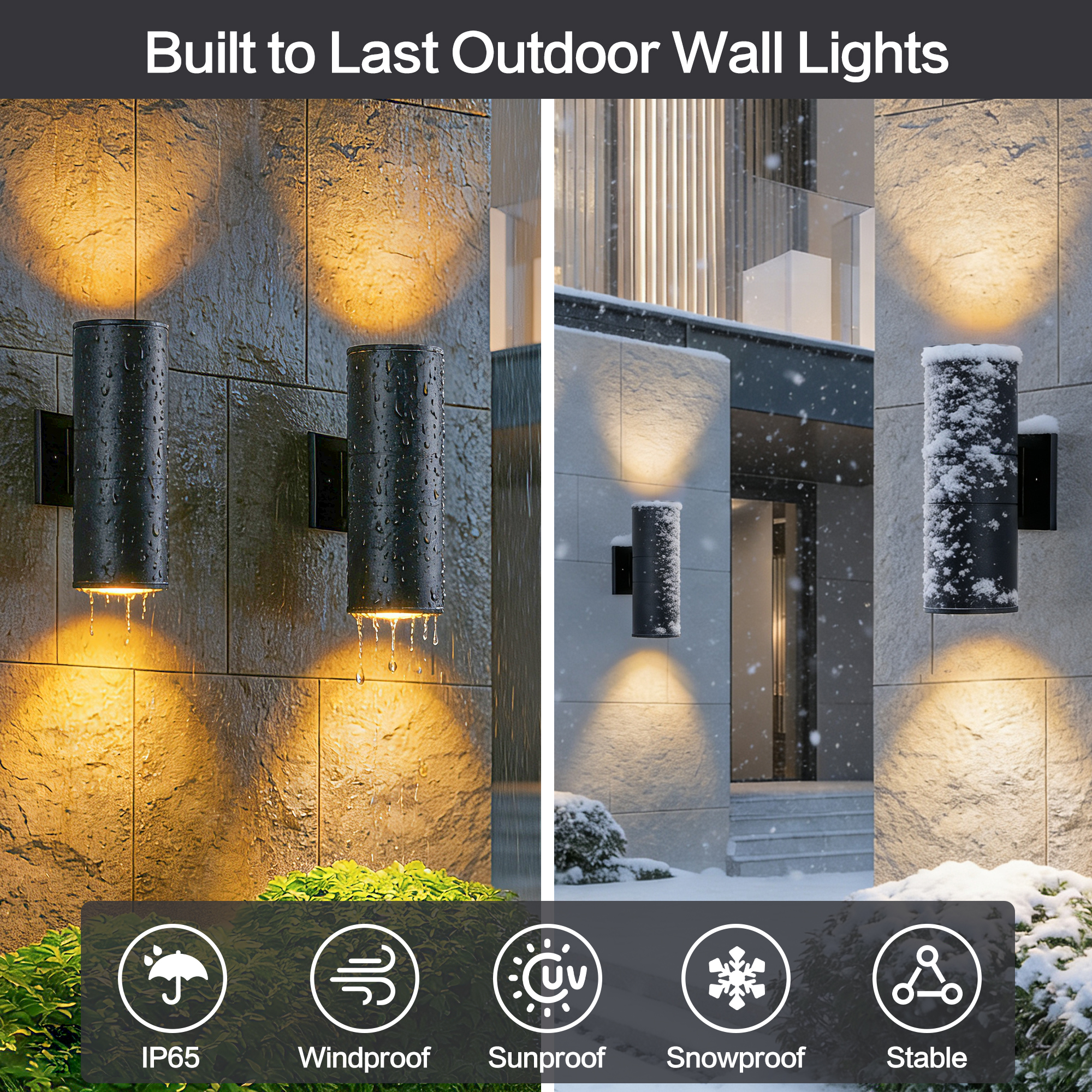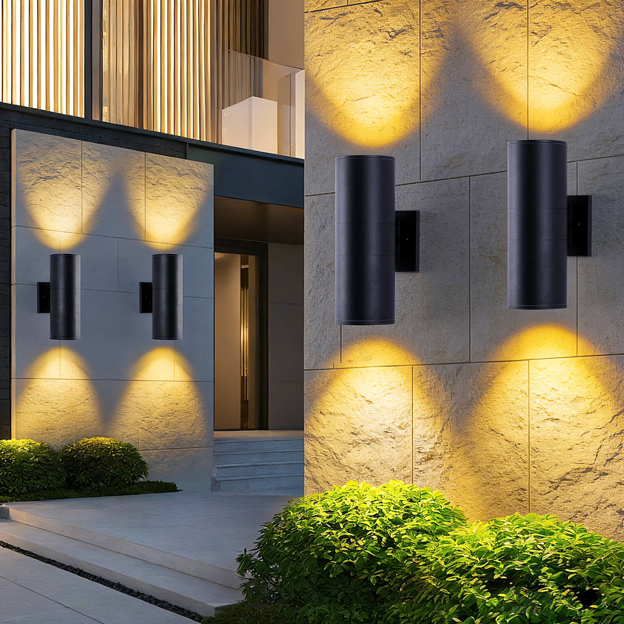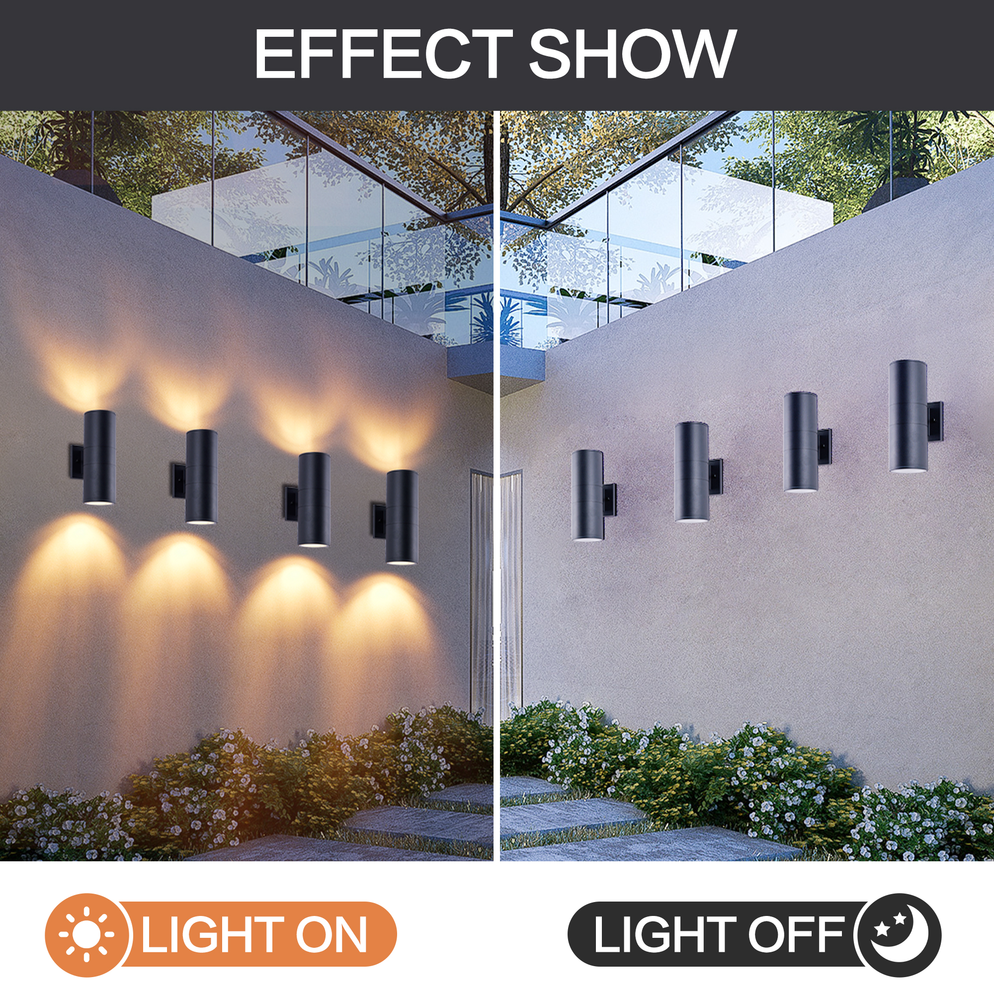 12in Outdoor Wall Lights 4Pack, Cylinder Up Down Lights, 60W 2700K Aluminum Exterior Wall Light, Outdoor Light Fixture for Porch Patio Door.(Matte Black)
