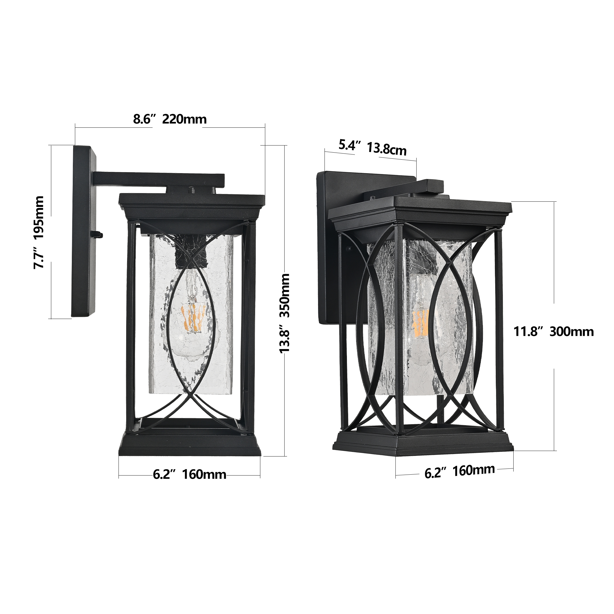 NEOSGO 14"(H) 1-pack Black Outdoor Wall Lantern with Crackled Glass, Weather-Resistant Exterior Light Fixture for Porch, Patio, and Entryway, Modern Decorative Wall Sconce with E26 Base (Bulb Not Included) is intended to provide focused wall lighting while also adding decorative detail to the surrounding space. This style is especially useful near mirrors, over bathroom vanities, along hallways, in bedrooms, or in accent areas that benefit from directed light rather than relying only on ceiling fixtures. Based on the product presentation, it offers a practical mix of daily illumination and visual styling, which helps the room feel more complete and intentionally designed. It is a good option for customers who want better task lighting together with a more refined finished look on the wall. Overall size is approximately 17.32 x 7.28 x 13.19 inches with a listed weight of 5.8. The current listing includes 11 product images, which help clarify the product shape, proportions, and visual placement in a real room setting.