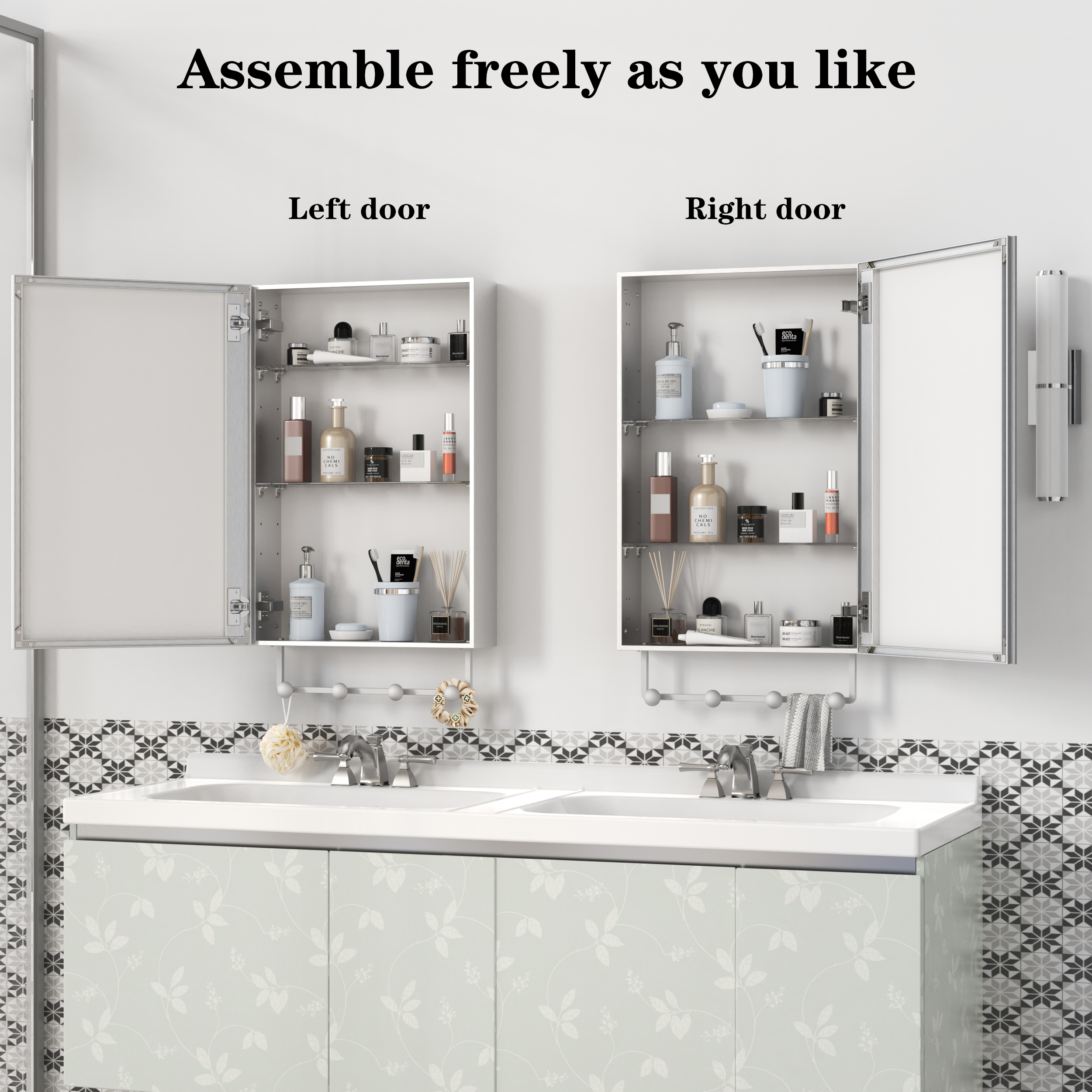 16'' x 24'' Medicine Cabinet with Mirror for Bathroom, Wall Mounted Bathroom Mirror with Storage, Adjustable Shelves, Aluminum Framework, Surface Mount Silver