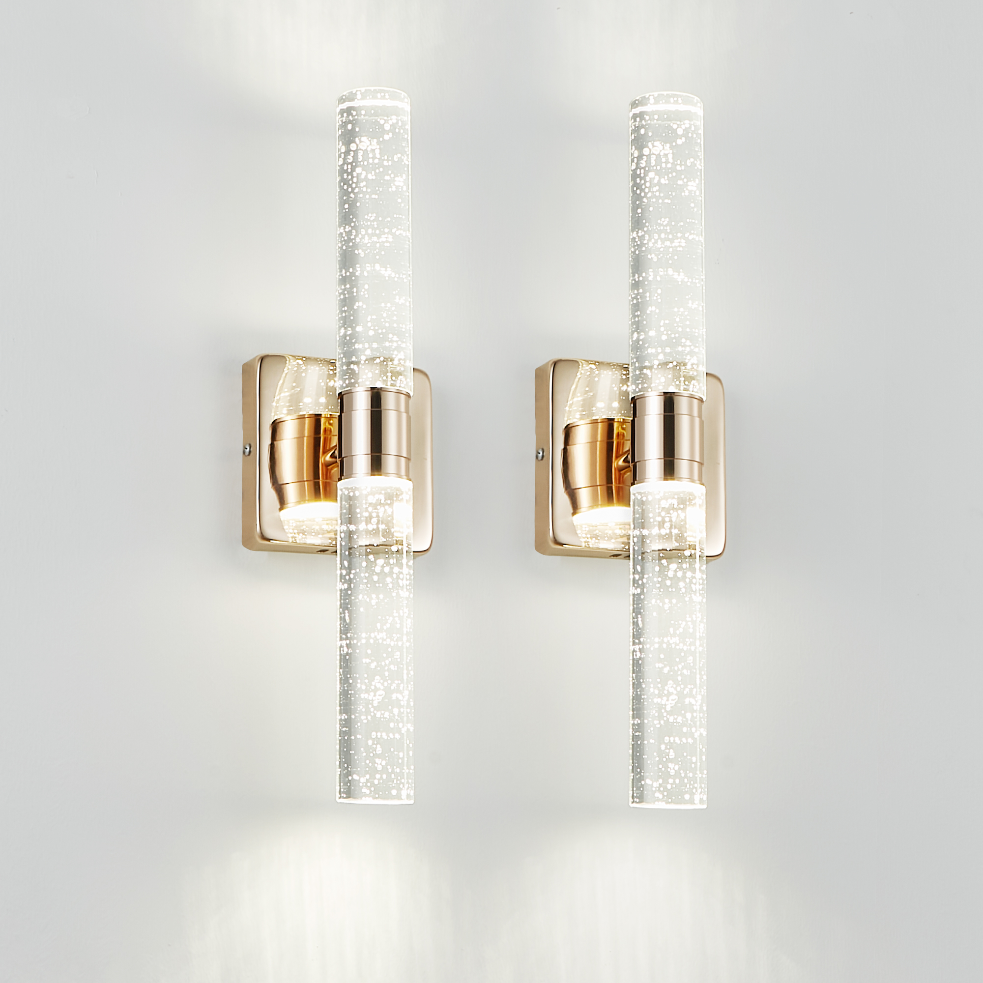 17"(H) Contemporary Crystal Wall Light, Gold Plating Finish with Bubble Crystal, 2-Light Sconce for Bathroom, Bedroom, Hallway – Modern Indoor Lighting Fixture
