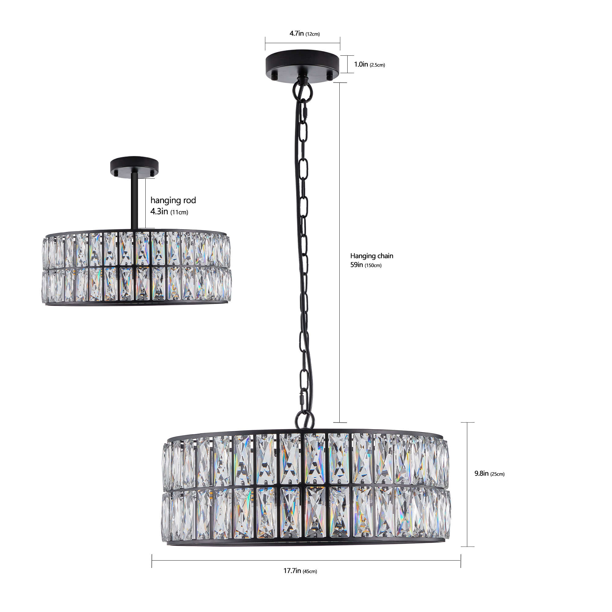 NEOSGO 18" Black Modern Crystal Drum Chandelier, 6-Light Pendant Lighting Fixture with Metal Frame for Living Room, Dining Room, and Bedroom (Bulbs Not Included) is designed to serve as both a lighting source and a decorative focal point within the room. This type of fixture is especially effective above dining tables, in entryways, and in living spaces where the customer wants overhead light with stronger visual impact. The product presentation suggests a style-driven fixture that helps define the ceiling area and gives the space a more elevated, finished character. It is a strong fit for customers who want lighting that contributes to the overall look of the room rather than functioning as a utility piece alone. Overall size is approximately 18.9 x 18.9 x 8.3 inches with a listed weight of 13.3. The current listing includes 10 product images, which help clarify the product shape, proportions, and visual placement in a real room setting.