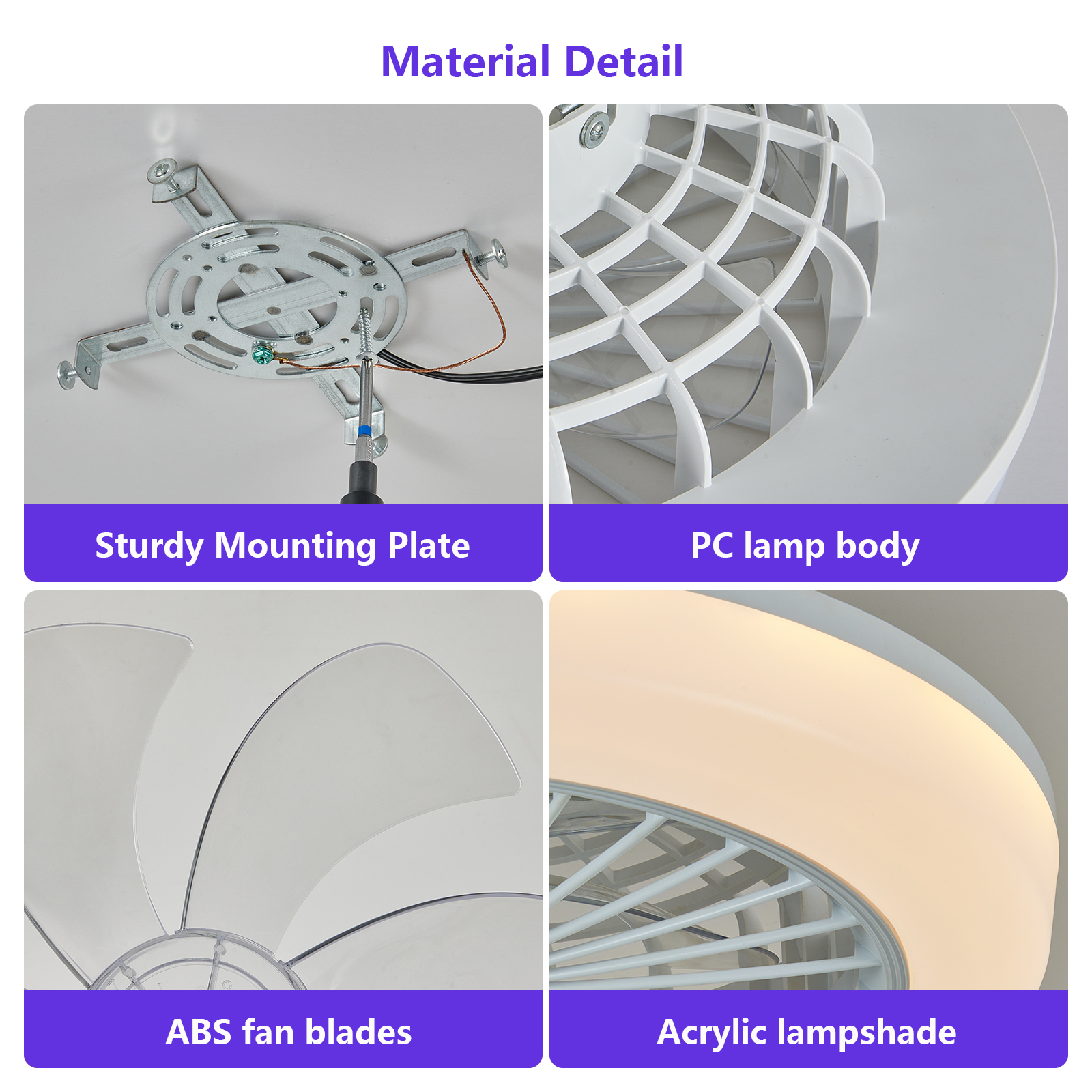 NEOSGO 18 inch Ceiling Fan with RGB Light Remote, Smart LED Ceiling Fans with Remote/App Control, Modern Low Profile Dimmable Light Ceiling Fan for Bedroom Living Room White combines ceiling lighting and airflow in one fixture, making it useful for rooms that need everyday comfort as well as a more finished overhead look. The caged or close-to-ceiling style shown in the product presentation helps it work well in spaces where customers want decorative character without the visual bulk of a larger hanging fixture. It is well suited for kitchens, dining rooms, bedrooms, living areas, and similar spaces where air movement, ambient light, and a coordinated design all matter. This is a practical choice for customers who want to save ceiling space while improving comfort and keeping the room visually polished. Overall size is approximately 18.5 x 6.7 x 18.5 inches with a listed weight of 6.4. The current listing includes 10 product images, which help clarify the product shape, proportions, and visual placement in a real room setting.