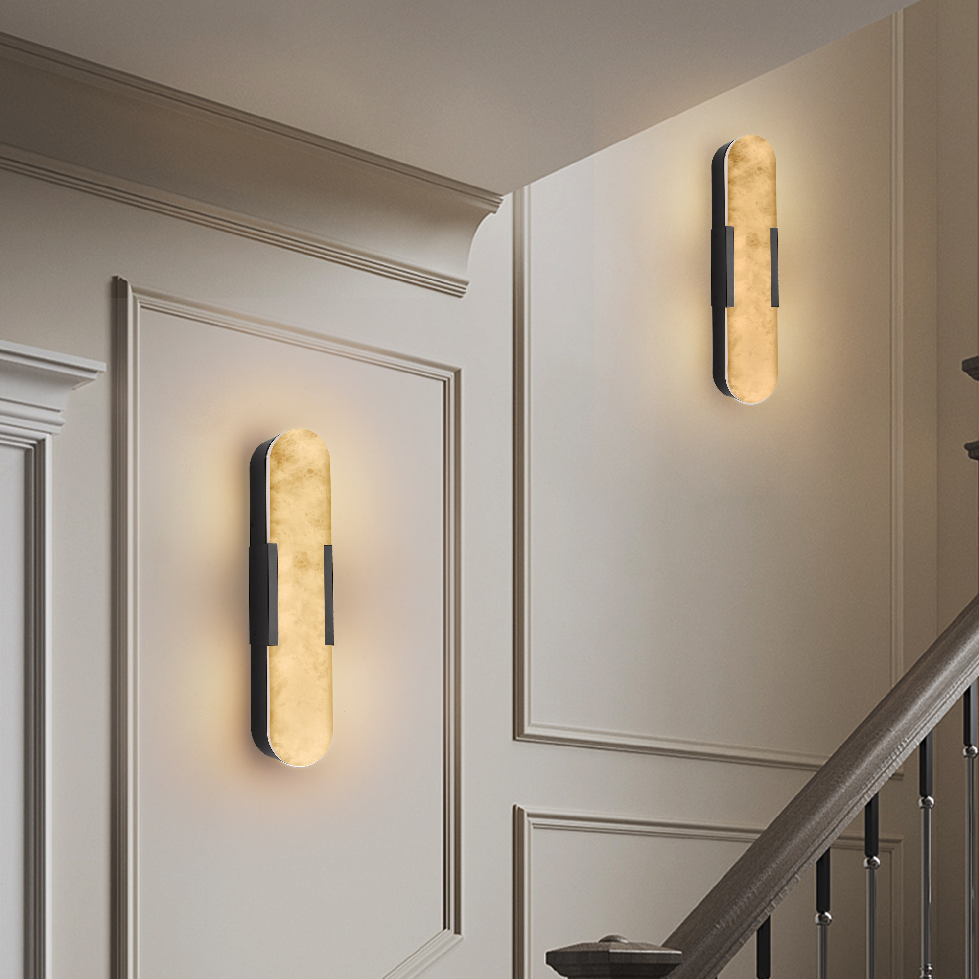 19.7" Natural Marble Wall Sconce, Black Sconces Set of Two, Indoor Modern Bathroom Sconces Wall Lighting for Living Room, Bedroom, Hallway, Stairs