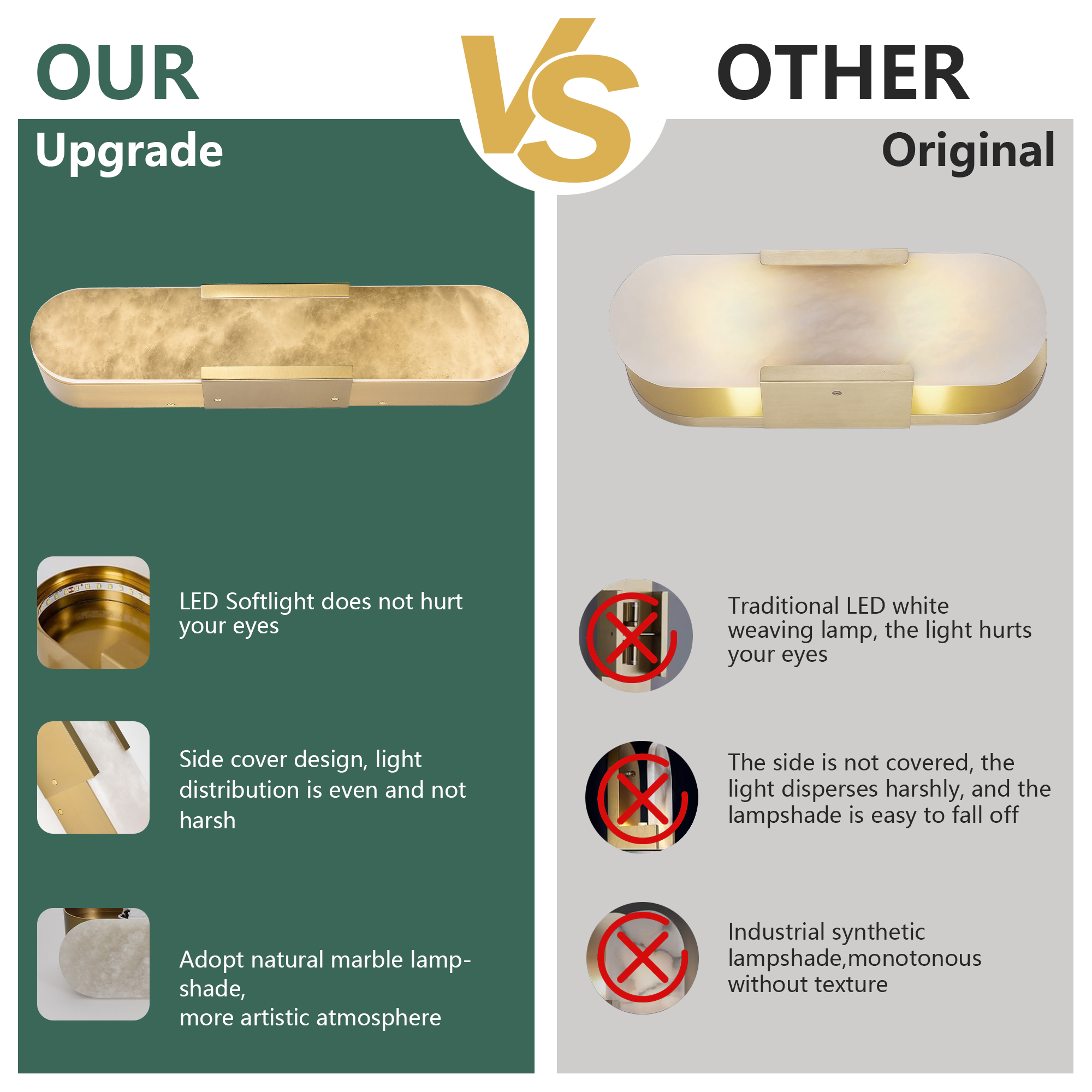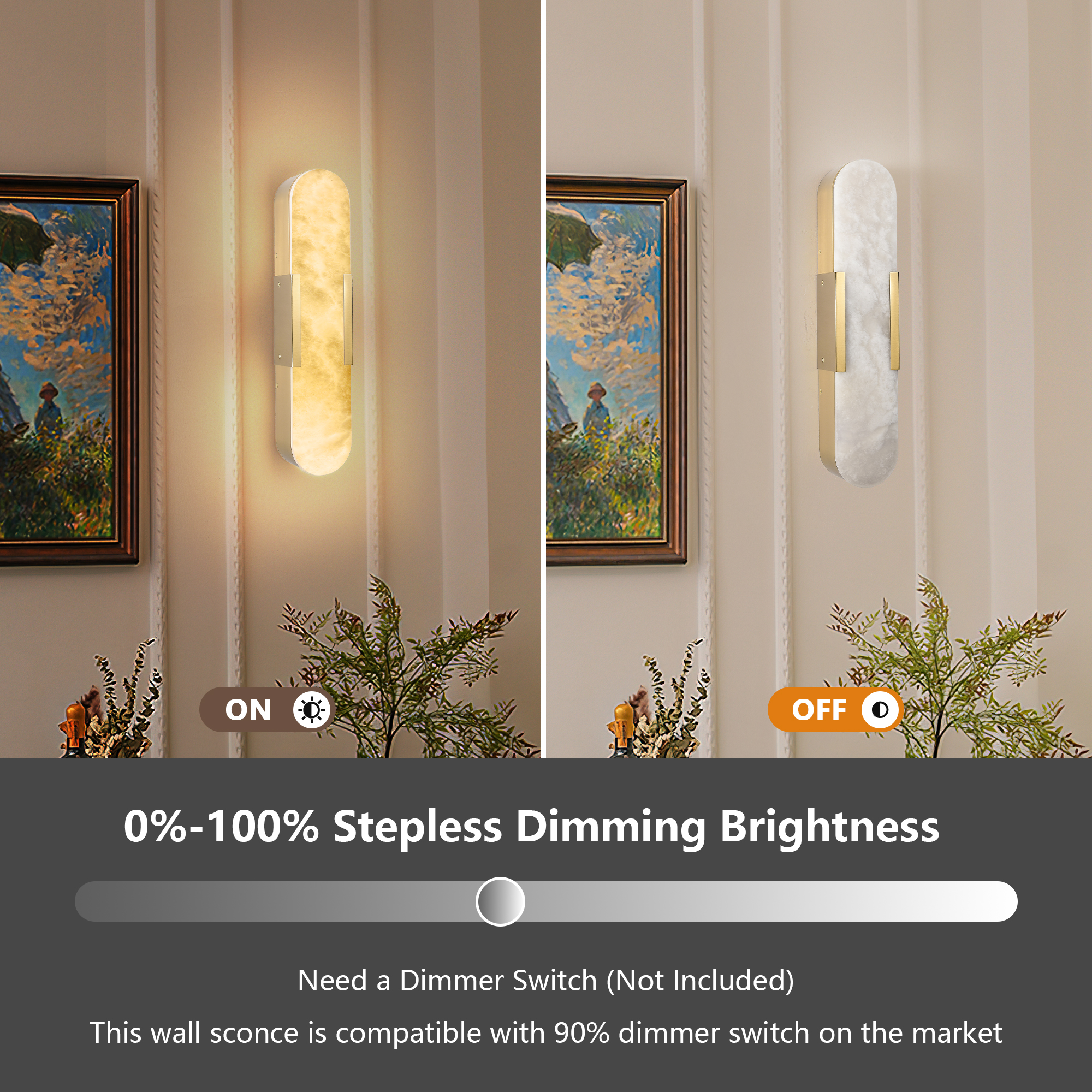 NEOSGO 19.7" Natural Marble Wall Sconce, Gold Sconces Set of Two, Indoor Modern Bathroom Sconces Wall Lighting for Living Room, Bedroom, Hallway, Stairs is intended to provide focused wall lighting while also adding decorative detail to the surrounding space. This style is especially useful near mirrors, over bathroom vanities, along hallways, in bedrooms, or in accent areas that benefit from directed light rather than relying only on ceiling fixtures. Based on the product presentation, it offers a practical mix of daily illumination and visual styling, which helps the room feel more complete and intentionally designed. It is a good option for customers who want better task lighting together with a more refined finished look on the wall. Overall size is approximately 22.4 x 8.3 x 11.8 inches with a listed weight of 19.6. The current listing includes 9 product images, which help clarify the product shape, proportions, and visual placement in a real room setting.