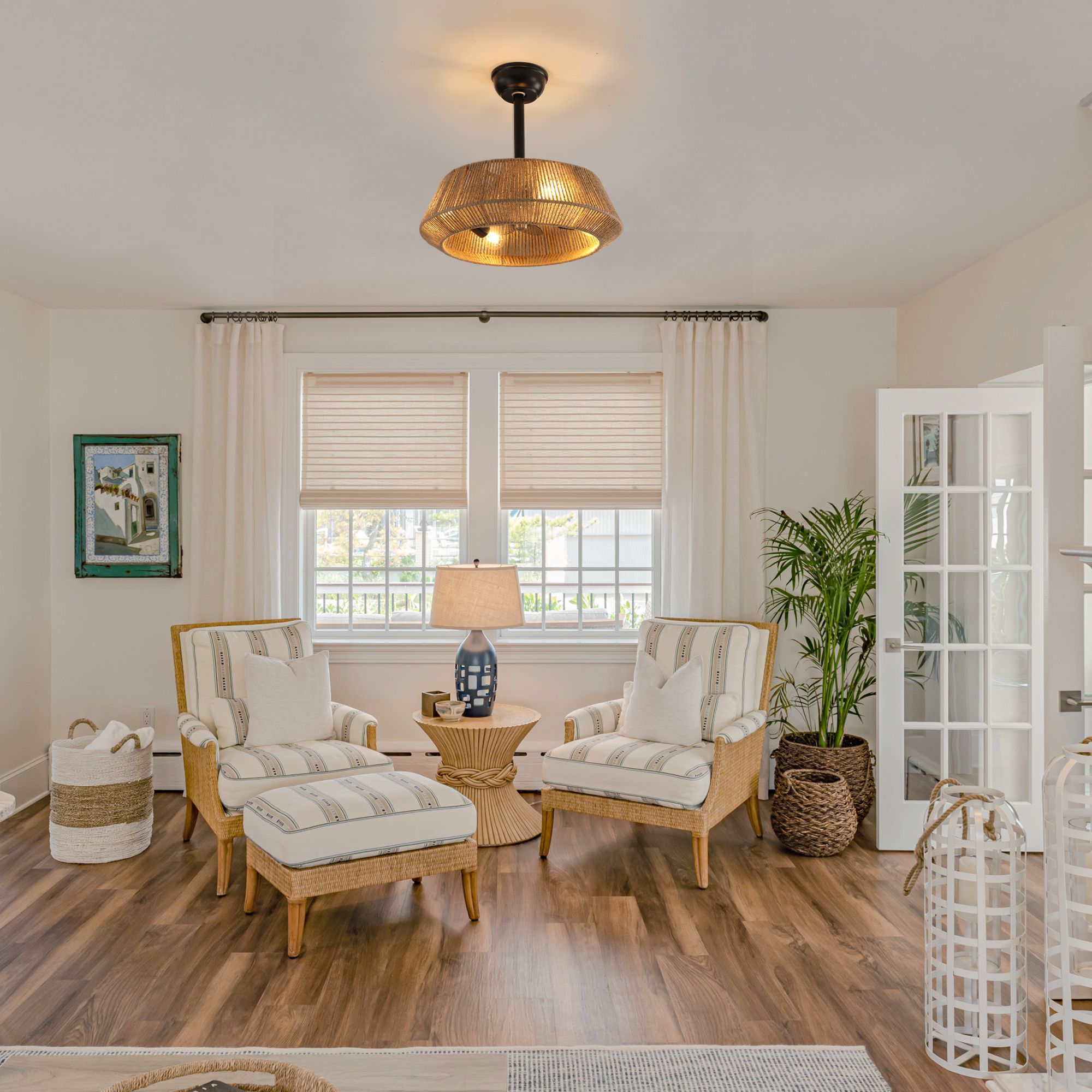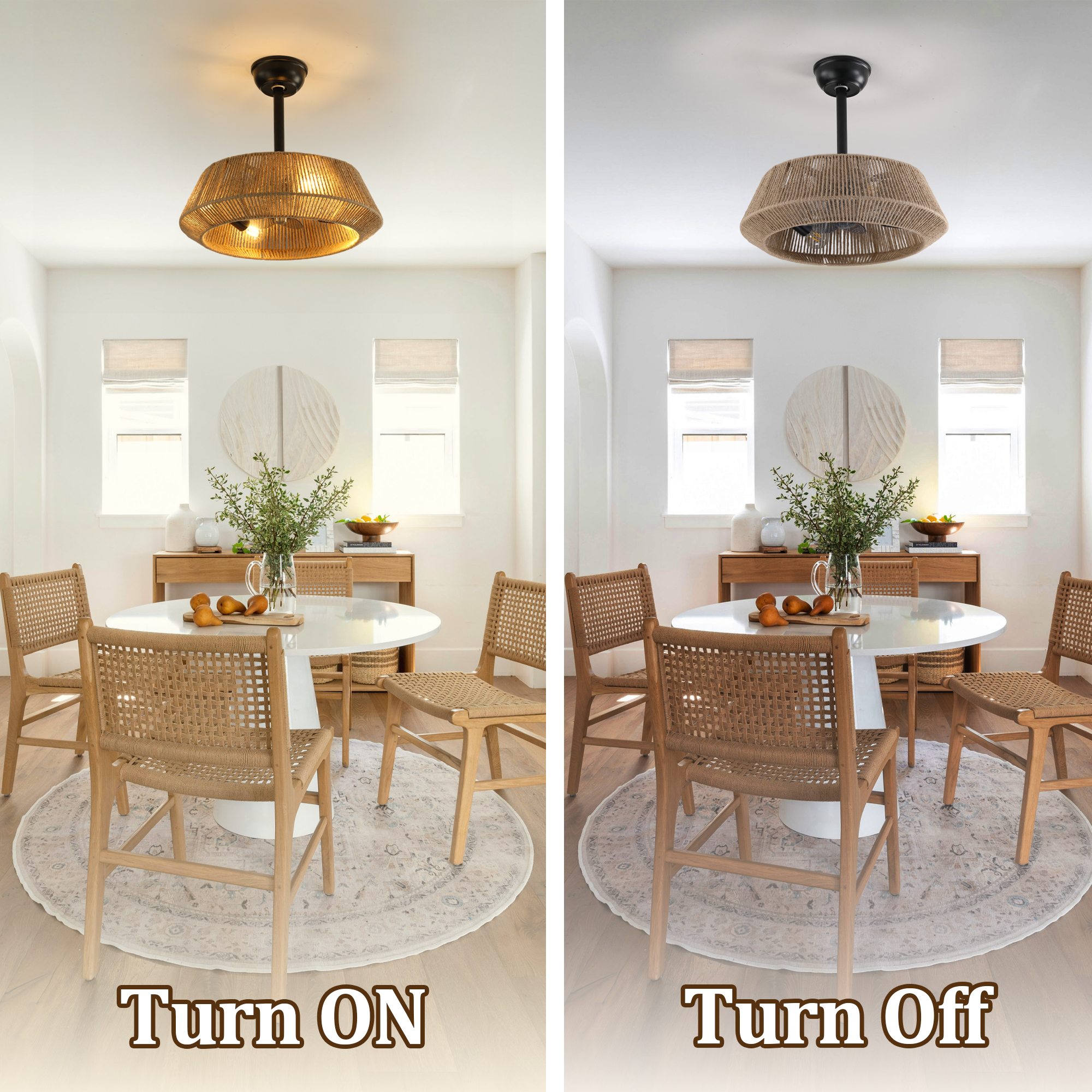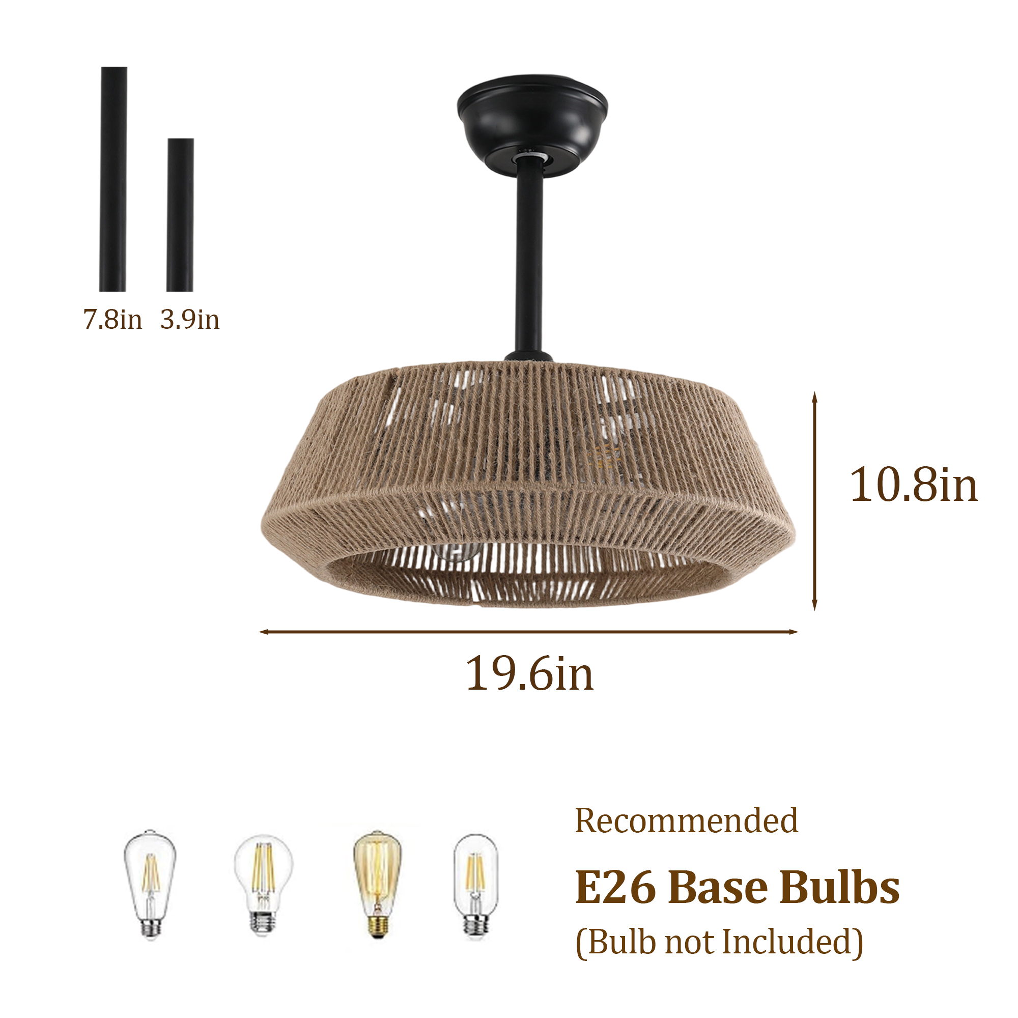 NEOSGO 19" Bedroom Fan Light with Rope Suspension with 4 Bulbs, Dimmable, 7 Dlades, Reversible DC Motor is intended to deliver focused overhead light while also strengthening the decorative identity of the space. Pendant-style fixtures are especially useful over kitchen islands, sinks, breakfast areas, counters, and compact dining spaces where customers want targeted light and a visible design element. Based on the product presentation, it suits interiors that need a more finished overhead feature without overwhelming the rest of the room. It is a good option for shoppers who want everyday function together with a clean decorative upgrade. Overall size is approximately 20.08 x 9.45 x 20.08 inches with a listed weight of 10.36. The current listing includes 9 product images, which help clarify the product shape, proportions, and visual placement in a real room setting.