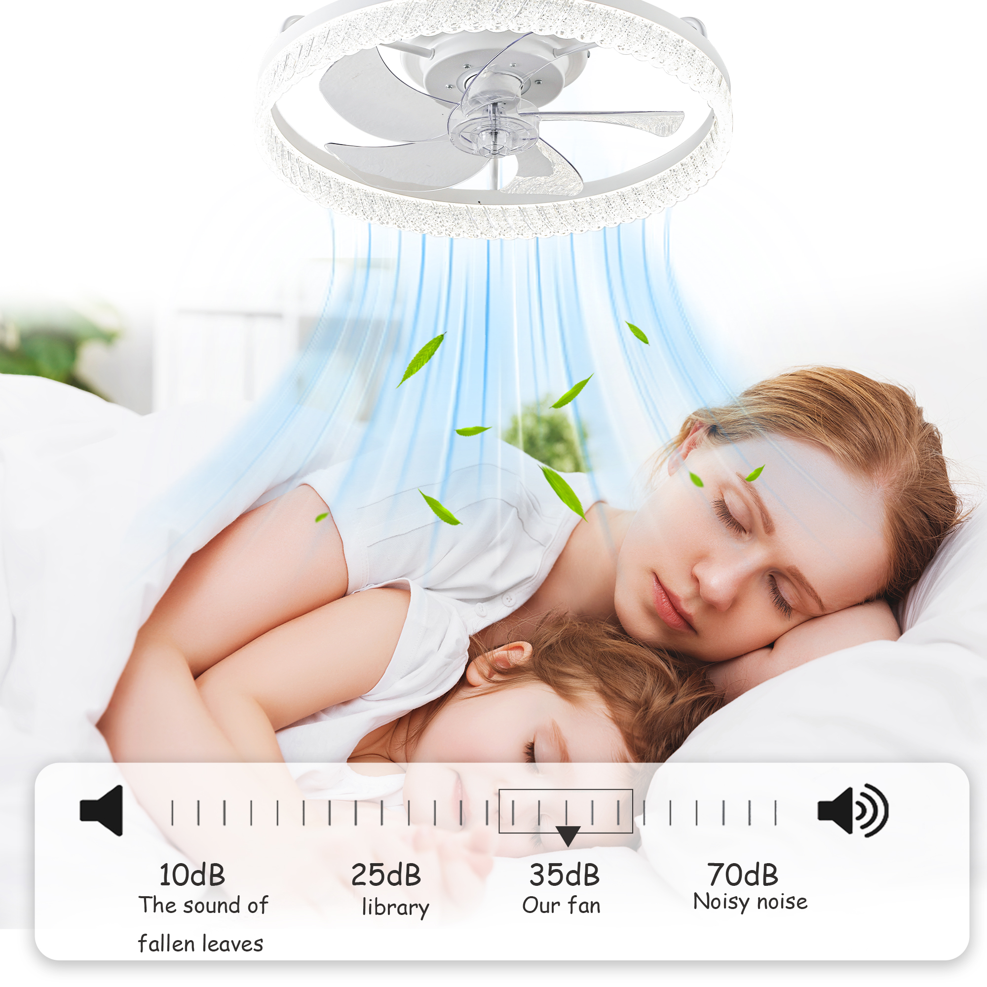 19" White Feather Bedroom Fan light with Remote Control, Dimmable, 7 Blades, Reversible DC Motor, with LED Light