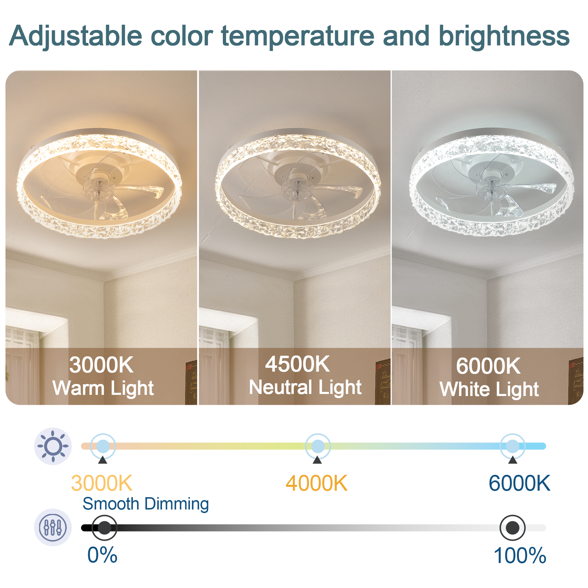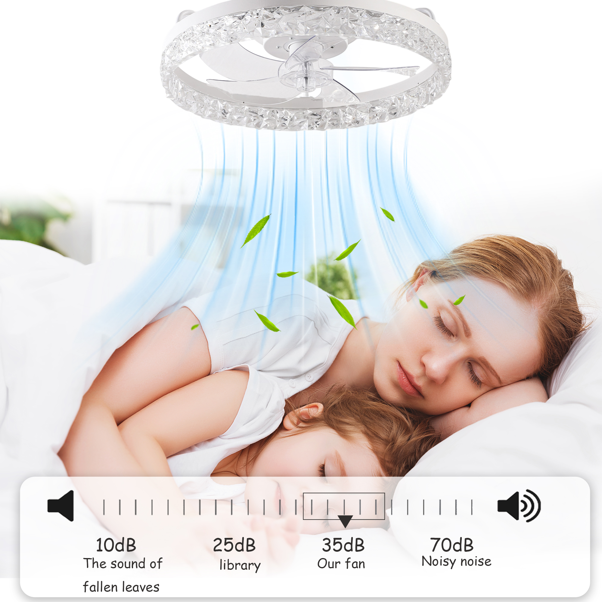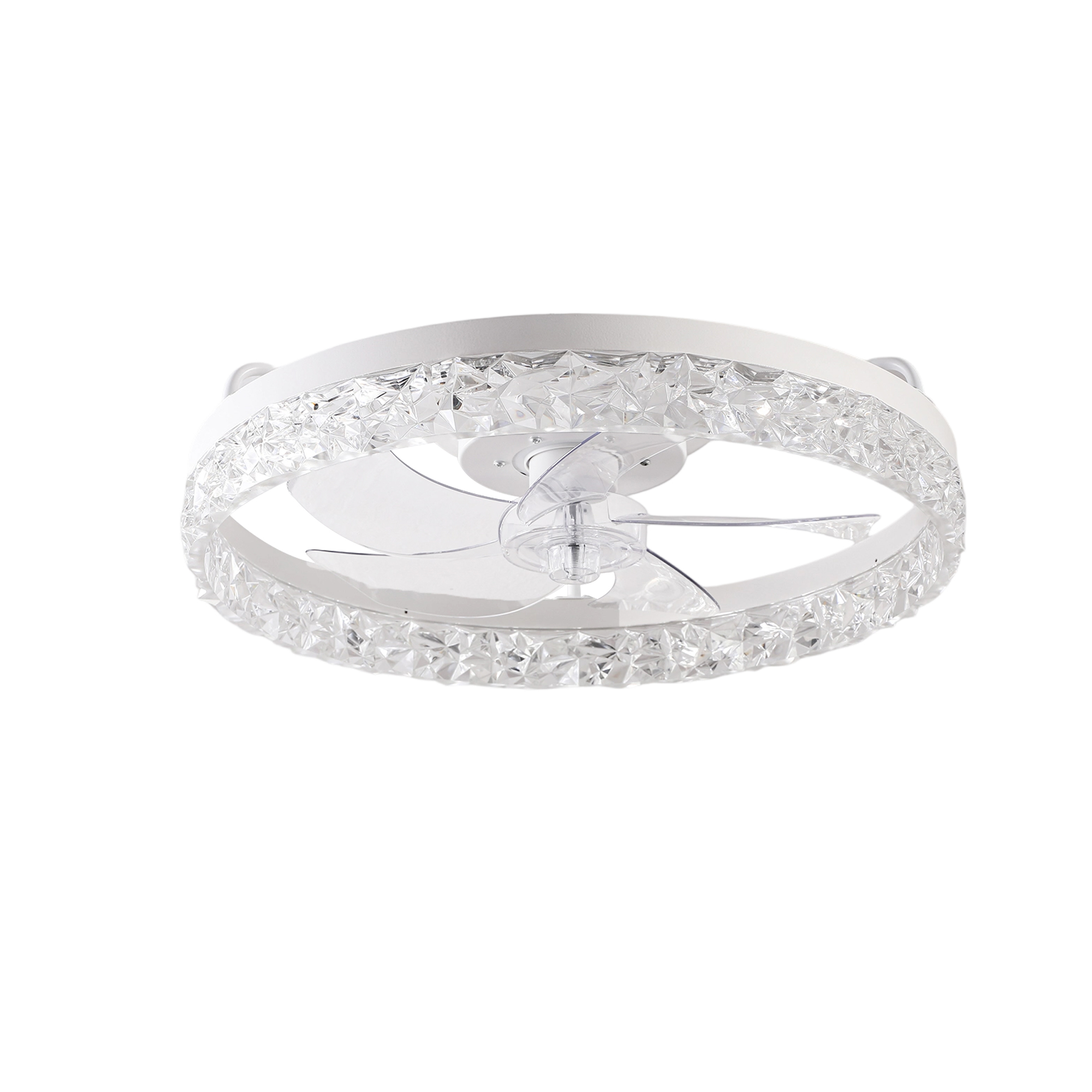 19" White Frame Iceberg Bedroom Fan Light with Remote Control, Dimmable, 7 Blades, Reversible DC Motor, with LED Light