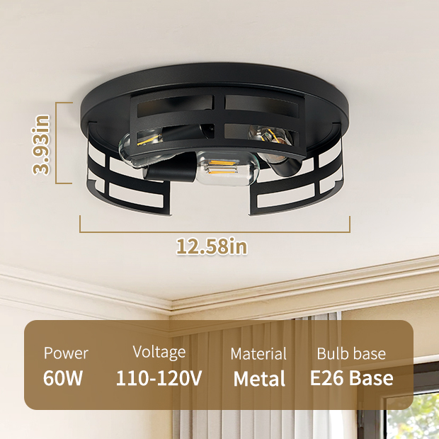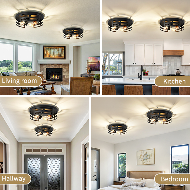 NEOSGO 2-Light Black Flush Mount Ceiling Light Fixture,13 in Light Fixtures Ceiling Mount for Hallway,Hall,Kitchen,Farmhouse (2 Pack) is intended to deliver focused overhead light while also strengthening the decorative identity of the space. Pendant-style fixtures are especially useful over kitchen islands, sinks, breakfast areas, counters, and compact dining spaces where customers want targeted light and a visible design element. Based on the product presentation, it suits interiors that need a more finished overhead feature without overwhelming the rest of the room. It is a good option for shoppers who want everyday function together with a clean decorative upgrade. Overall size is approximately 13 x 13 x 7.3 inches with a listed weight of 5.1. The current listing includes 8 product images, which help clarify the product shape, proportions, and visual placement in a real room setting.