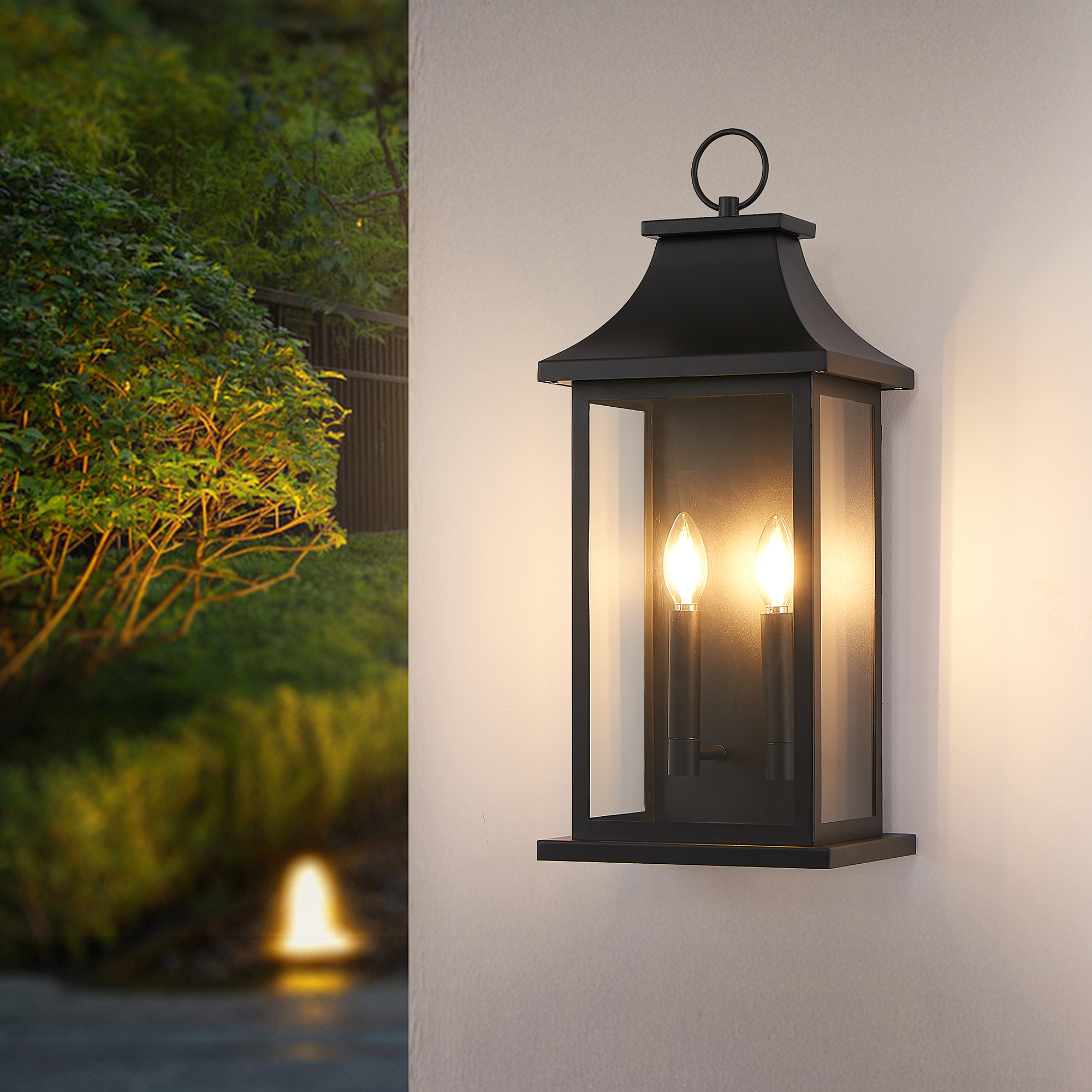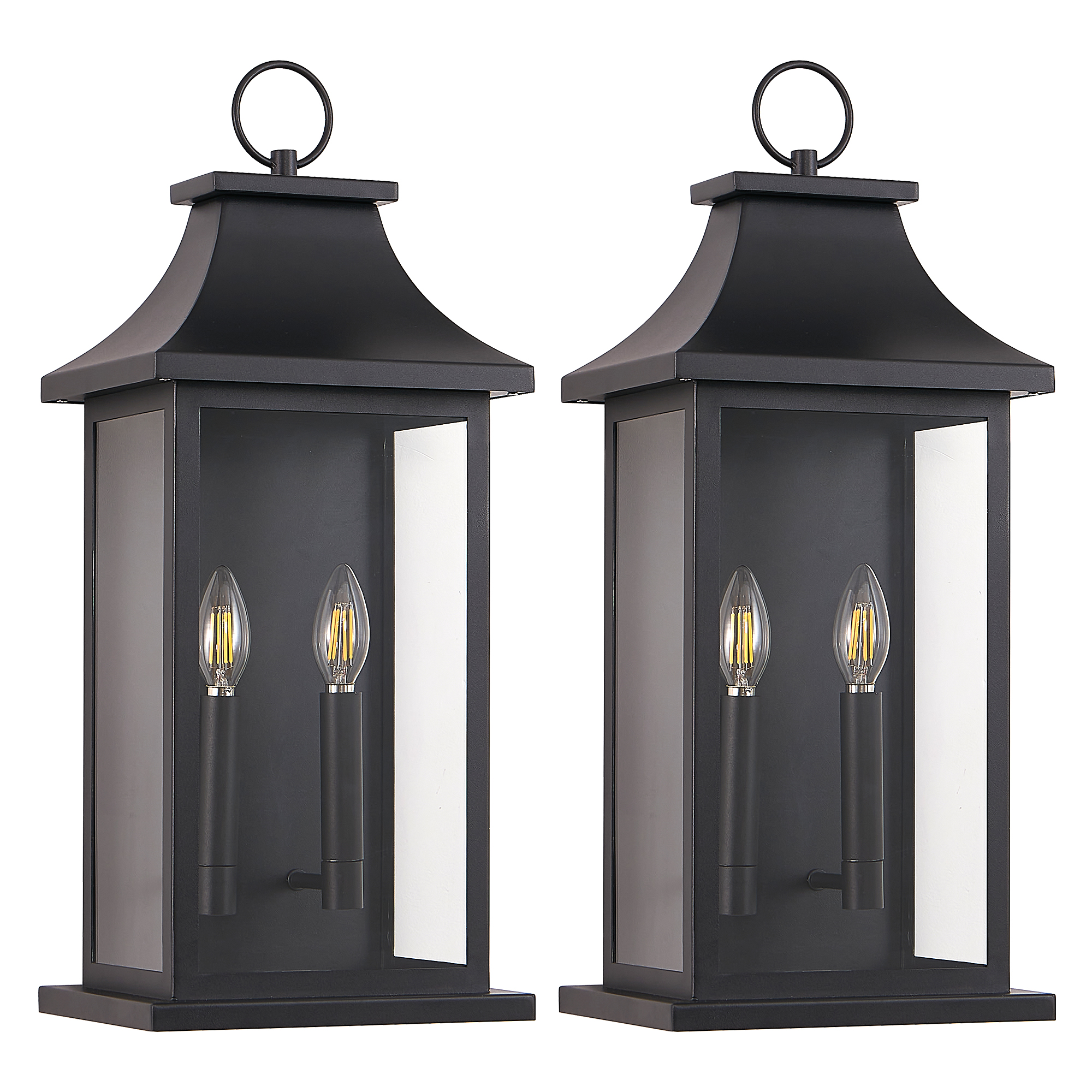 2-Pack Large Outdoor Wall Lights, 22'' Porch Light Outdoor Wall Sconce Lantern, Black Exterior Lighting Fixture Wall Mount, Outside Light for House Garage