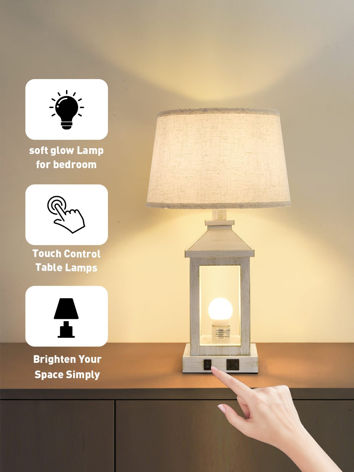 20.5" Set of 2 Vintage Table Lamps for Living Room,Farmhouse Industrial Nightstand Lamp with USB C+A & Outlet,White Bedside Lamps for End Table with Nightlight(Including Light Bulbs)