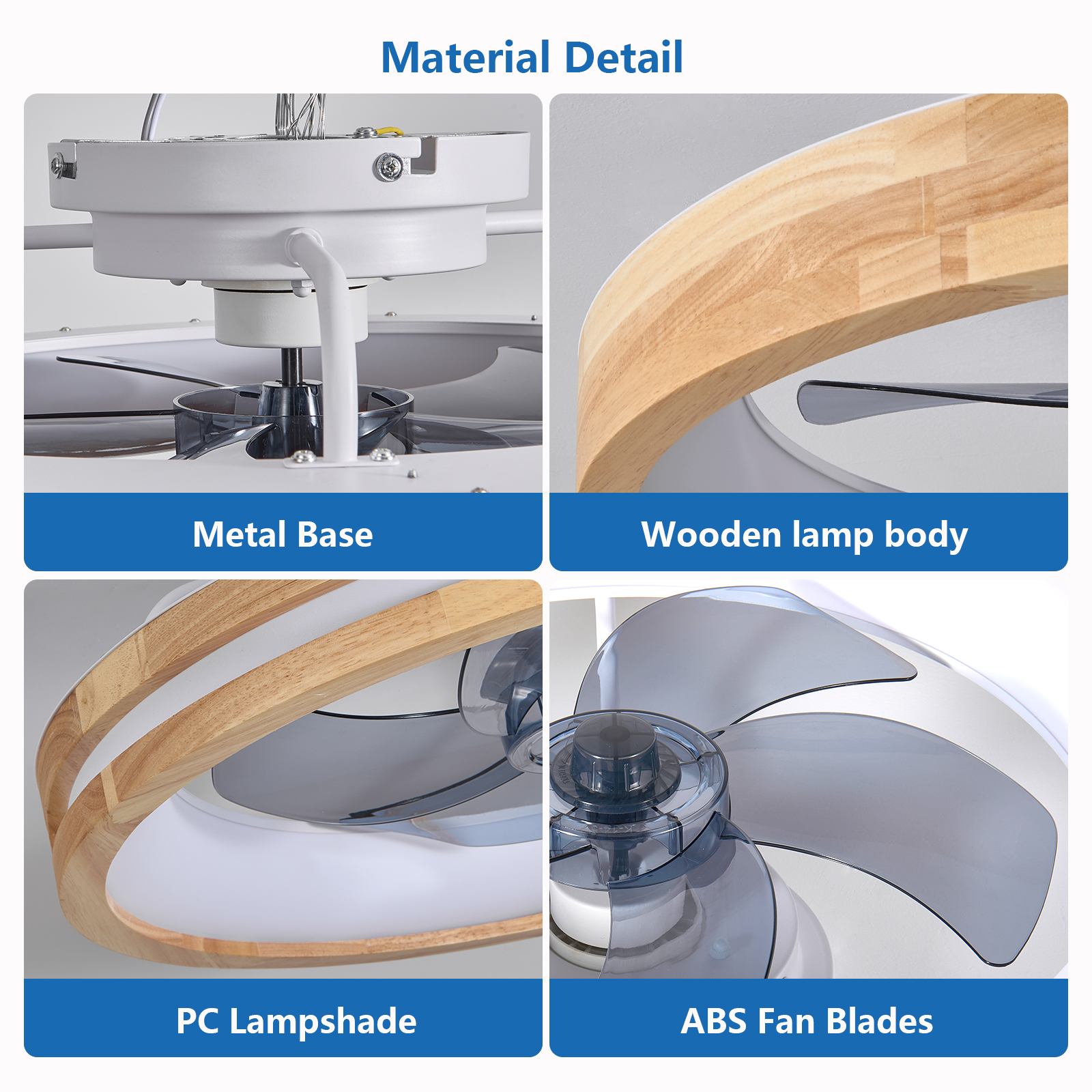 20 Inchs Ceiling Fans with Lights and Remote Low Profile Flush Mount Ceiling Fan with Light,3000-6000K LED Fan Lighting 6 Speed Reversible Quiet Wooden Small Fans and Light for Bedroom Kitchen