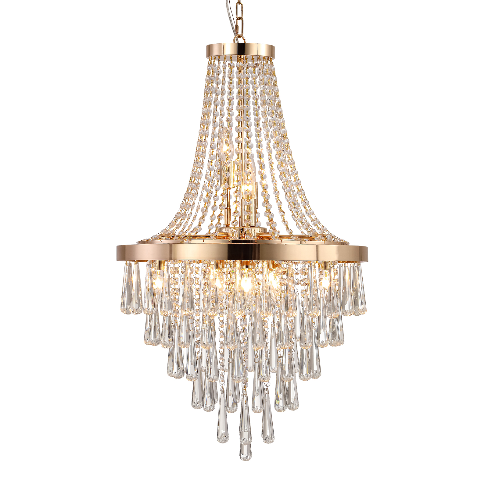 20" Modern Crystal Pendant Chandelier with Golden Finish – Elegant 11-Light Hanging Light Fixture Tiered Design for Dining Room, Living Room, or Entryway (No Bulbs)