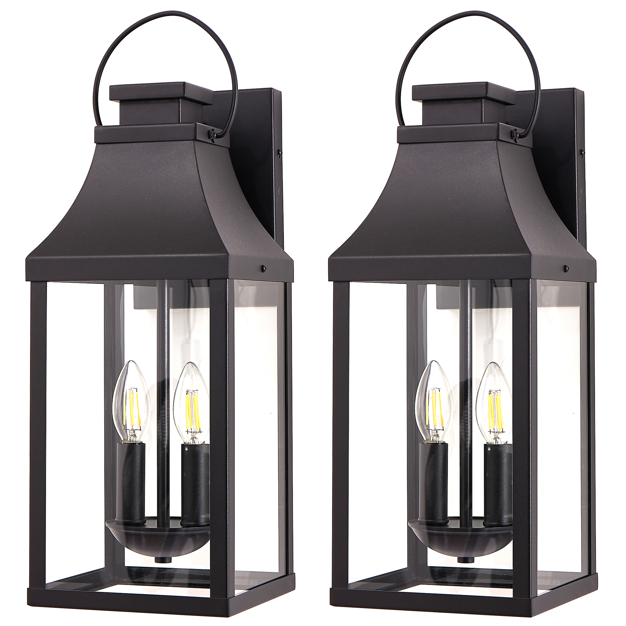 20'' Outdoor Wall Light,2-Pack Porch Light Outdoor Wall Sconce Lantern, 2-Light Modern Black Exterior Lighting Fixture Wall Mount, Outside Light for House Garage