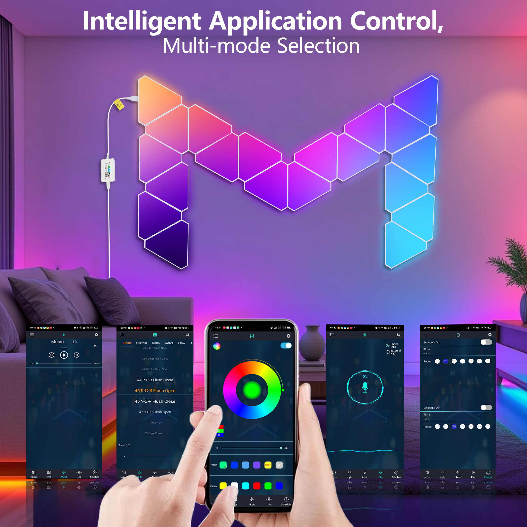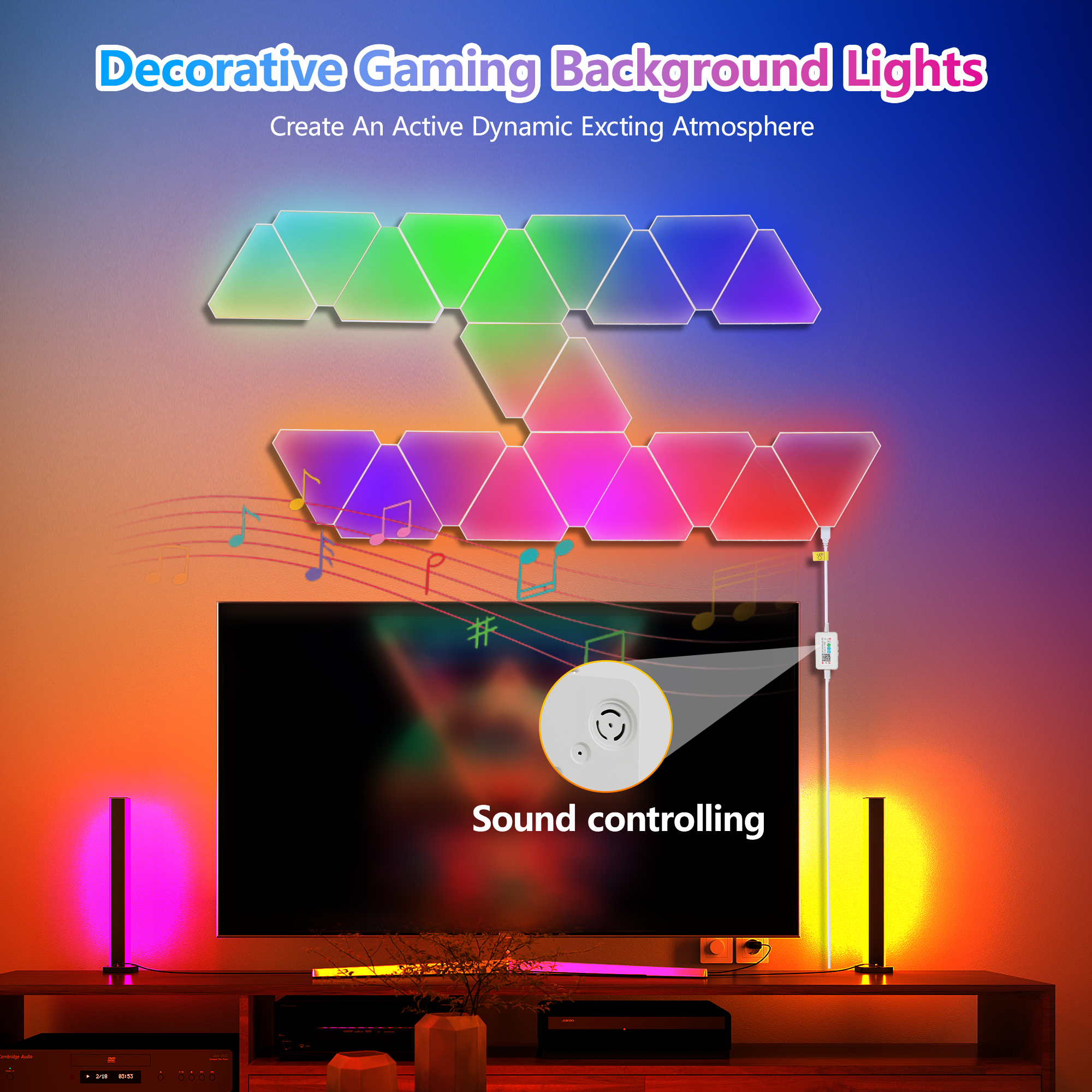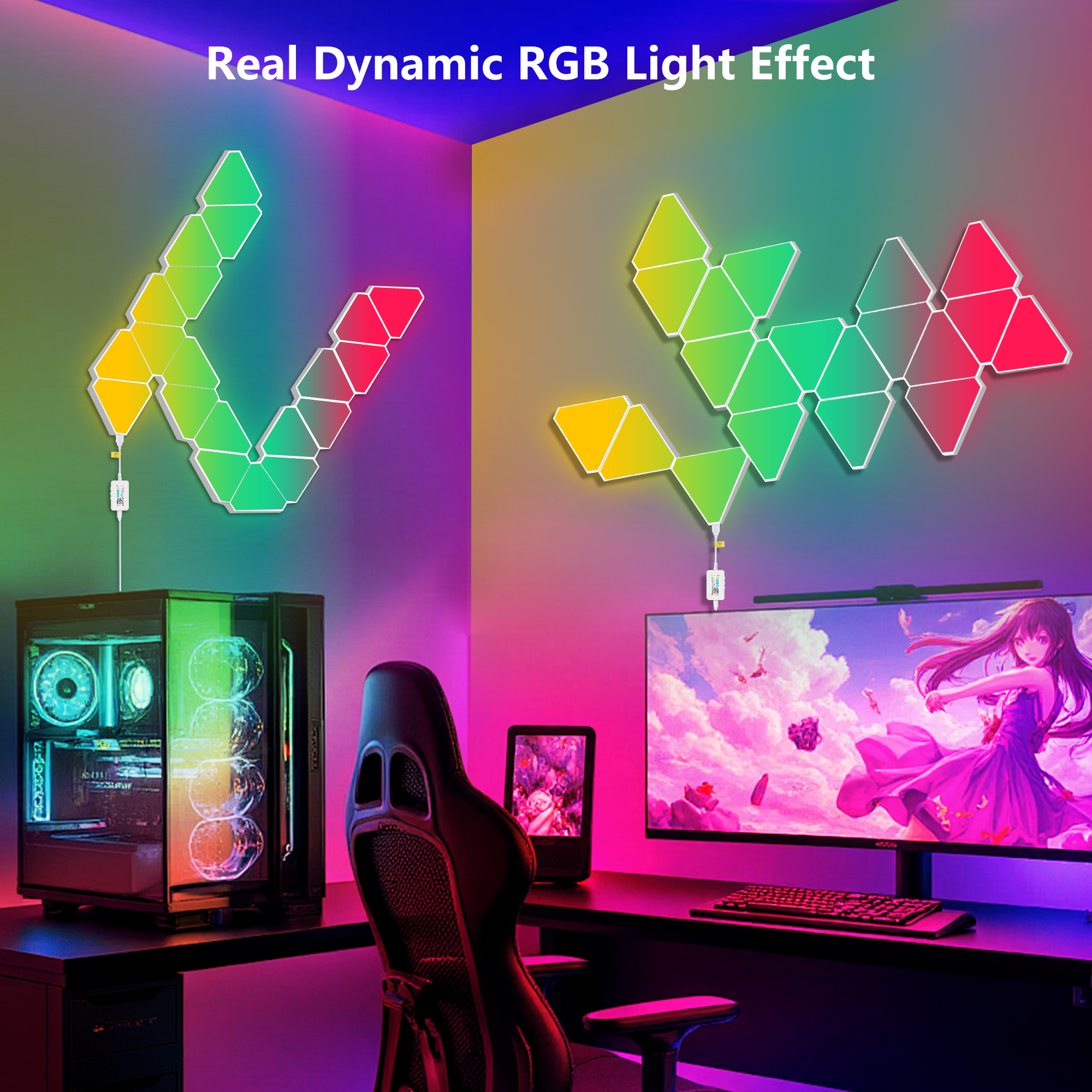 20-Pack Triangular Light Panels – Smart RGB LED Wall Lights with App & Remote – Music Sync Gaming Lights for Gamers, Game Room Decor, Gaming Equipment, Living Room, Bedroom, Kids & Adults