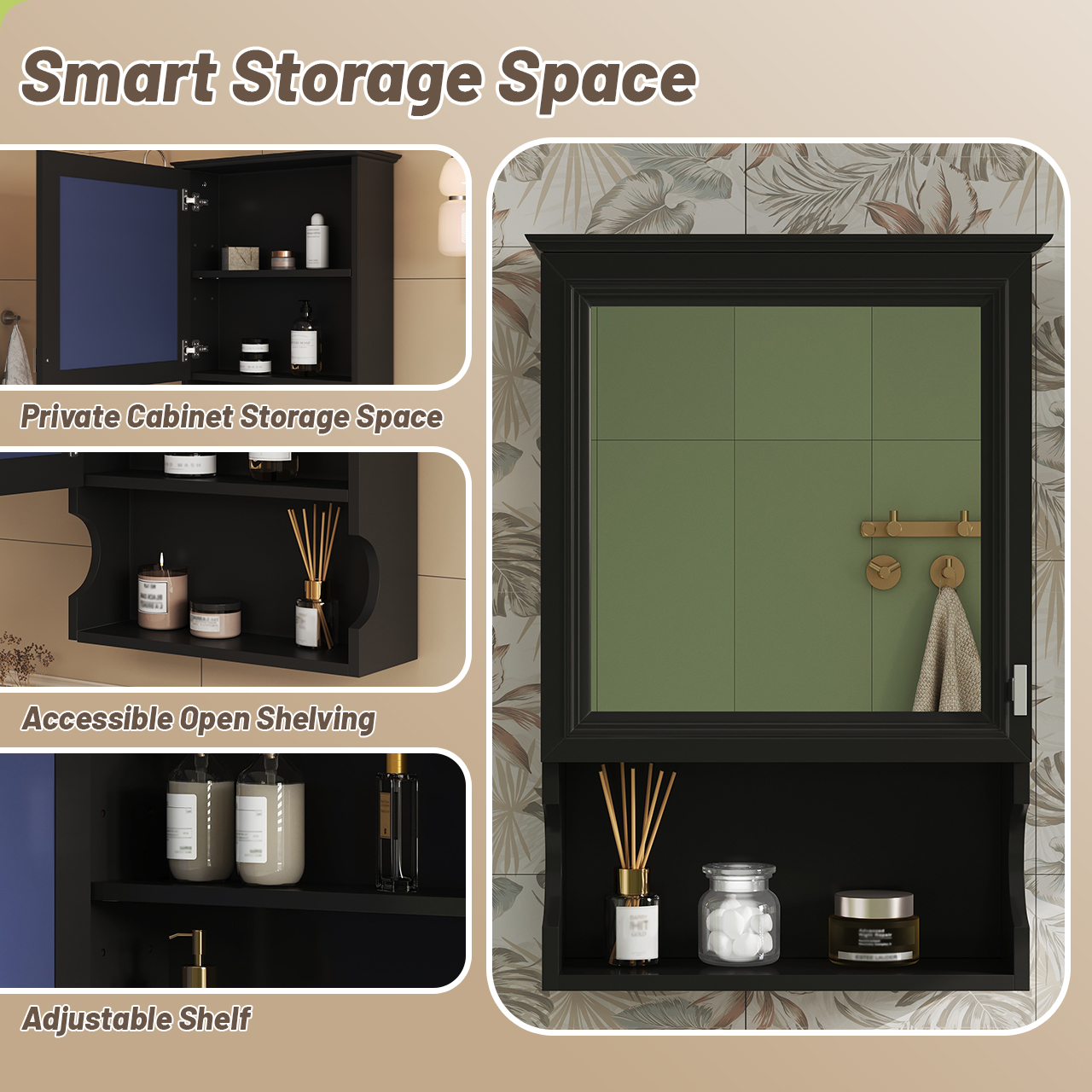 20'' Wall Mounted Bathroom Storage Cabinet with Mirror, Wall Mounted Home Storage with Door, Mirrored Wall Medicine Cabinet