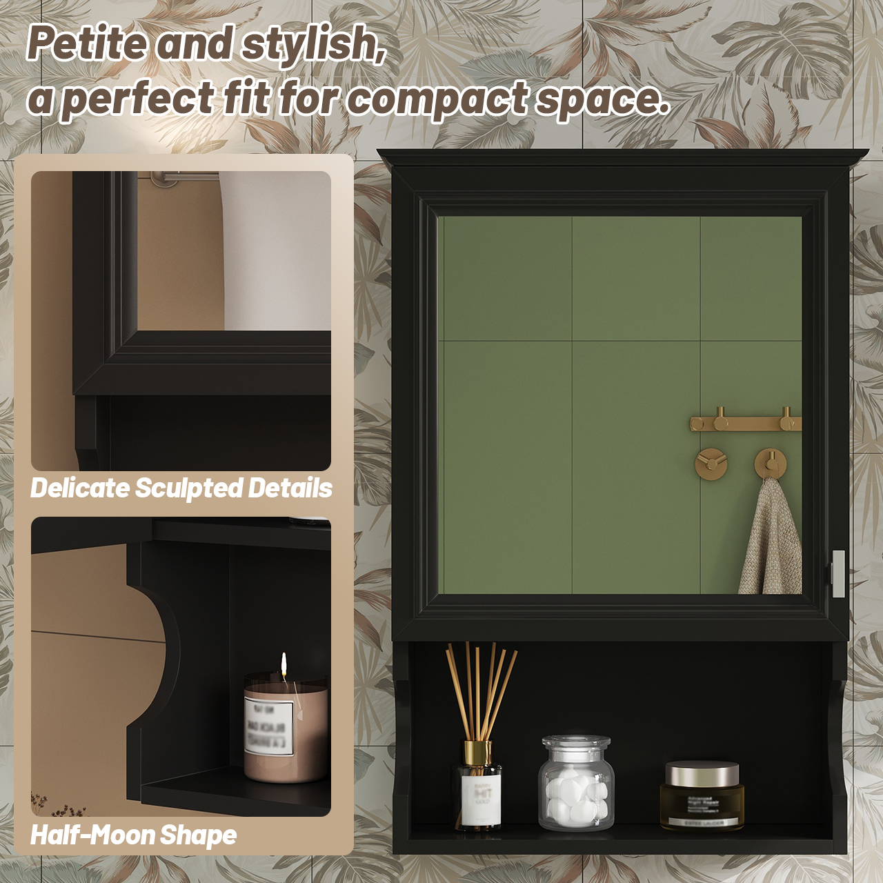 MRS 20'' Wall Mounted Bathroom Storage Cabinet with Mirror, Wall Mounted Home Storage with Door, Mirrored Wall Medicine Cabinet. Designed to provide practical task lighting around a vanity or bathroom mirror while supporting everyday grooming routines. Material: MDF+Metal. Product dimensions and weight: length 31.75, width 22.75, height 4.5, weight 24.69.