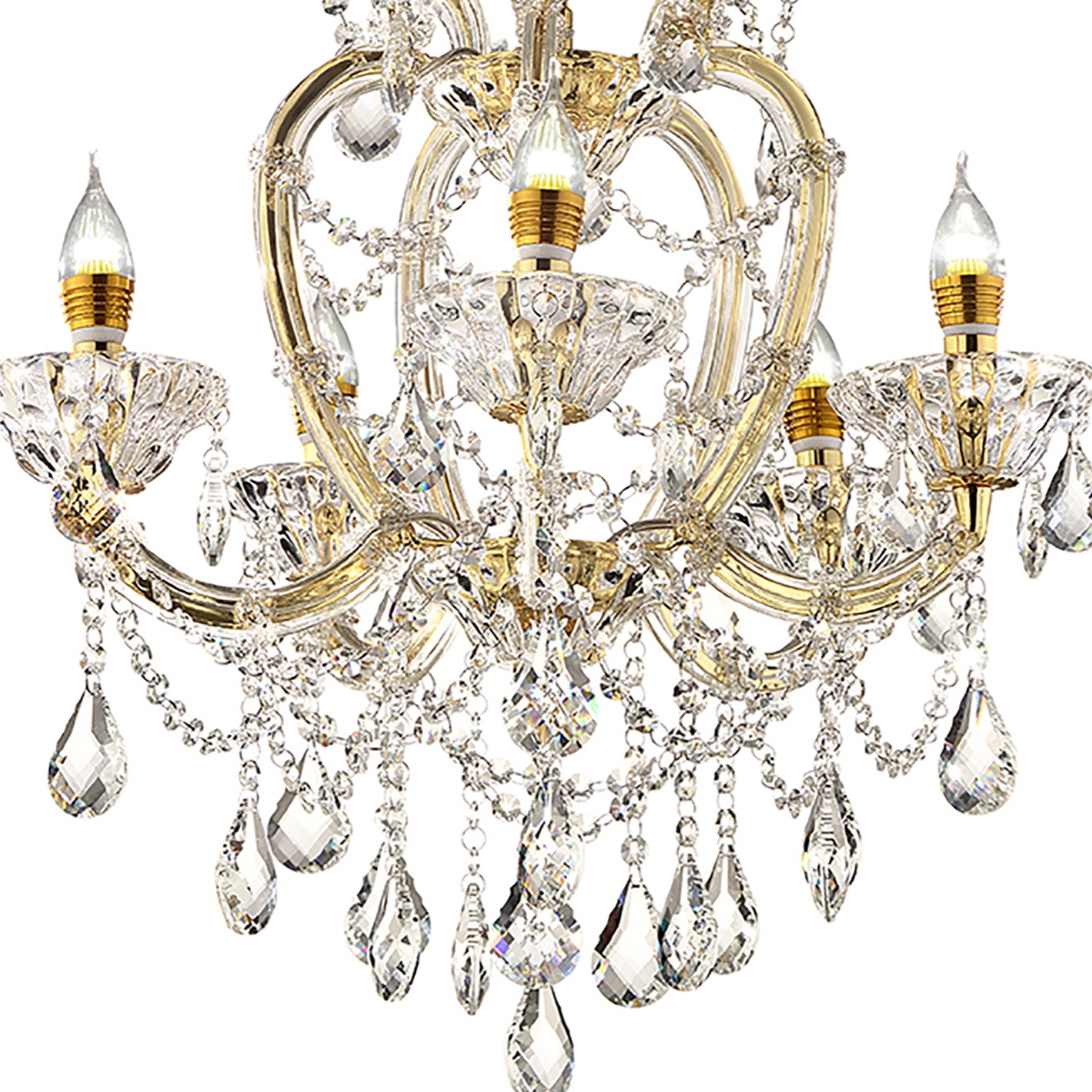 NEOSGO 22"In Bella Petite Gold Crystal 5-Led Light Chandelier. Made to bring focused overhead illumination and decorative impact to dining areas, entryways, or other statement spaces. Product dimensions and weight: length 20, width 20, height 19, weight 22.