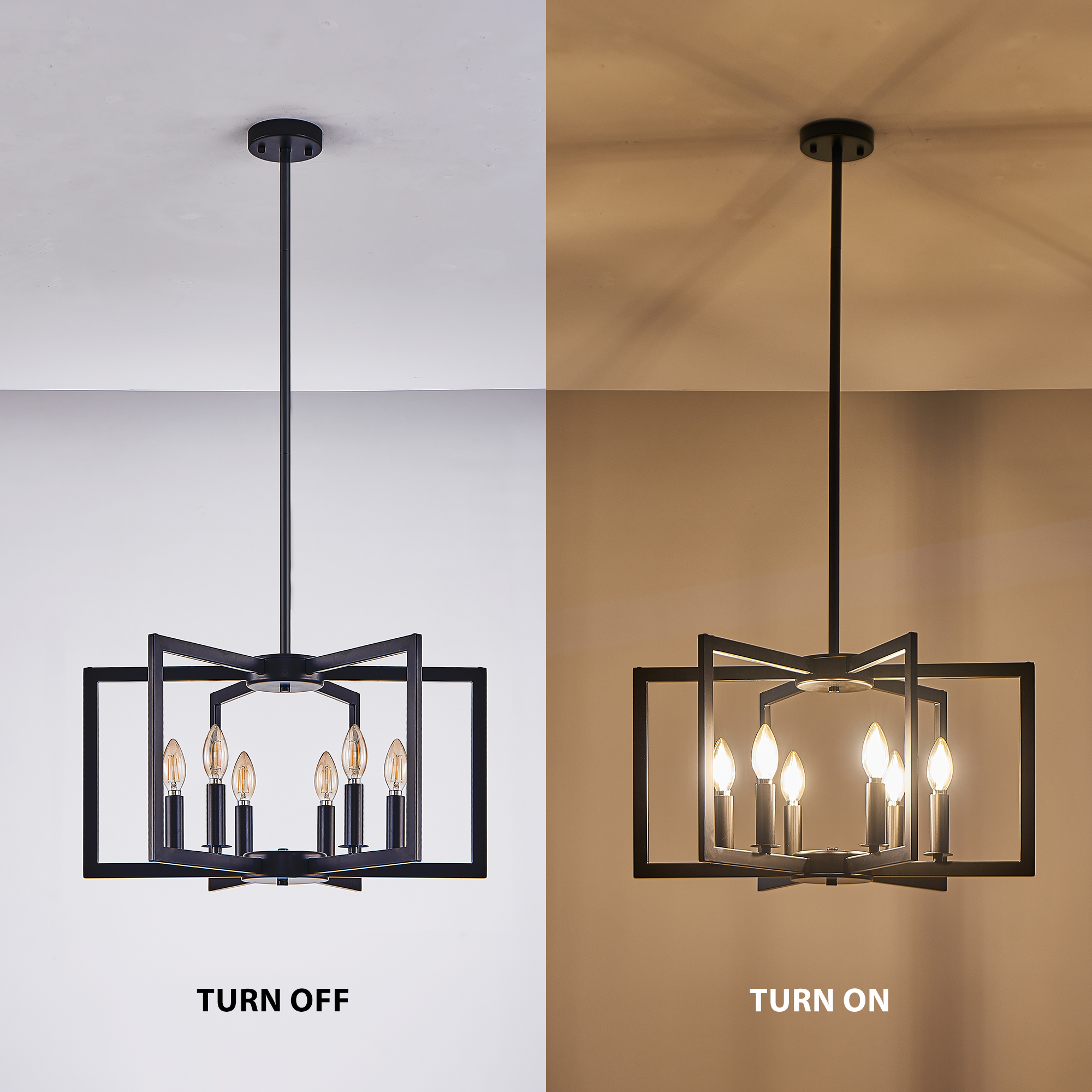 NEOSGO 22" Modern Black Geometric 6-Light Chandelier – Industrial Metal Pendant Light Fixture for Living Room, Dining Room, or Kitchen (Bulb Not Included) is designed to serve as both a lighting source and a decorative focal point within the room. This type of fixture is especially effective above dining tables, in entryways, and in living spaces where the customer wants overhead light with stronger visual impact. The product presentation suggests a style-driven fixture that helps define the ceiling area and gives the space a more elevated, finished character. It is a strong fit for customers who want lighting that contributes to the overall look of the room rather than functioning as a utility piece alone. Overall size is approximately 13.8 x 12.2 x 6.7 inches with a listed weight of 8.3. The current listing includes 12 product images, which help clarify the product shape, proportions, and visual placement in a real room setting.