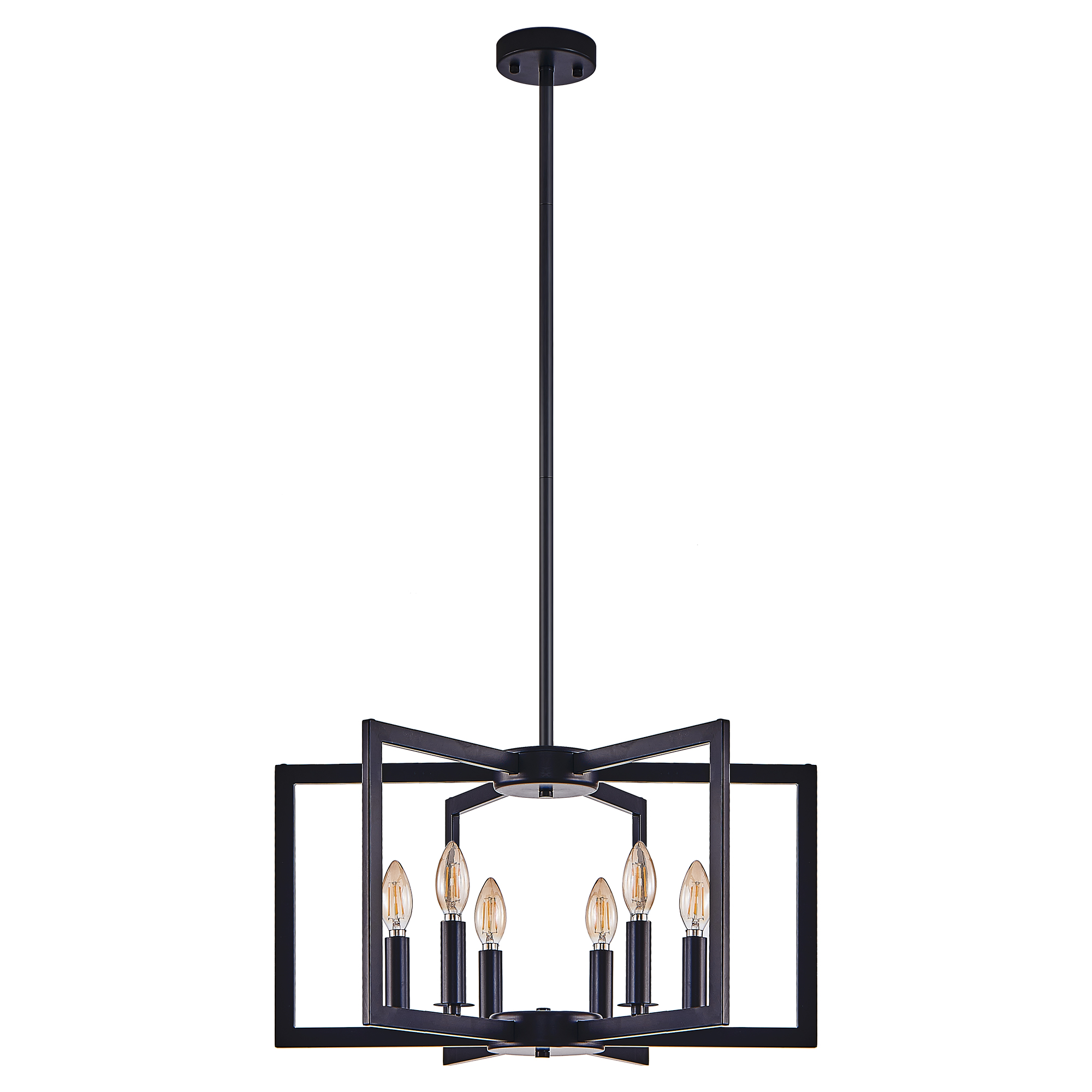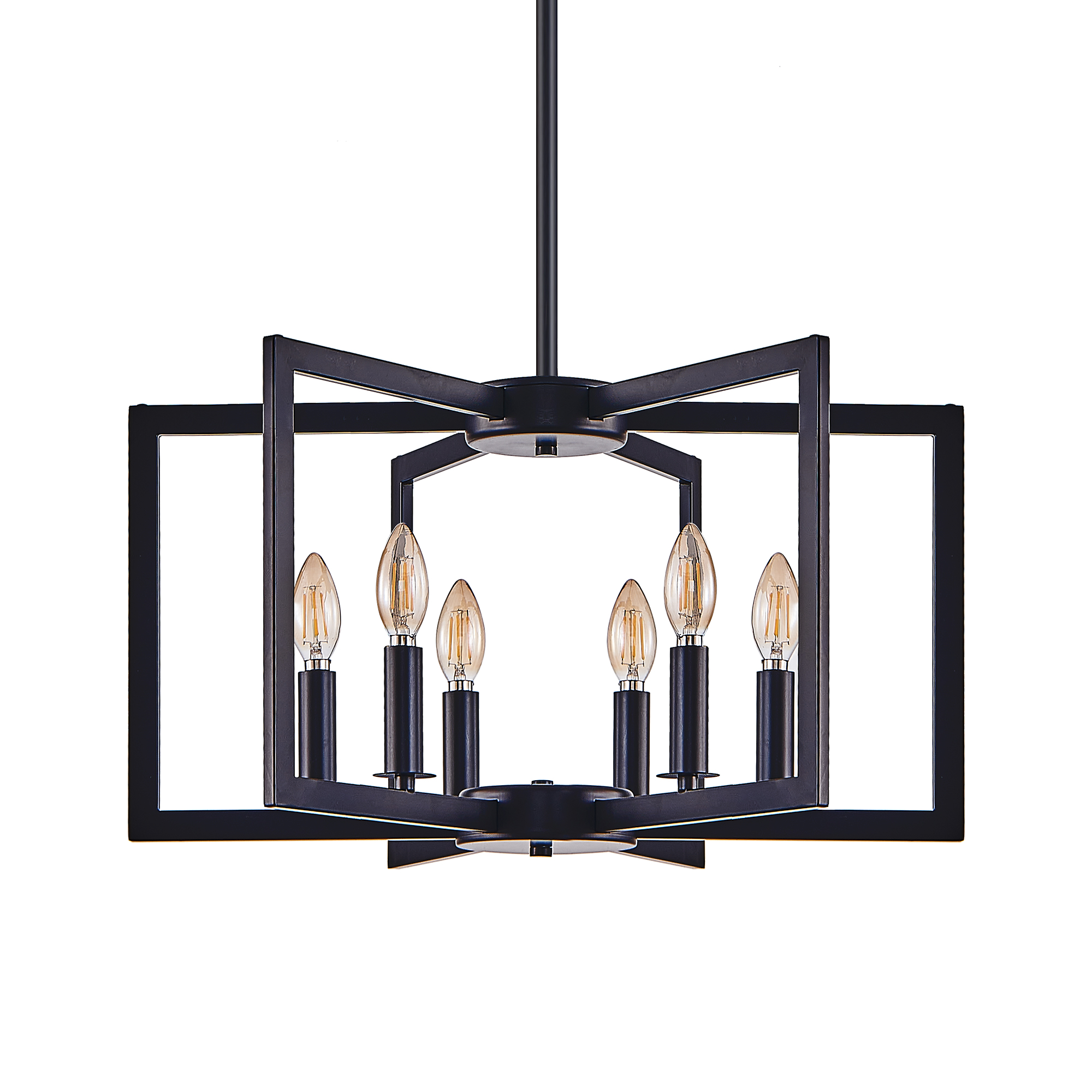 22" Modern Black Geometric 6-Light Chandelier – Industrial Metal Pendant Light Fixture for Living Room, Dining Room, or Kitchen (Bulb Not Included)