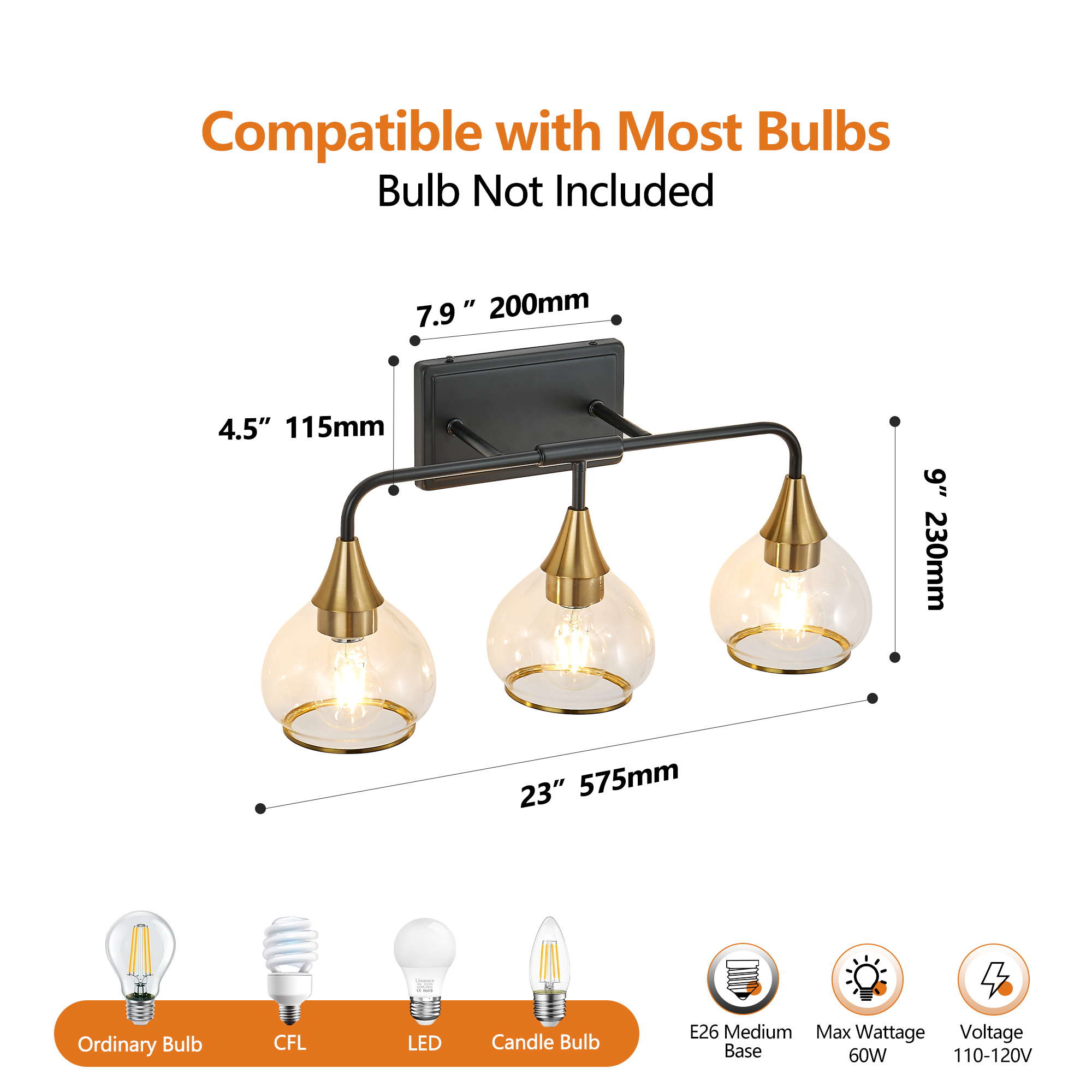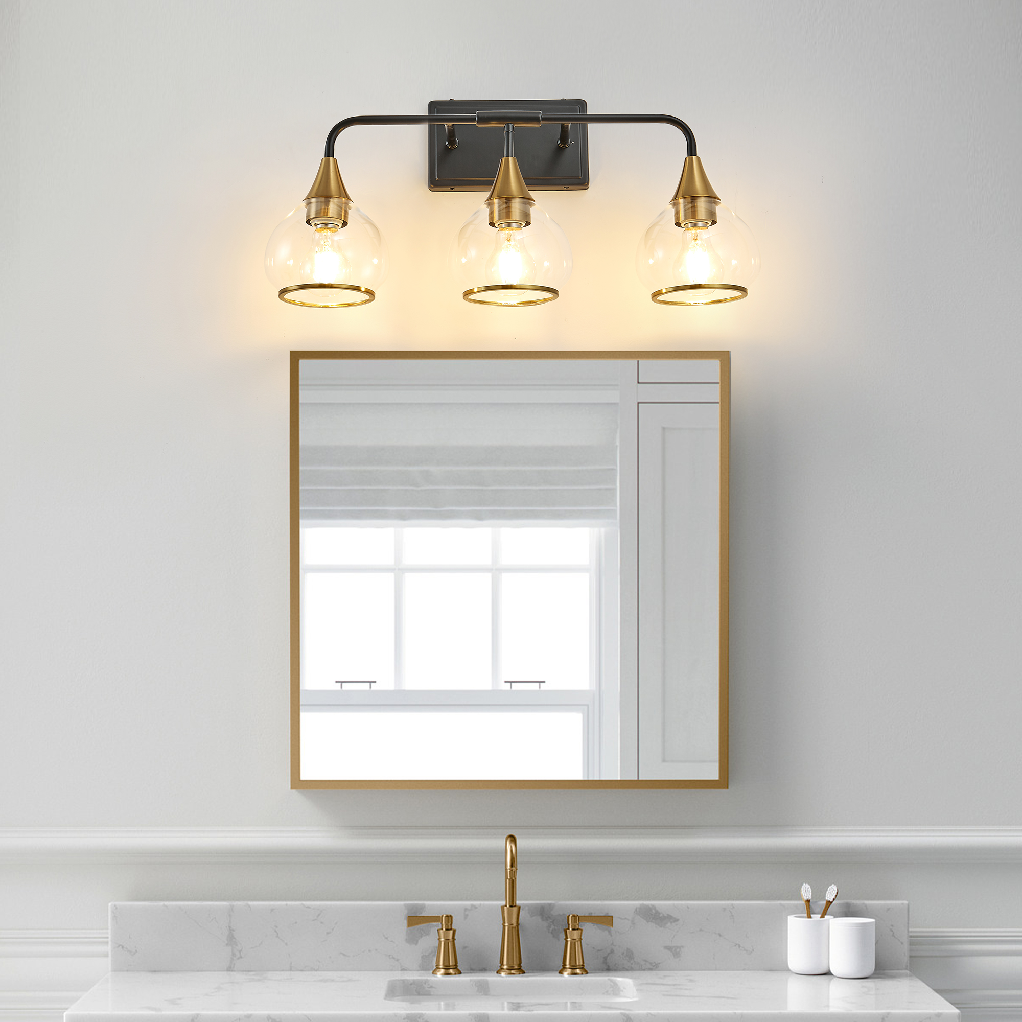 NEOSGO 23" Modern 3-Light Vanity Wall Sconce - Black and Gold Bathroom Light Fixture with Clear Glass Shades, Industrial Wall Mounted Lamp for Mirror, Vanity, and Living Spaces (Bulb Not Included) is designed to improve daily bathroom routines with a clearer mirror area and more useful lighting around the vanity space. The product presentation suggests a modern wall-mounted mirror intended for grooming, makeup, skincare, shaving, and other tasks that benefit from more even front-facing light. It works especially well in bathrooms, powder rooms, and remodeled vanity areas where customers want the mirror to provide both practical function and a cleaner visual upgrade. This type of mirror is a strong fit for shoppers looking to make the room feel brighter, more modern, and easier to use every day. Overall size is approximately 23.82 x 7.87 x 9.65 inches with a listed weight of 4.2. The current listing includes 12 product images, which help clarify the product shape, proportions, and visual placement in a real room setting.