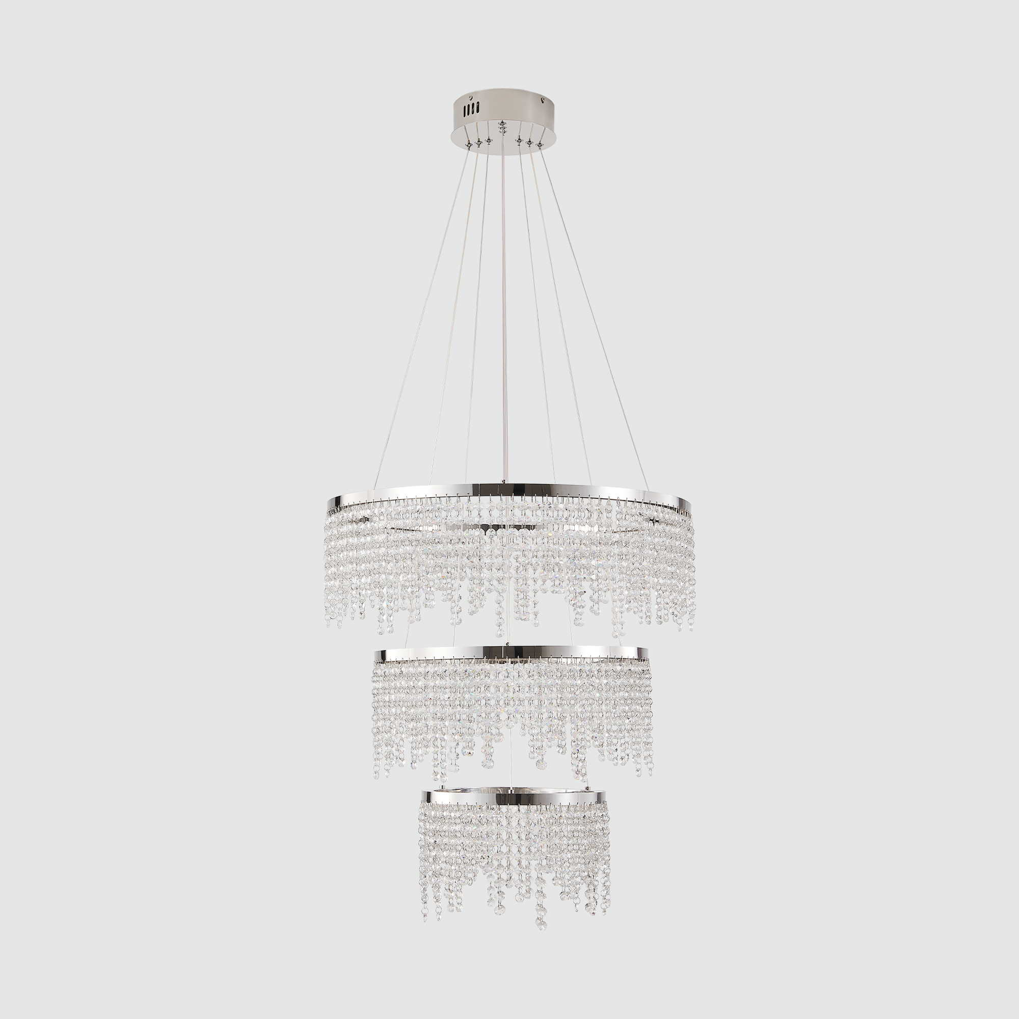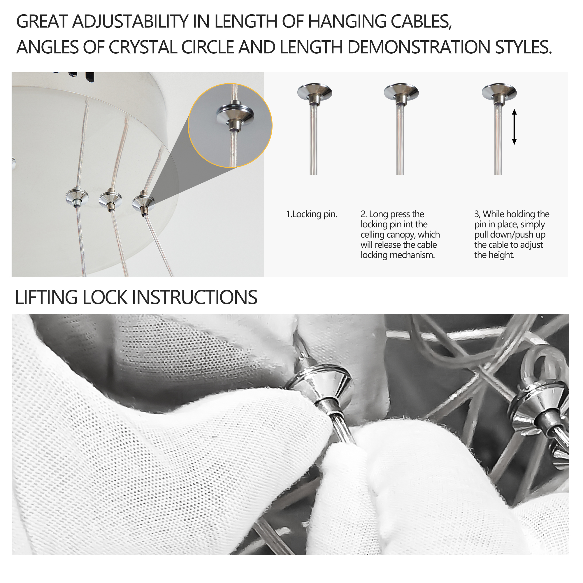 24-inch Crystal Chandelier LED Ceiling Lamp, Adjustable Color Temperature 3000K/4000K/6000K, Height Adjustable, Luxury Round Chandelier, Suitable for Living Room, Dining Room, Bedroom