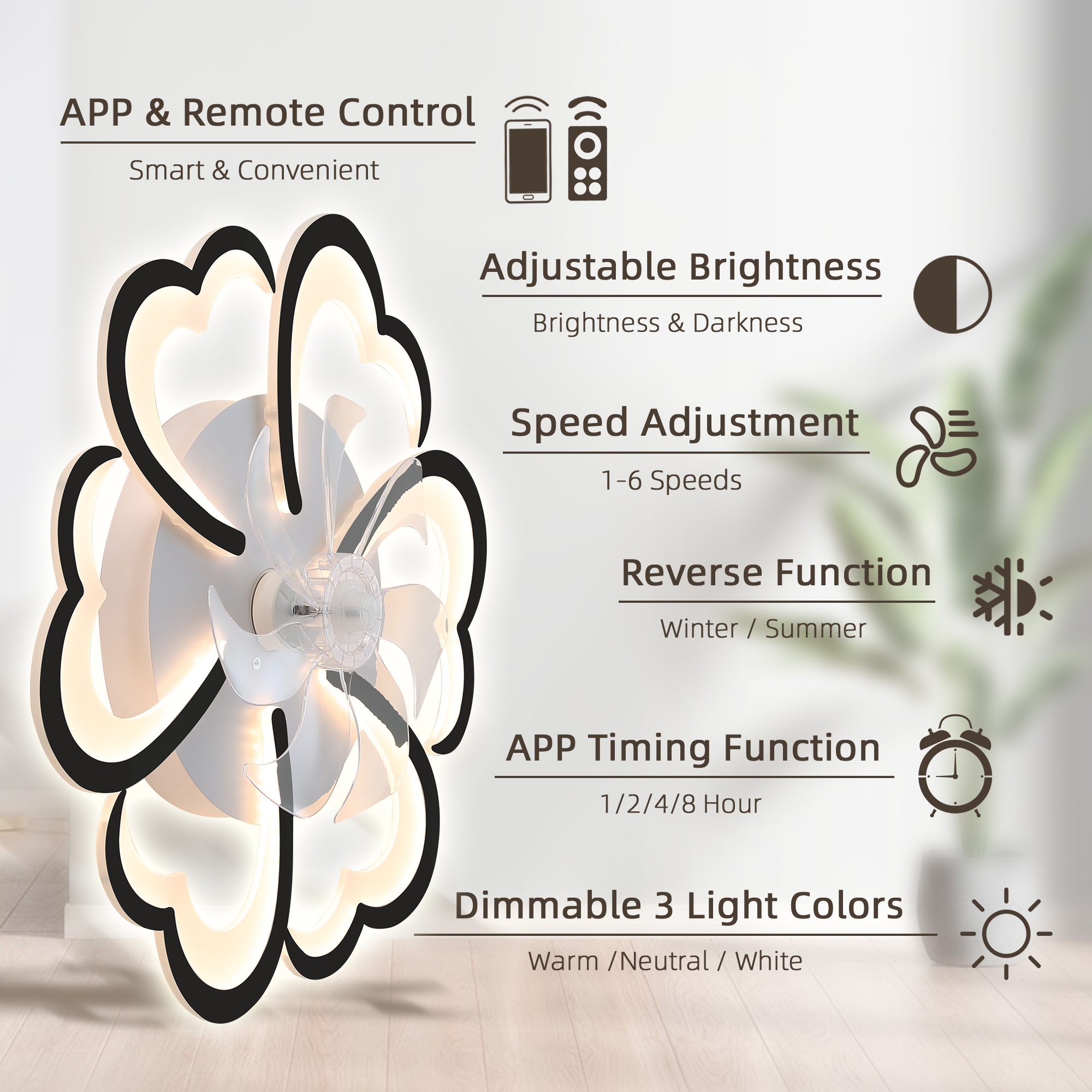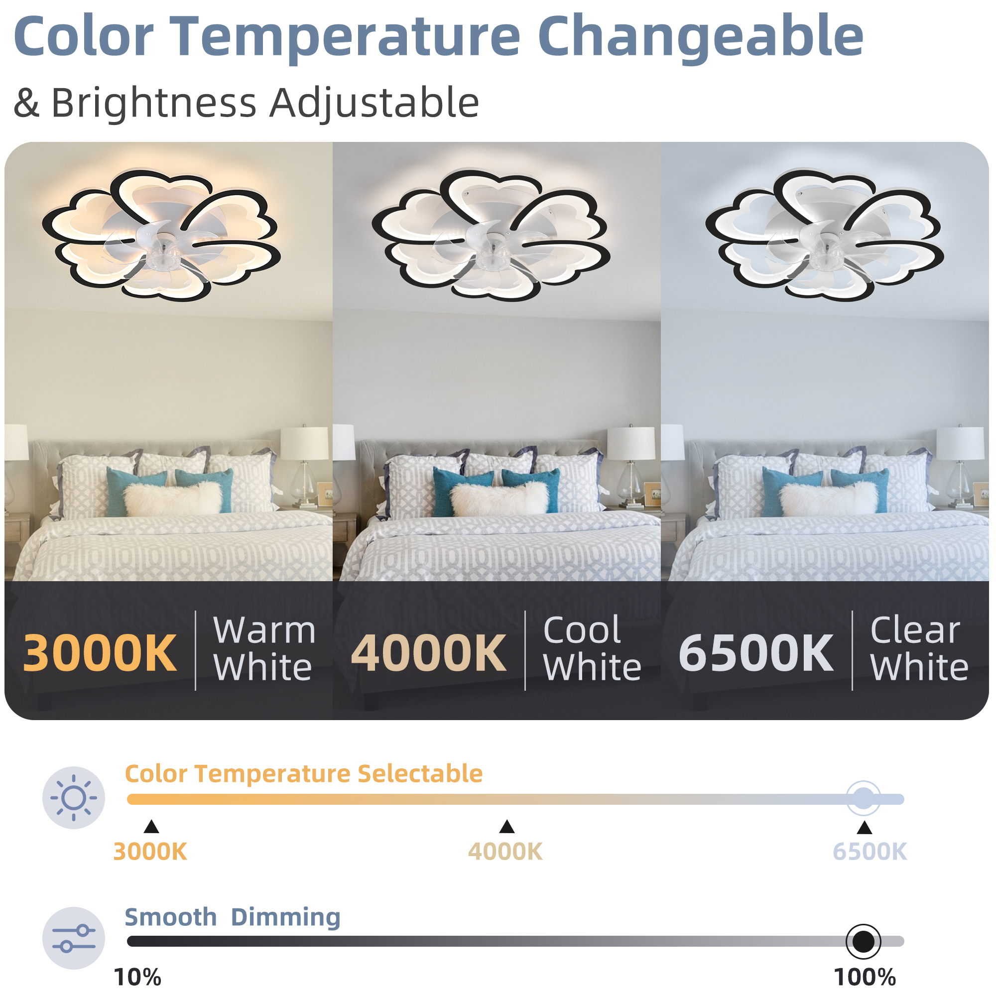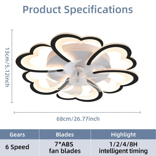 26.7In Black Ceiling Fan with Lights, Remote Control 3 Color Temperatures,6 Gear wind Speed Fan Light