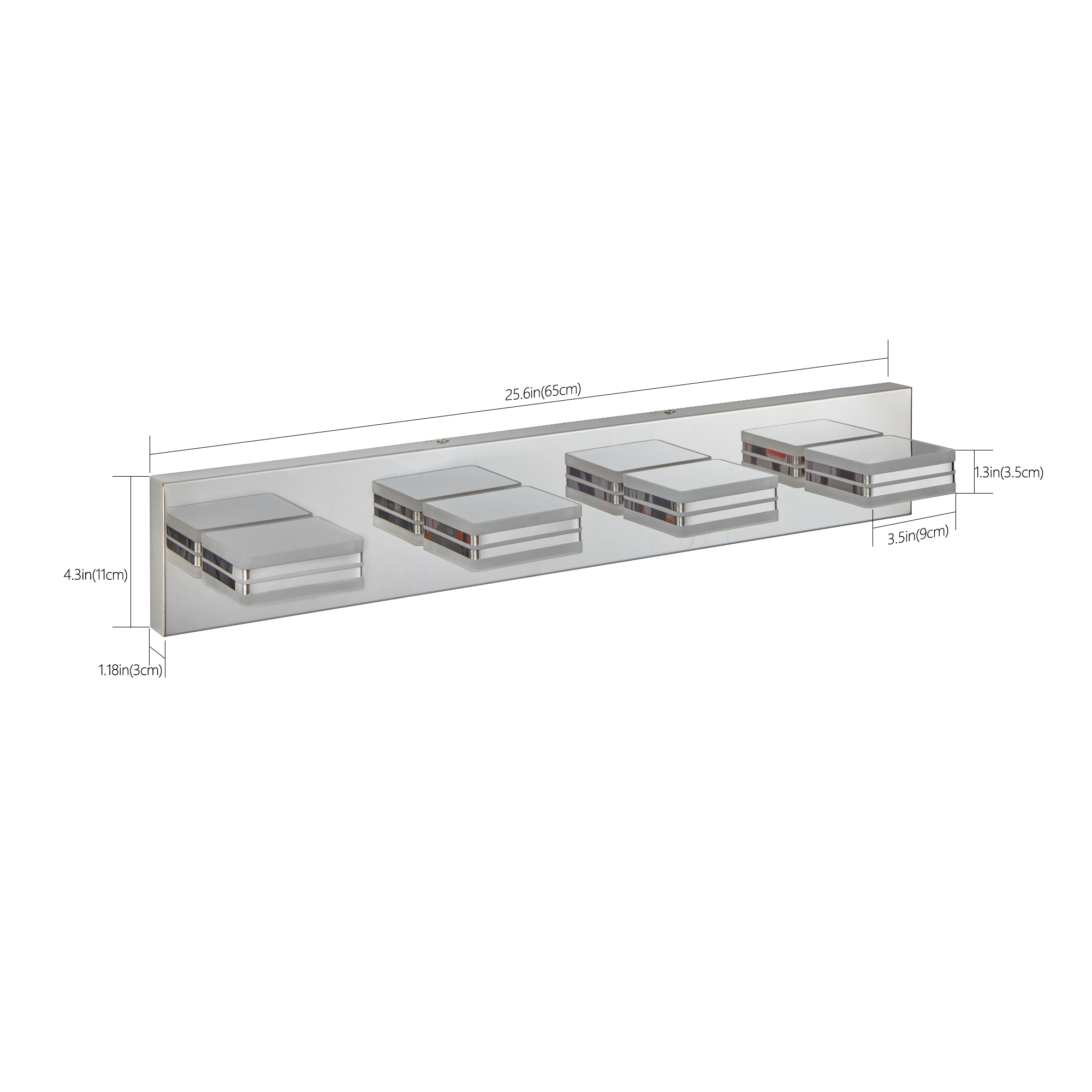 NEOSGO 26" Modern Chrome 4-Light LED Vanity Light, Square Acrylic Lampshades Wall Mount Fixture for Bathroom, Mirror Lighting is designed to improve daily bathroom routines with a clearer mirror area and more useful lighting around the vanity space. The product presentation suggests a modern wall-mounted mirror intended for grooming, makeup, skincare, shaving, and other tasks that benefit from more even front-facing light. It works especially well in bathrooms, powder rooms, and remodeled vanity areas where customers want the mirror to provide both practical function and a cleaner visual upgrade. This type of mirror is a strong fit for shoppers looking to make the room feel brighter, more modern, and easier to use every day. Overall size is approximately 27.17 x 5.51 x 5.71 inches with a listed weight of 5.1. The current listing includes 9 product images, which help clarify the product shape, proportions, and visual placement in a real room setting.