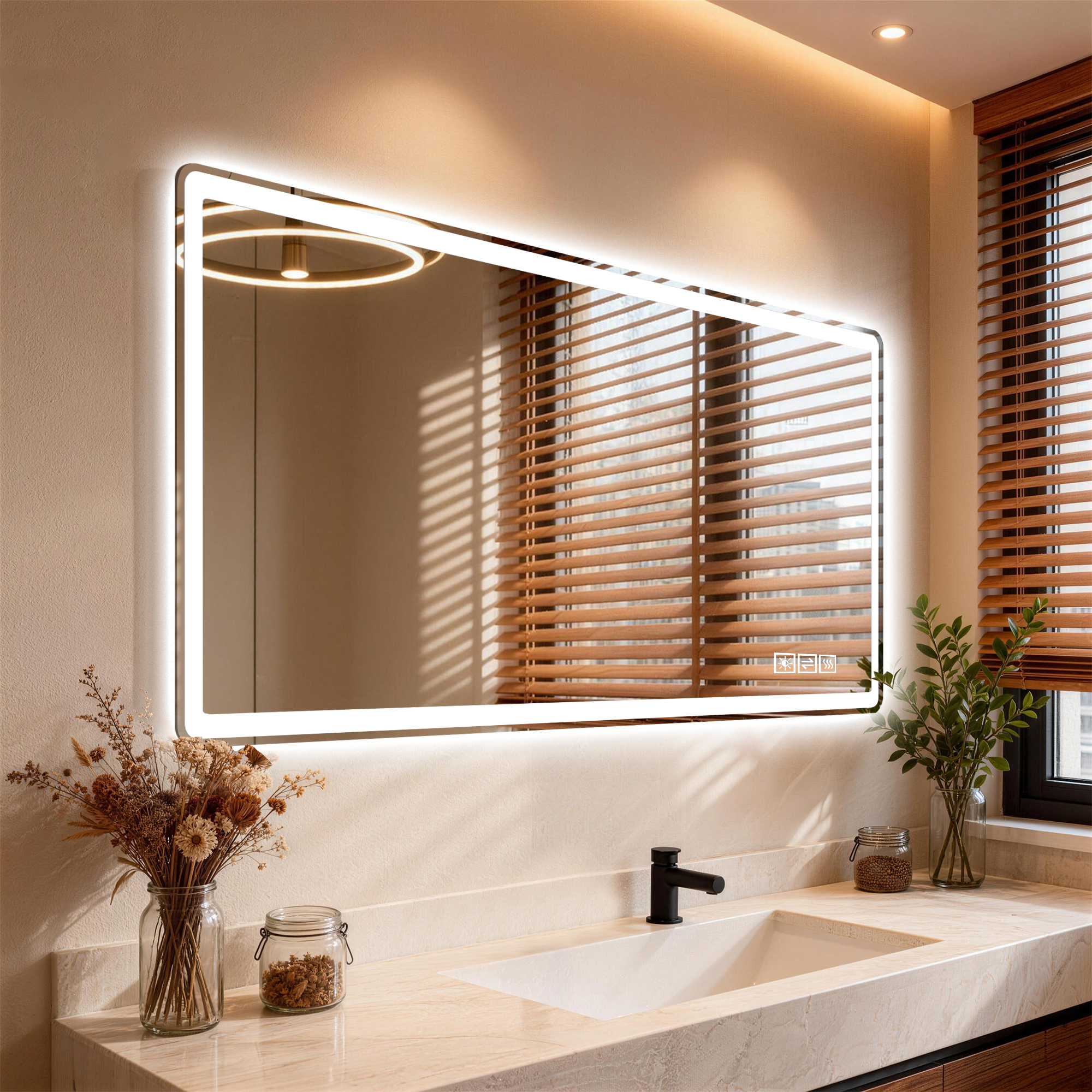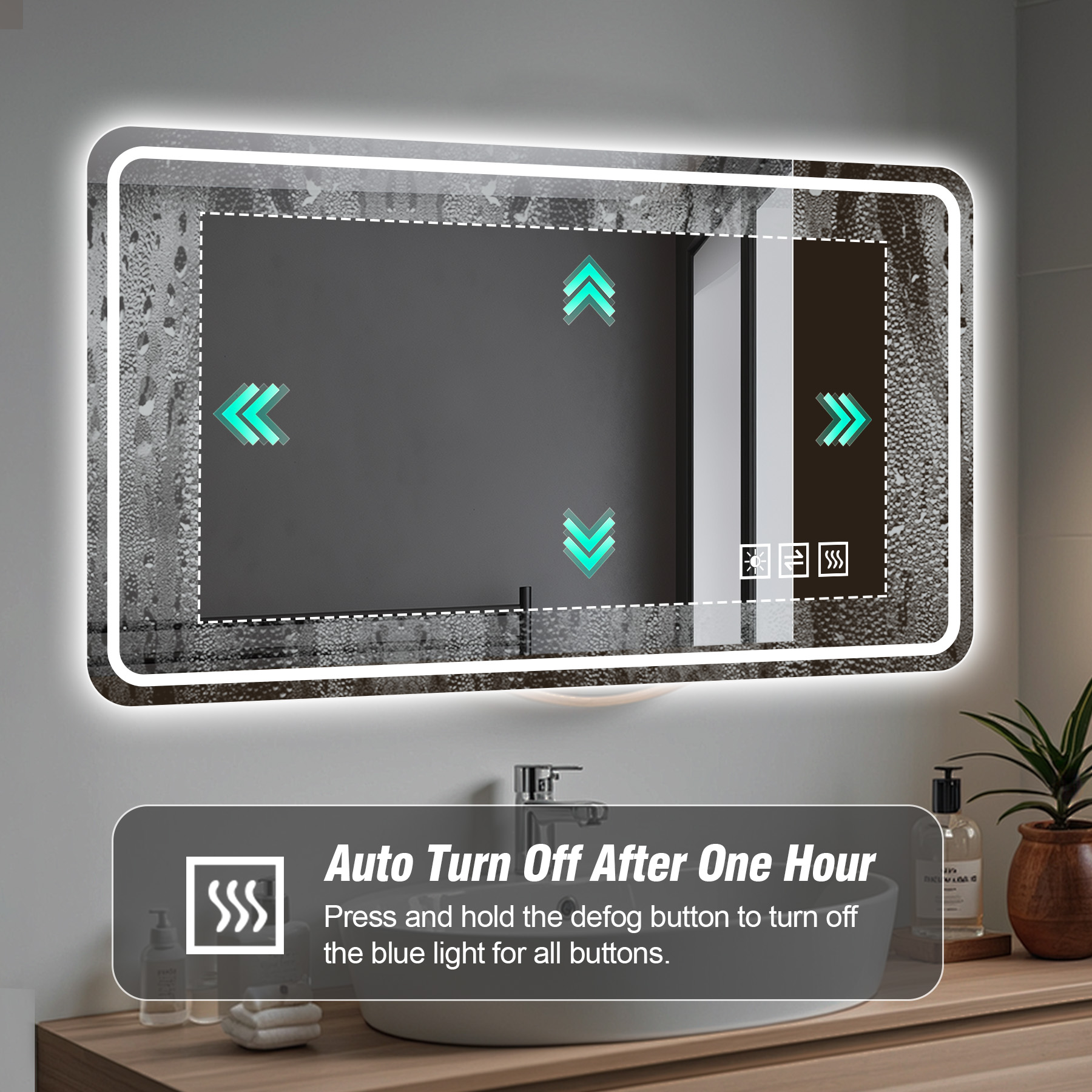 60 X 36 Rectangular Framed Dimmable Anti-Fod LED Wall Bathroom Vanity Mirror Lighted Mirror
