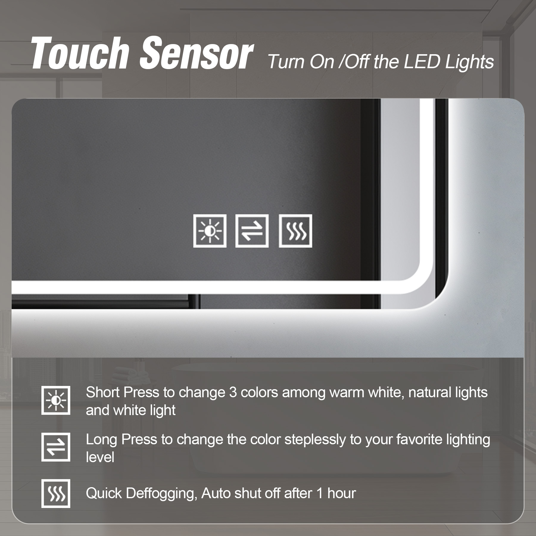 28*60inch LED Bathroom Vanity Mirror ,wall mirror,Anti-Fog, Dimmable,Shatter-Proof Tempered Glass, Ideal for Bathroom Wall Decor, Beauty Makeup and Shaving
