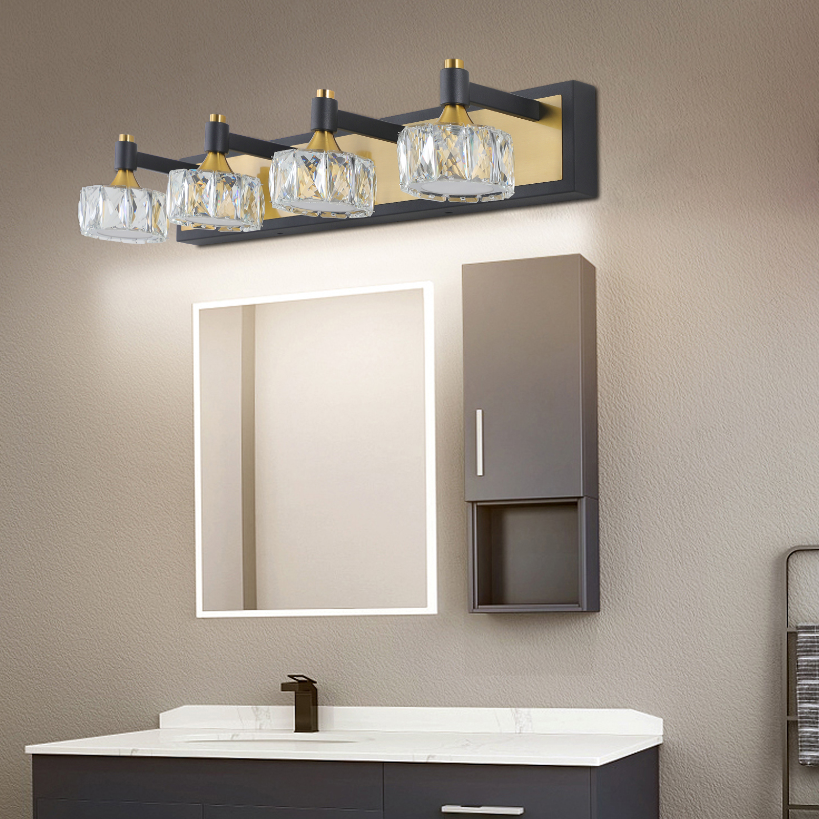 NEOSGO 28" Modern Crystal LED Vanity Light with Black and Gold Finish – 4-Light Bathroom Wall Sconce, Elegant and Stylish Fixture for Bathroom, Bedroom, or Hallway is intended to provide focused wall lighting while also adding decorative detail to the surrounding space. This style is especially useful near mirrors, over bathroom vanities, along hallways, in bedrooms, or in accent areas that benefit from directed light rather than relying only on ceiling fixtures. Based on the product presentation, it offers a practical mix of daily illumination and visual styling, which helps the room feel more complete and intentionally designed. It is a good option for customers who want better task lighting together with a more refined finished look on the wall. Overall size is approximately 31.1 x 9.4 x 7.1 inches with a listed weight of 9.8. The current listing includes 11 product images, which help clarify the product shape, proportions, and visual placement in a real room setting.