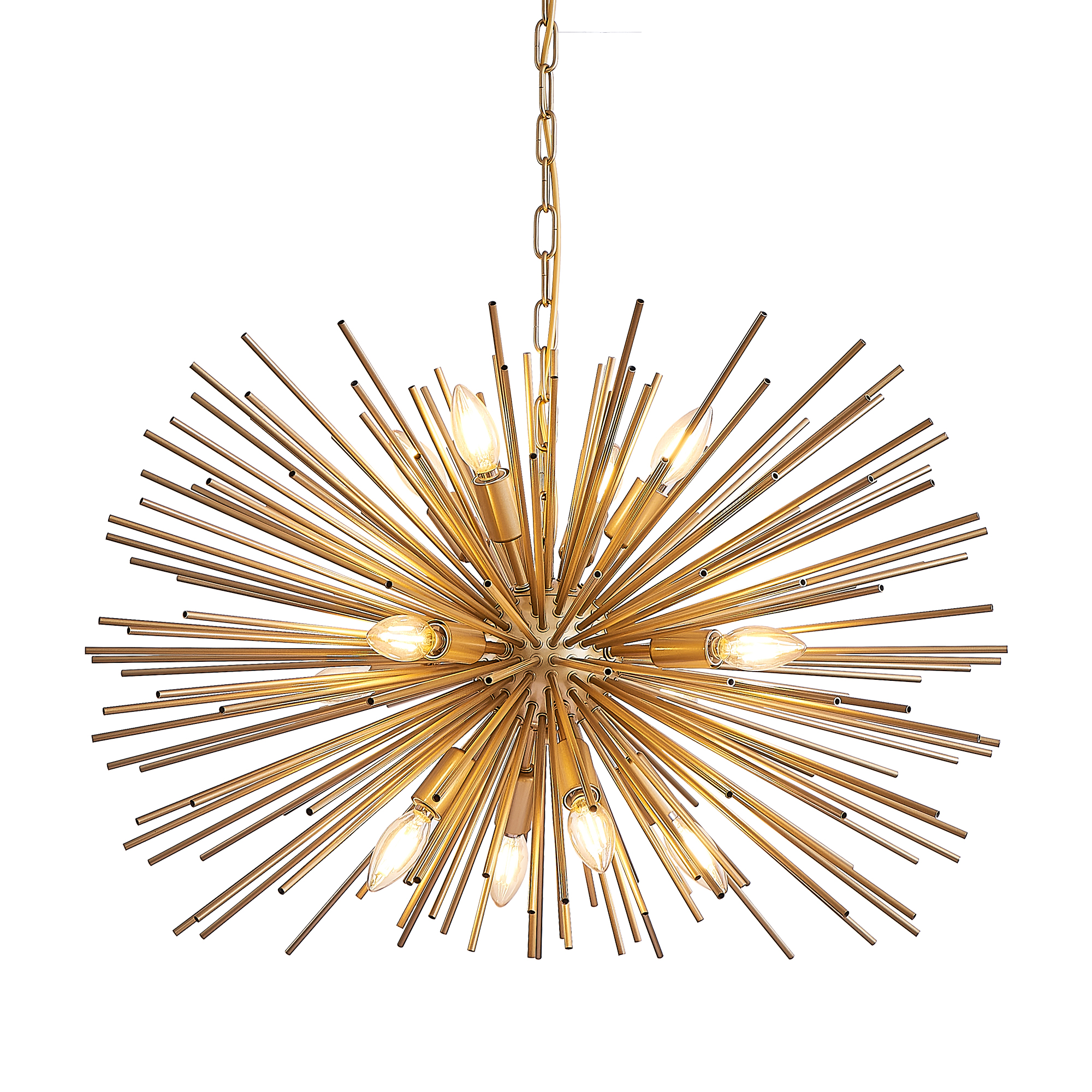 29" Mid-Century Modern 12-Light Starburst Chandelier – Gold Sputnik Pendant Light Fixture for Living Room, Dining Room, or Foyer (Bulb Not Included)