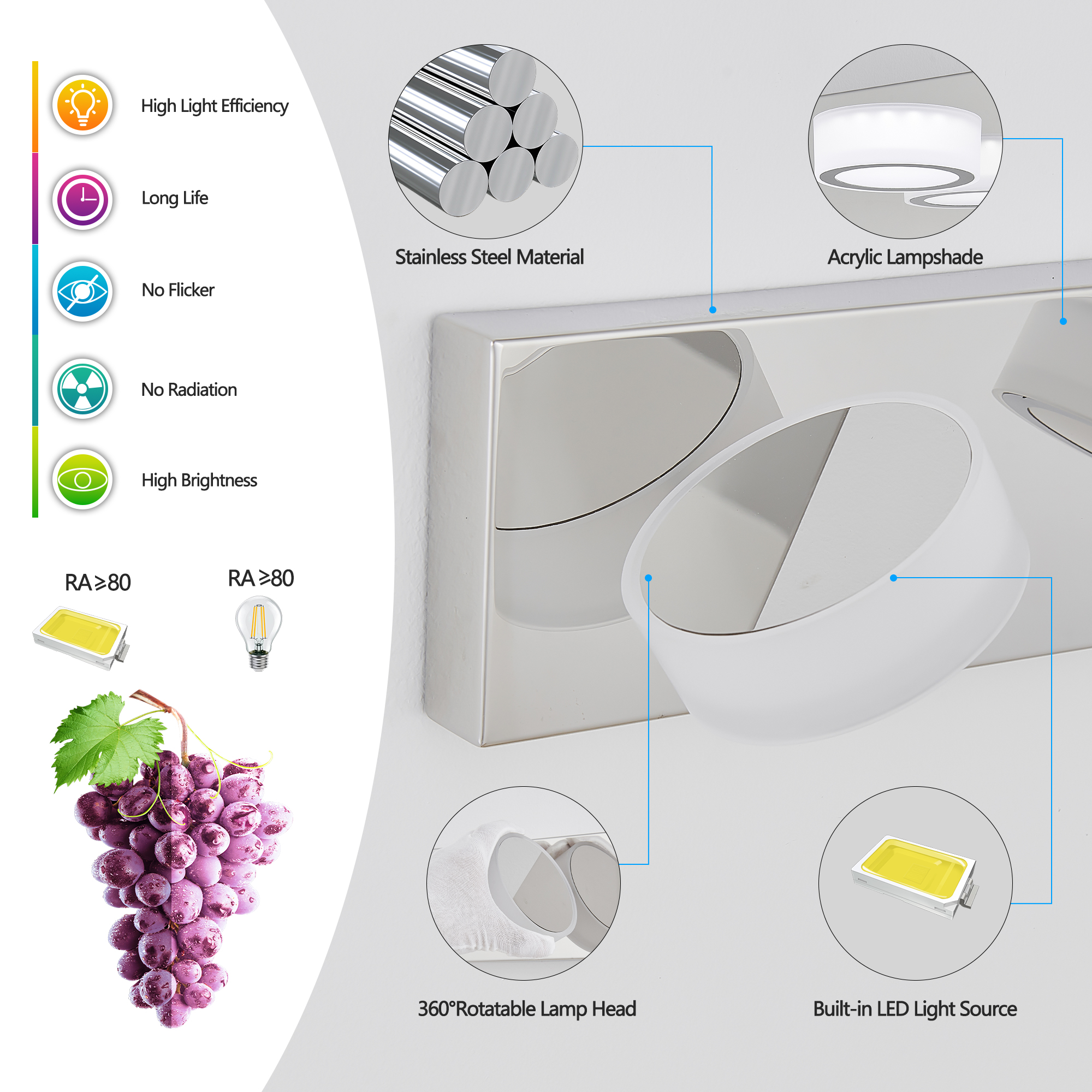 NEOSGO 29" Modern 4-Light LED Vanity Light, Sleek Chrome Bathroom Wall Light Fixture for Mirror, Shower, and Bathroom Decor. Designed to provide practical task lighting around a vanity or bathroom mirror while supporting everyday grooming routines. Product dimensions and weight: length 32.1, width 6.3, height 6.7, weight 6.7.