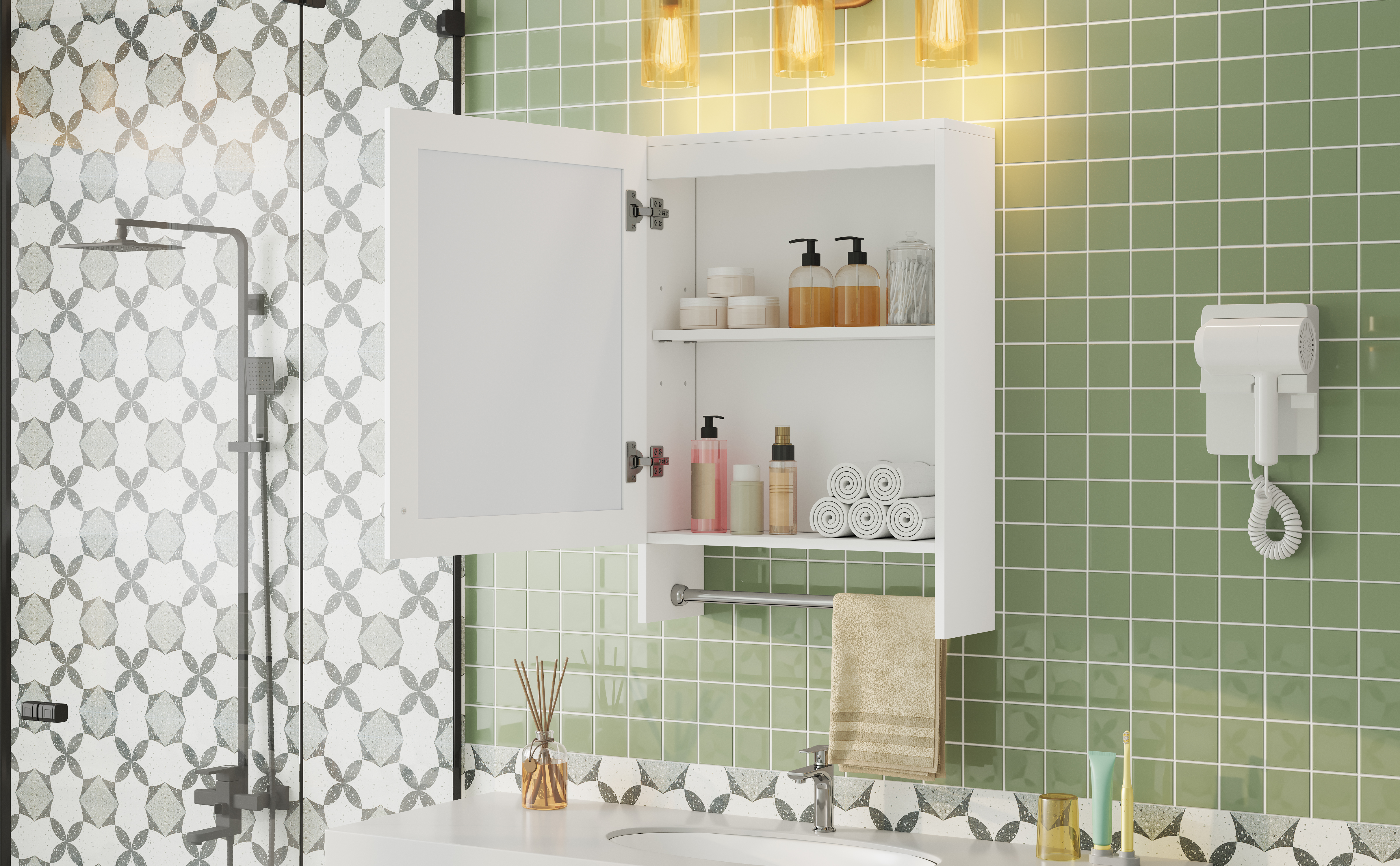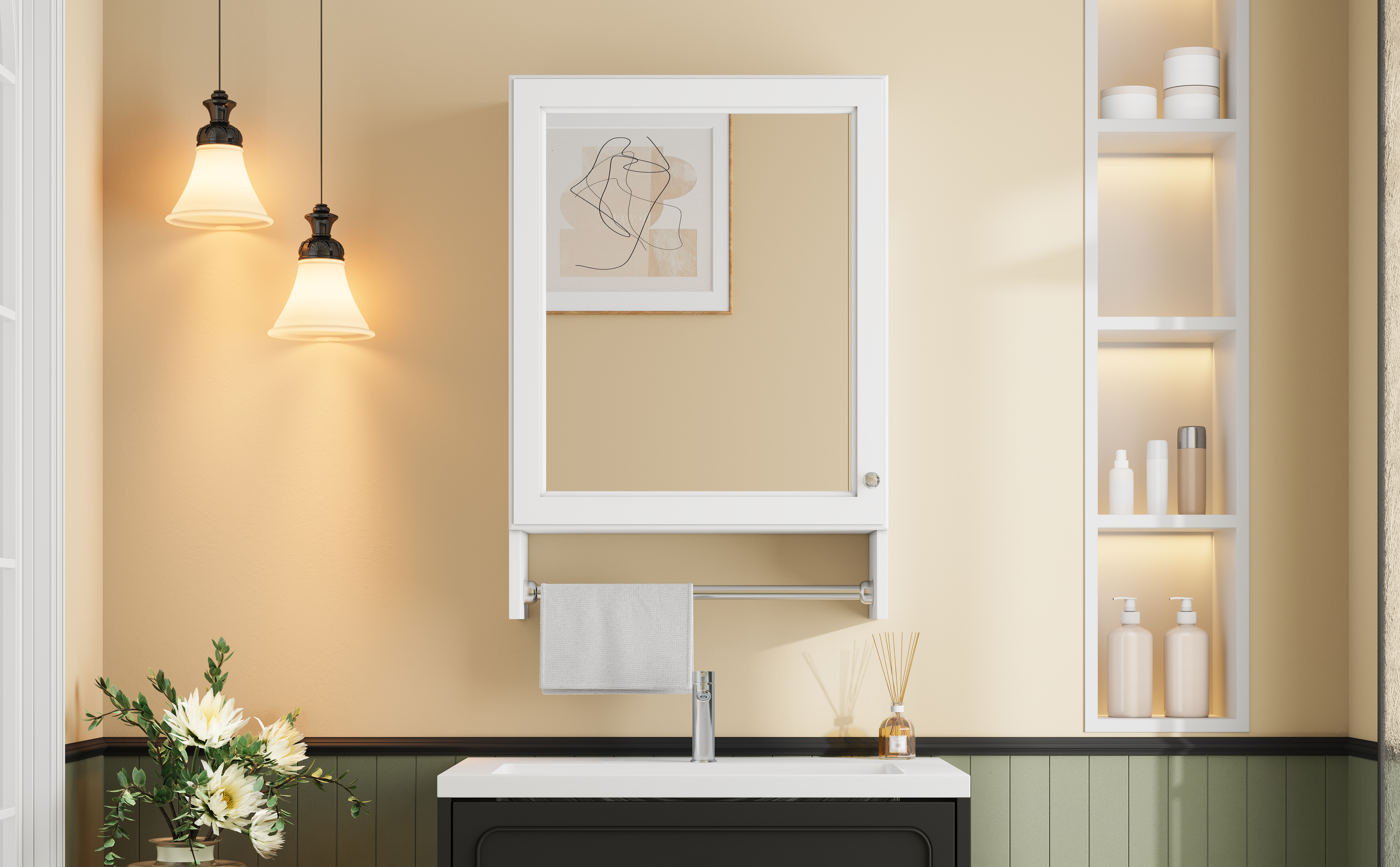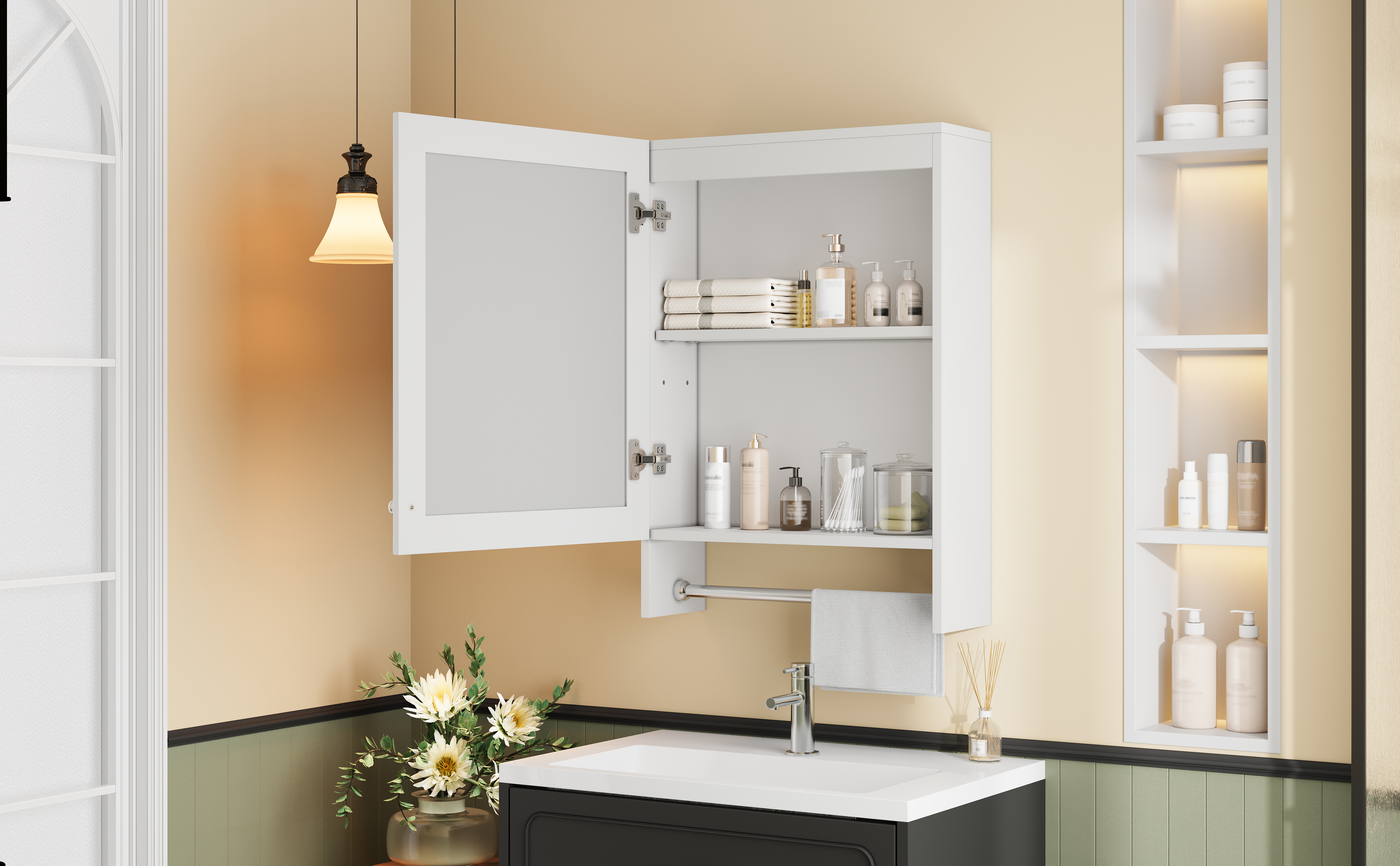 MRS 3-in-1 Bathroom Mirror Cabinet, 20-inch Wall Mounted Medicine Cabinet with Adjustable Shelf & Soft Close Door, High-Define Mirror with Storage for Bathroom Vanity. Designed to provide practical task lighting around a vanity or bathroom mirror while supporting everyday grooming routines. Material: Solid Wood+MDF. Product dimensions and weight: length 31.5, width 24.02, height 4.53, weight 27.56.
