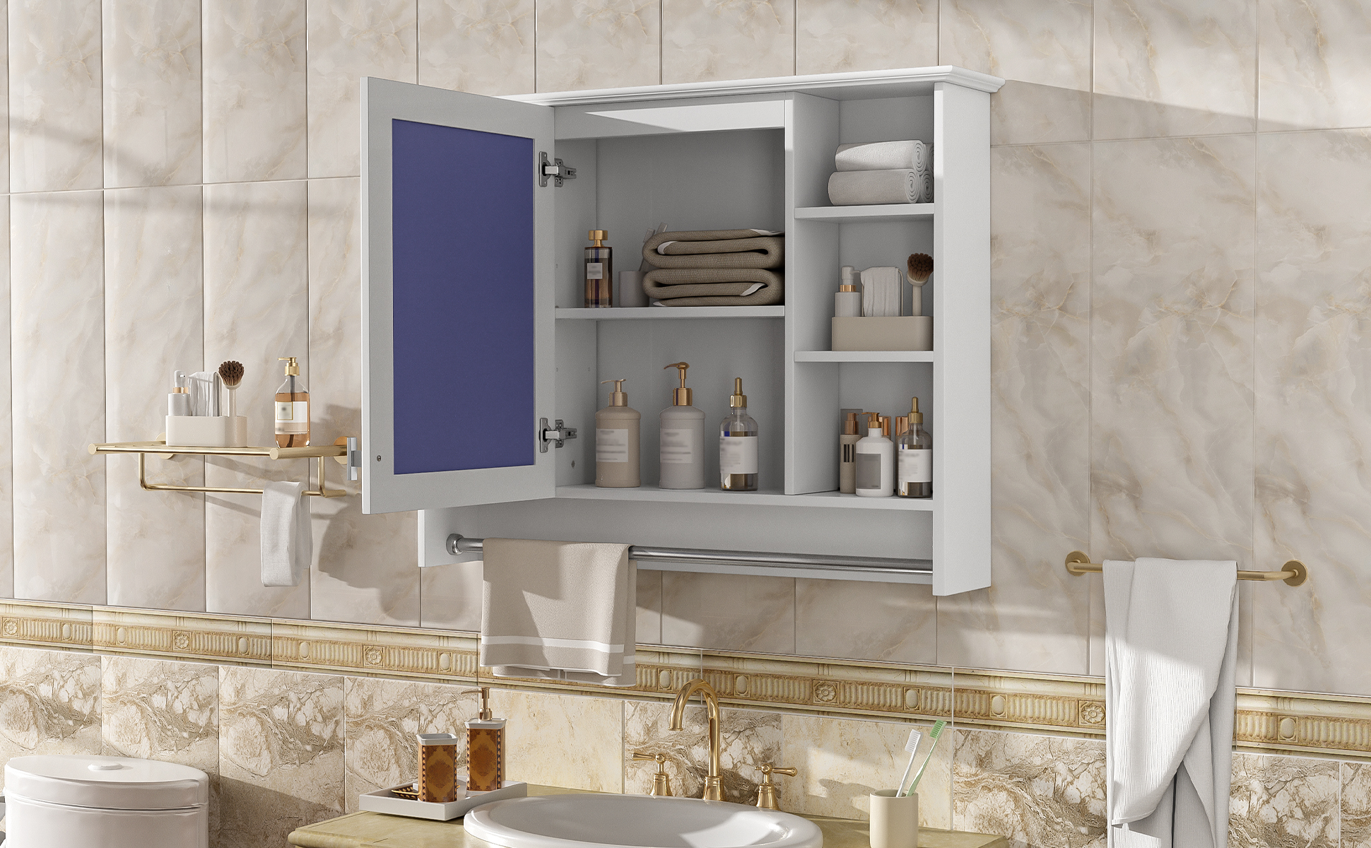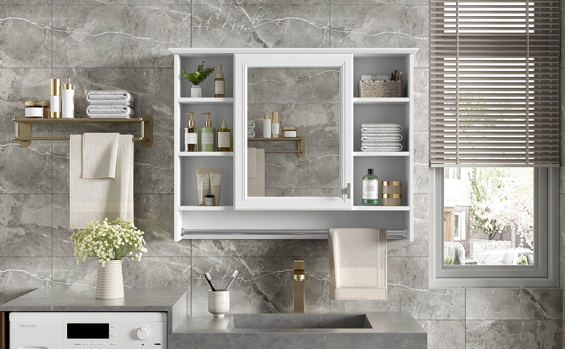 MRS 3-in-1 Bathroom Mirror Cabinet, 36-inch Wall Mounted Medicine Cabinet with Adjustable Shelf & Soft Close Door, High-Define Mirror with Storage for Bathroom Vanity. Designed to provide practical task lighting around a vanity or bathroom mirror while supporting everyday grooming routines. Material: Solid Wood+MDF. Product dimensions and weight: length 39.5, width 21.75, height 6, weight 41.42.
