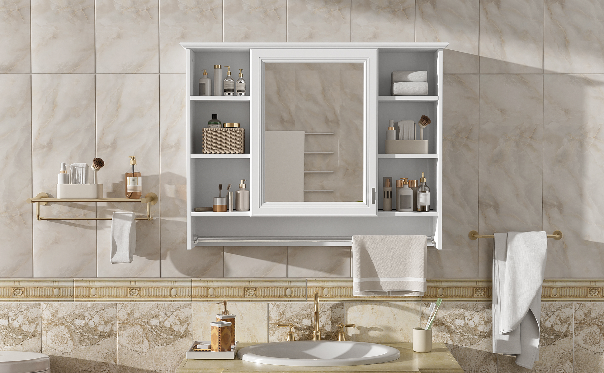 3-in-1 Bathroom Mirror Cabinet, 36-inch Wall Mounted Medicine Cabinet with Adjustable Shelf & Soft Close Door, High-Define Mirror with Storage for Bathroom Vanity