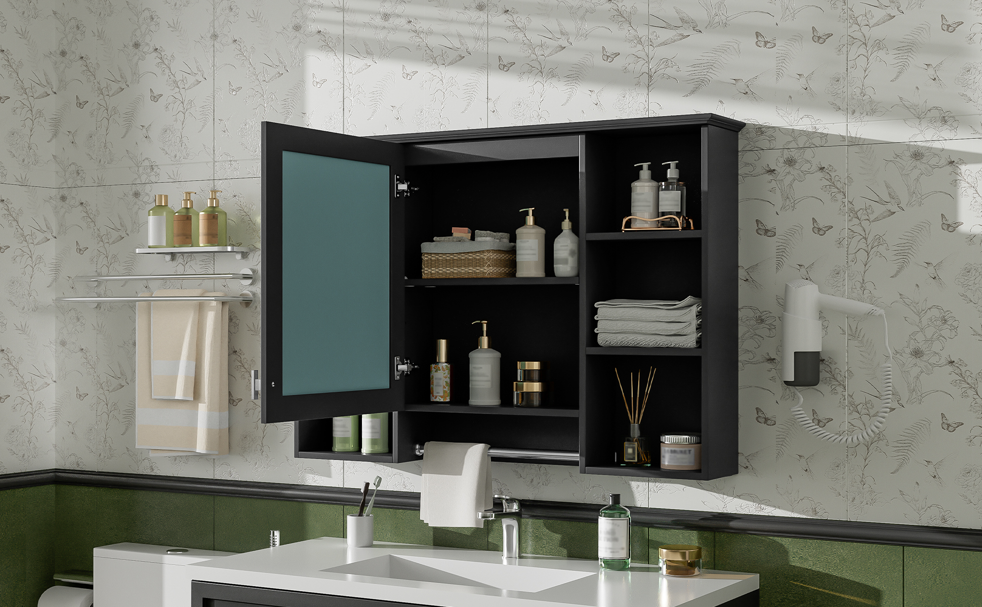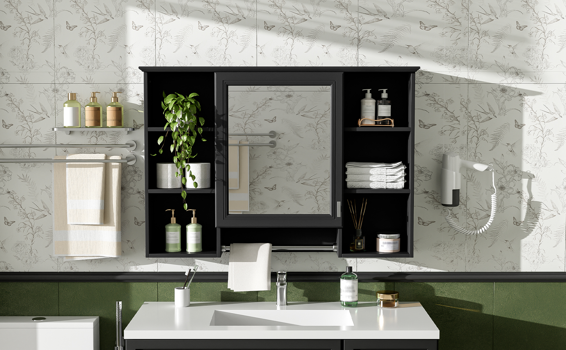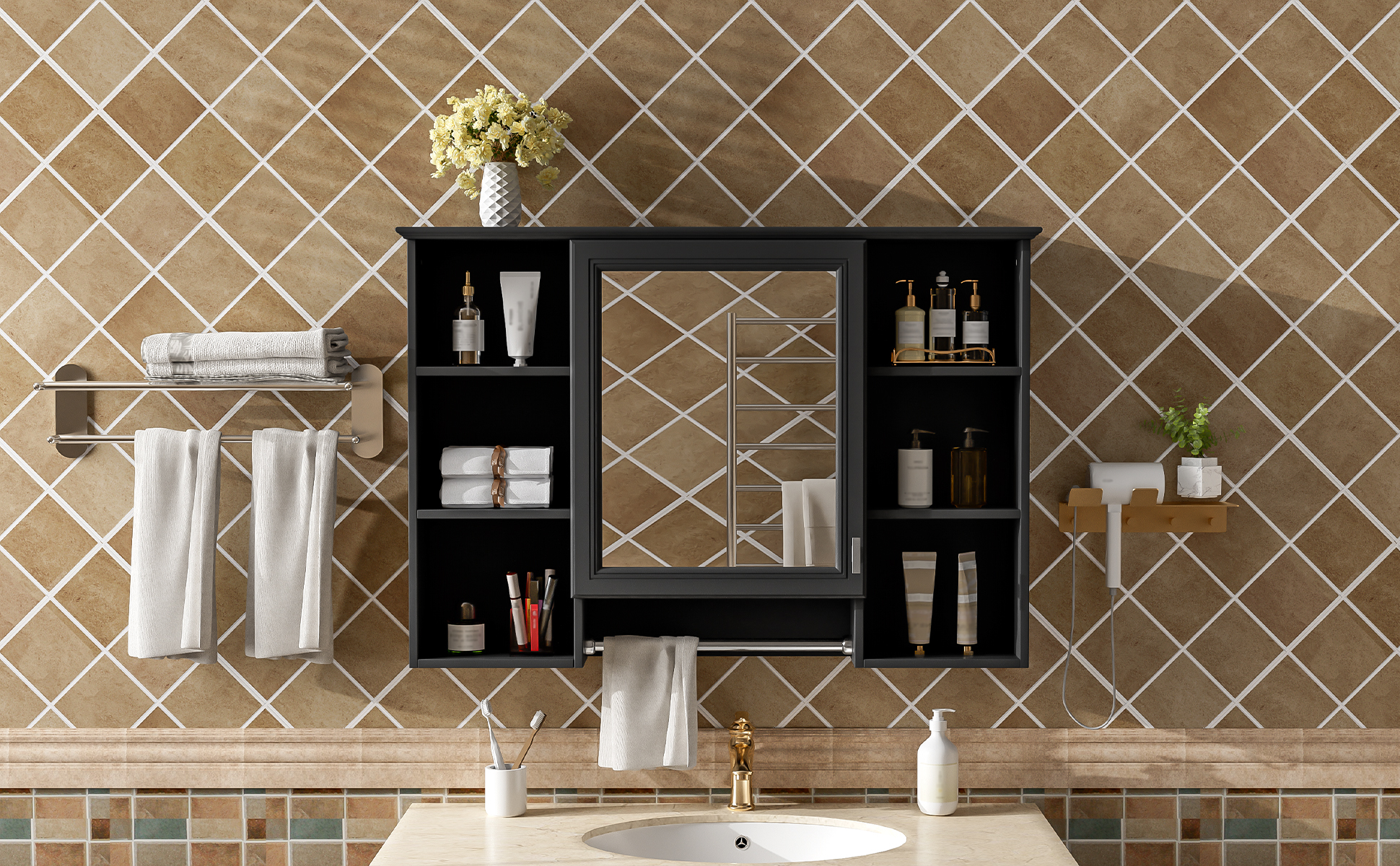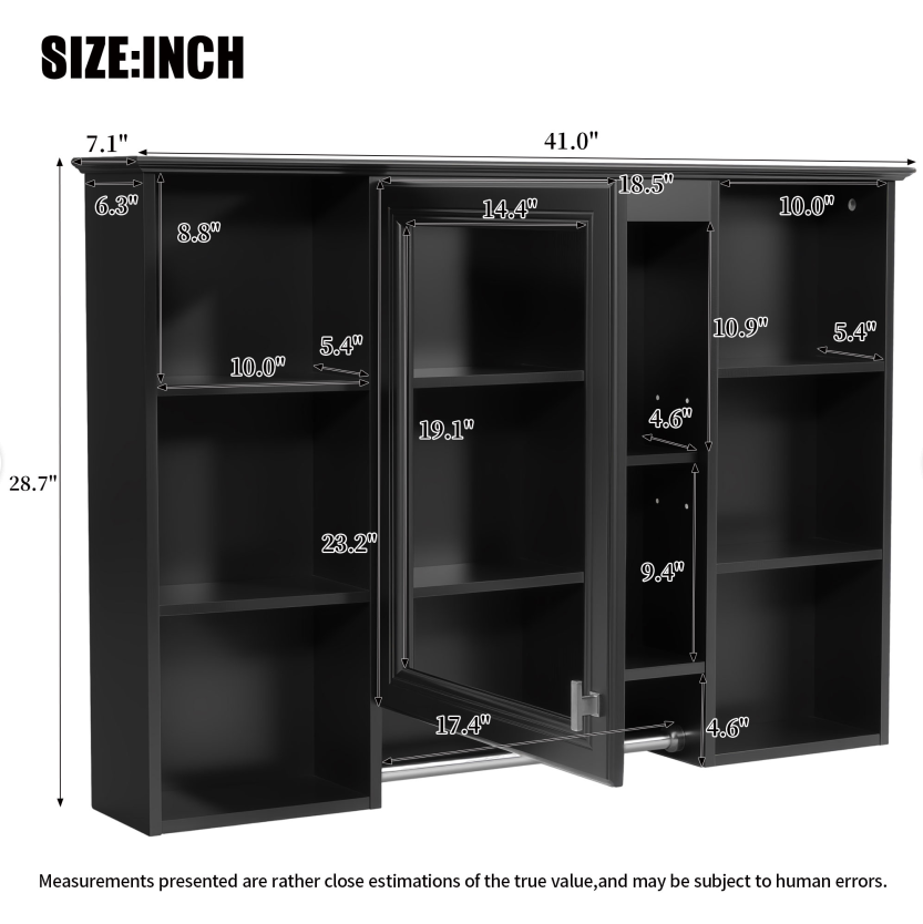 MRS 3-in-1 Bathroom Mirror Cabinet, 42 inch Wall Mounted Medicine Cabinet with Adjustable Shelf & Soft Close Door, High-Define Mirror with Storage for Bathroom Vanity. Designed to provide practical task lighting around a vanity or bathroom mirror while supporting everyday grooming routines. Material: Solid Wood+MDF. Product dimensions and weight: length 44.75, width 22.5, height 6.1, weight 47.49.