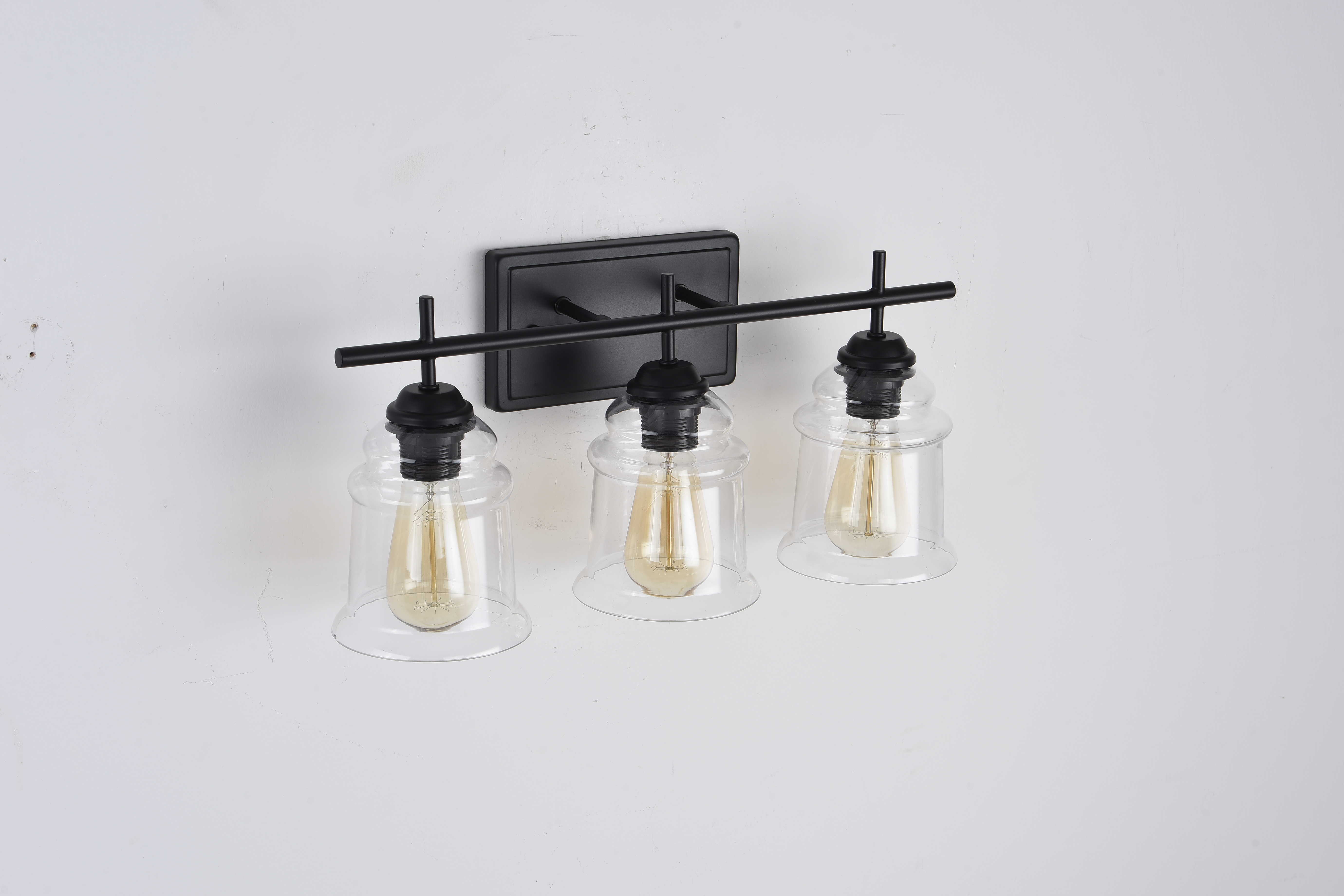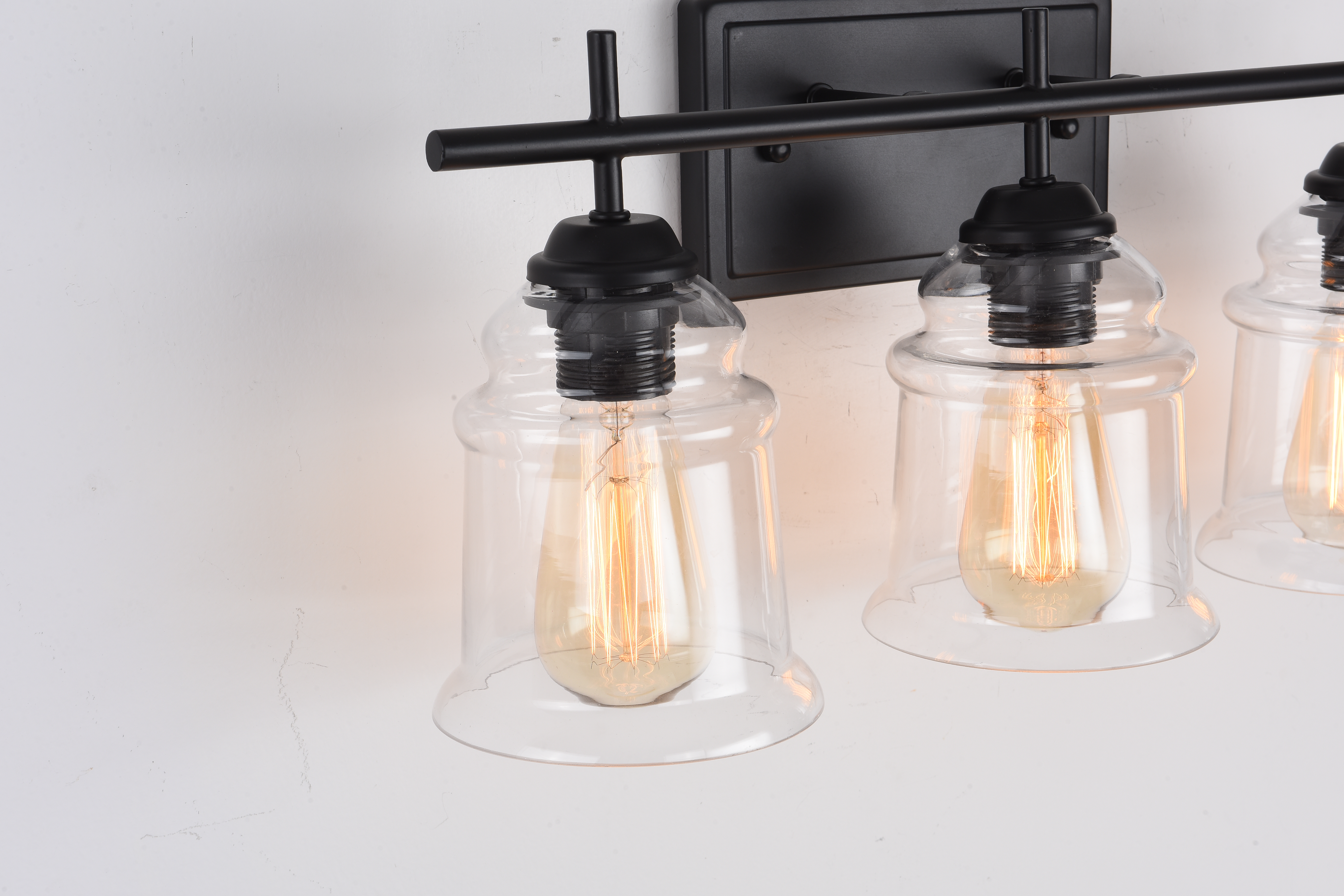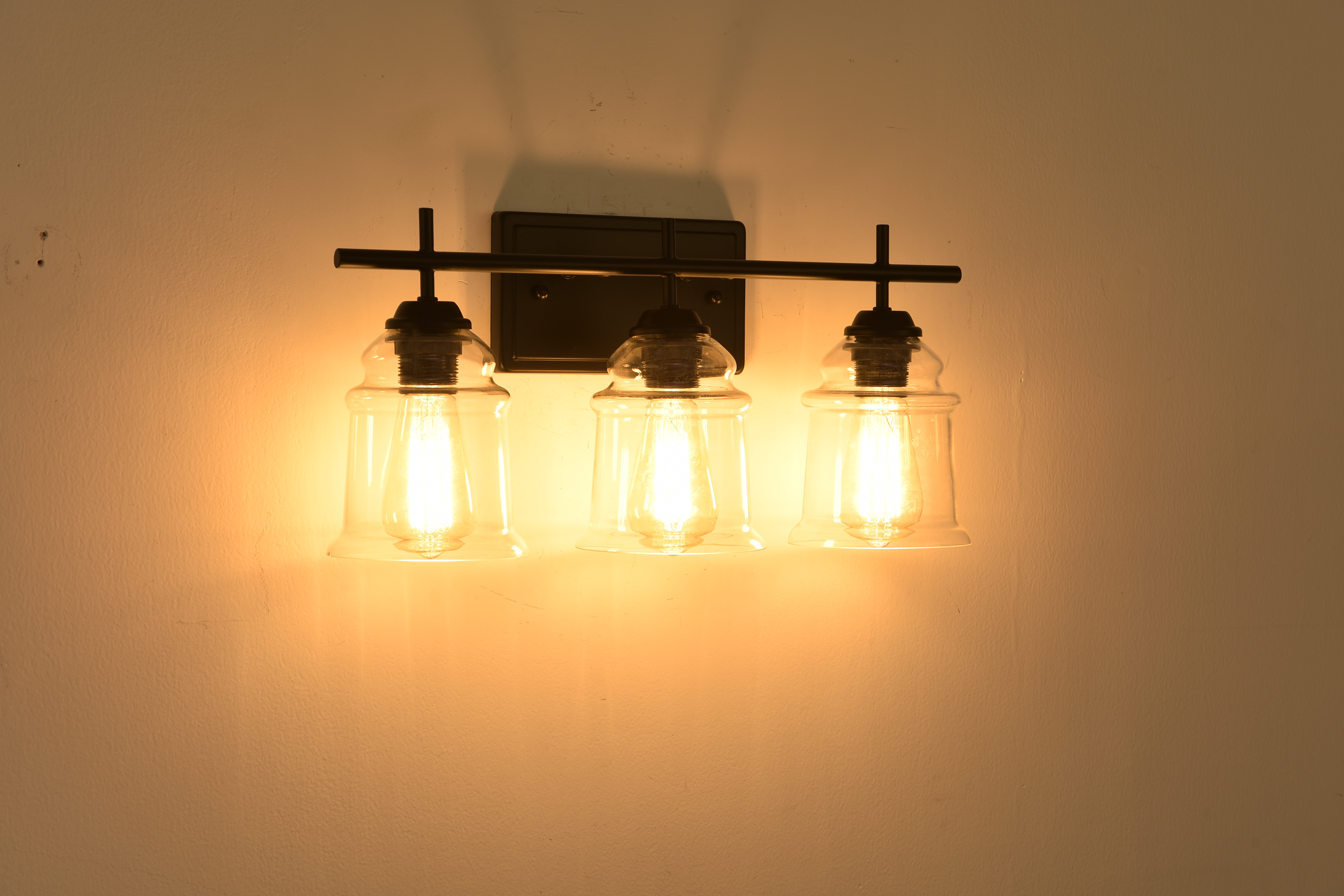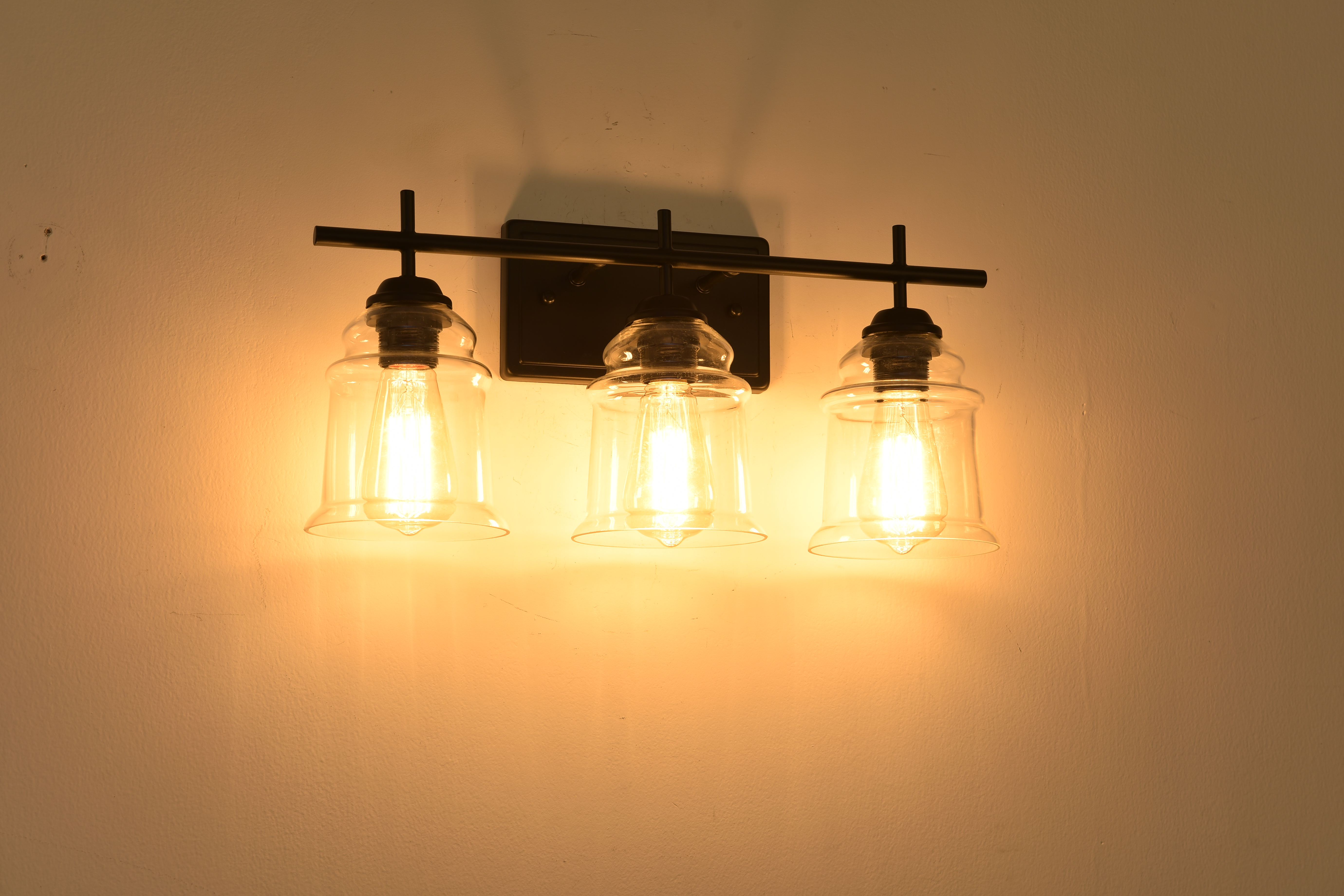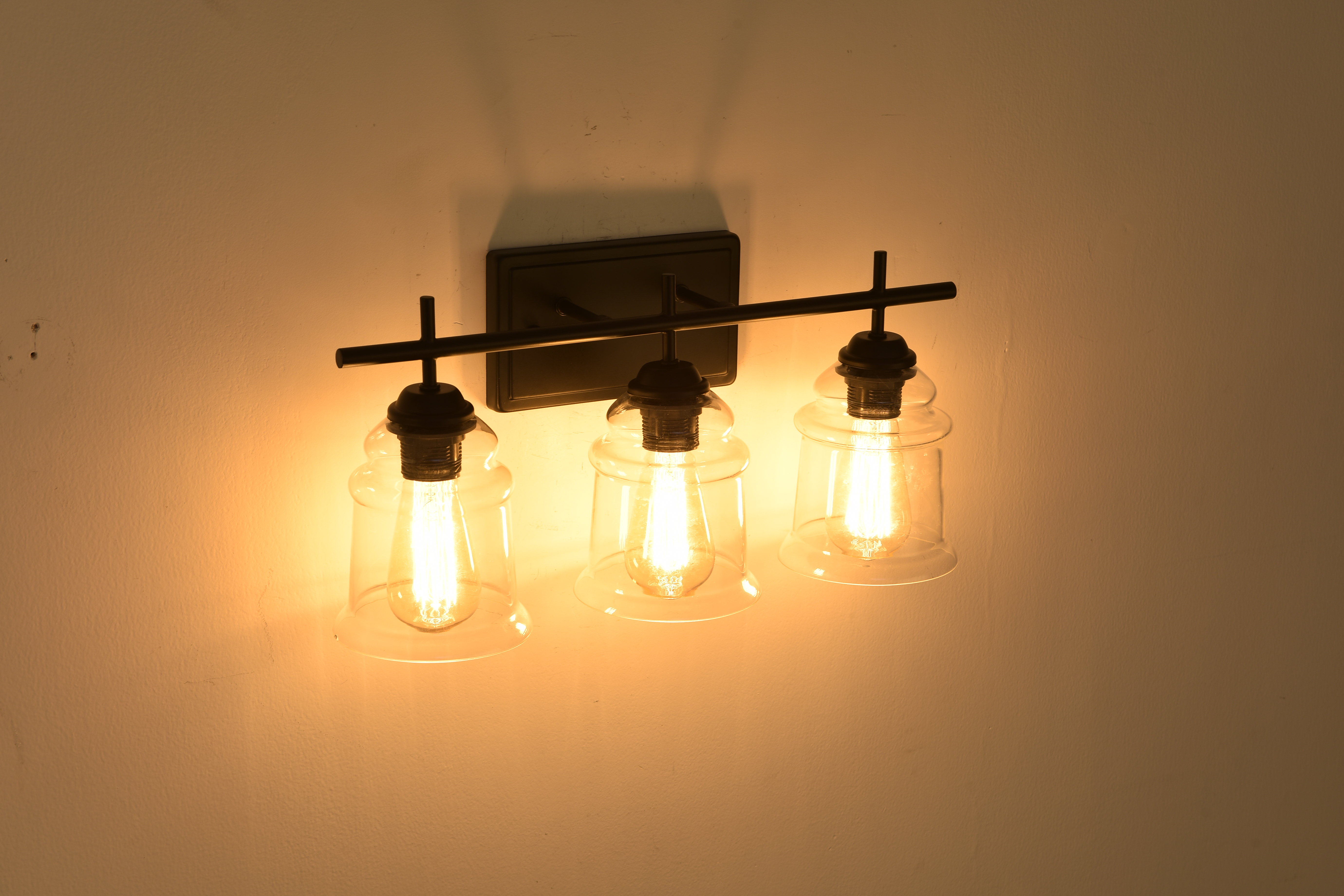 NEOSGO 3-Light with Clear Glass Satin Shade, Unique Hand-make Lampshade, Industrial Indoor Light Fixture for Bathroom Living Room Bedroom Over Kitchen Sink, E26 Socket [No Bulb]. Useful as everyday supplemental lighting for reading, relaxing, or adding warmth to living spaces. Suggested spaces: Bathroom, Kitchen, Bedroom. Style: Industrial, Modern. Product dimensions and weight: length 20.87, width 10.24, height 8.27, weight 5.79.