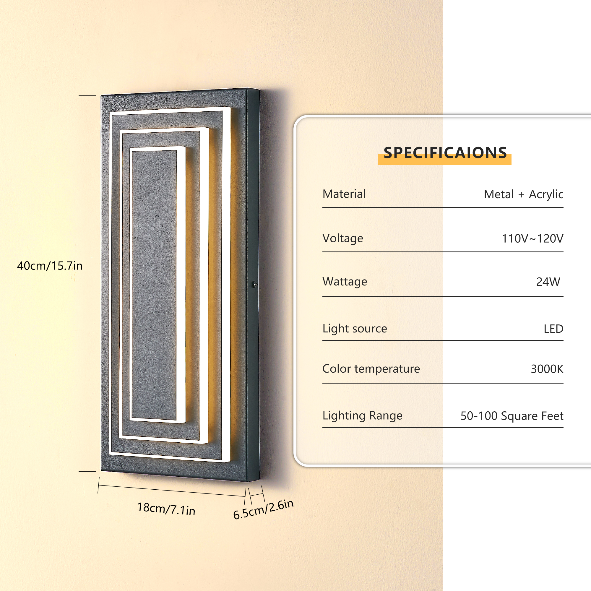 NEOSGO 3-Tier 15.7 in Outdoor Light Fixture Black Exterior Wall Light LED Modern Wall Sconce Waterproof Outdoor Garage Lighting(2 Pack) is intended to provide focused wall lighting while also adding decorative detail to the surrounding space. This style is especially useful near mirrors, over bathroom vanities, along hallways, in bedrooms, or in accent areas that benefit from directed light rather than relying only on ceiling fixtures. Based on the product presentation, it offers a practical mix of daily illumination and visual styling, which helps the room feel more complete and intentionally designed. It is a good option for customers who want better task lighting together with a more refined finished look on the wall. Overall size is approximately 16.1 x 7.5 x 5.9 inches with a listed weight of 8.1. The current listing includes 9 product images, which help clarify the product shape, proportions, and visual placement in a real room setting.
