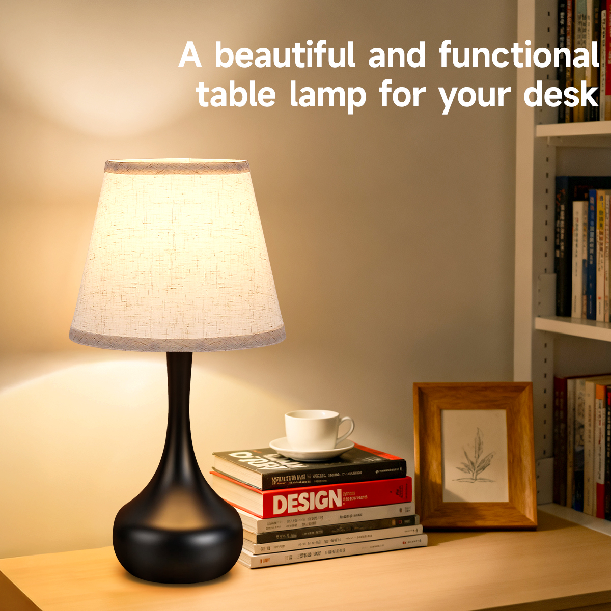 3-Way Dimmable Set of 2 Small Bedside Lamps for Night Stands, Black Desk Lamps for Kids Room,Office,Living Room, End Table(LED Bulbs Included)