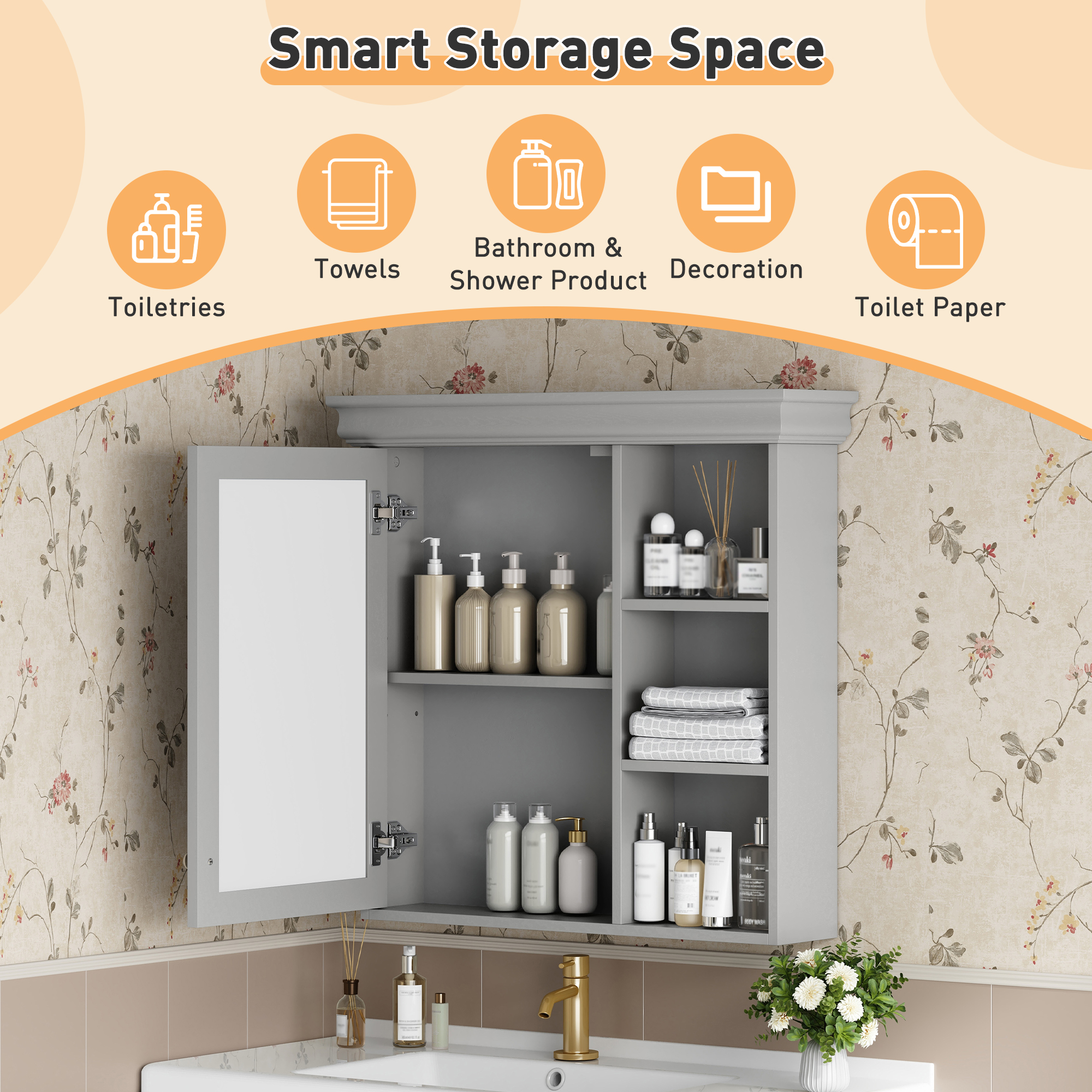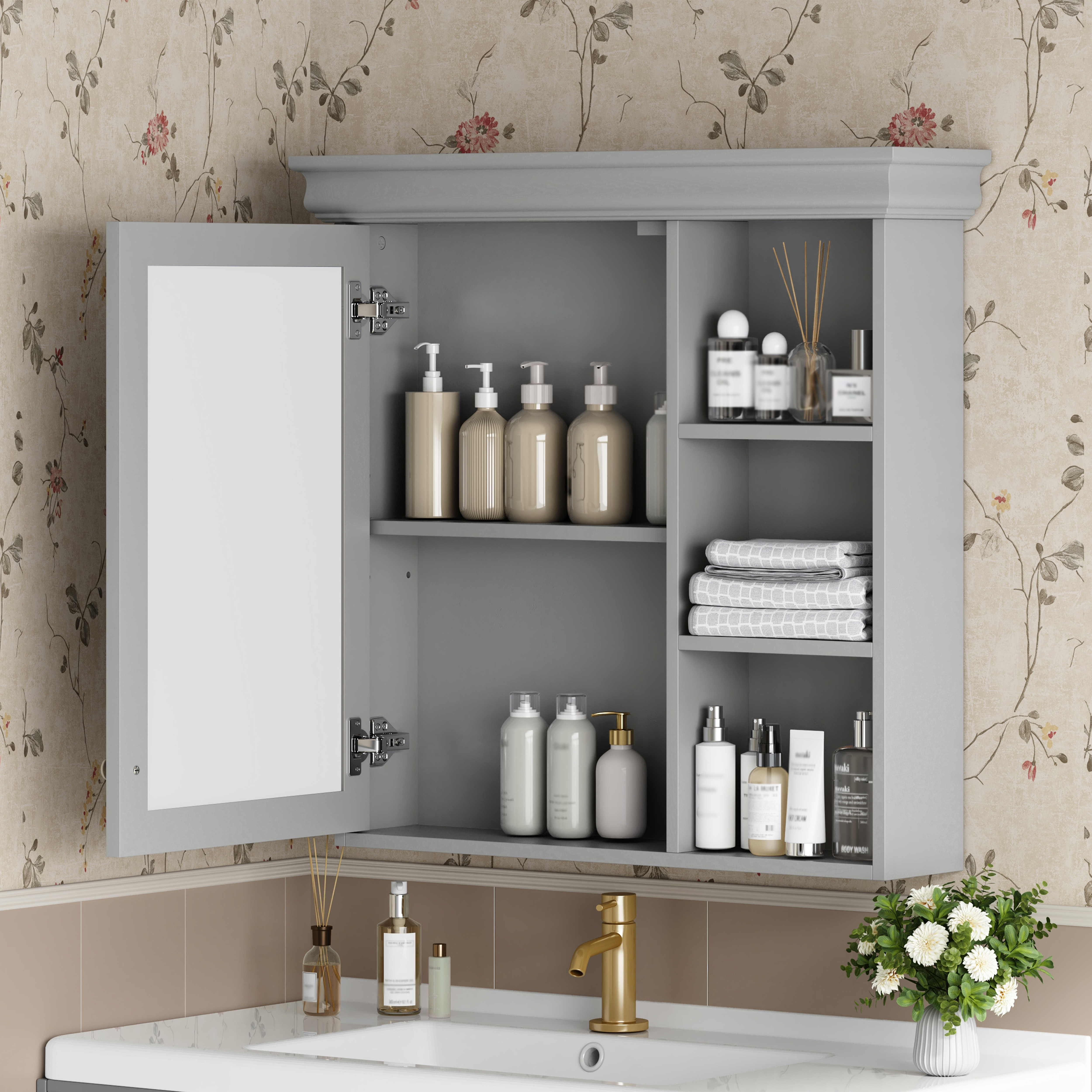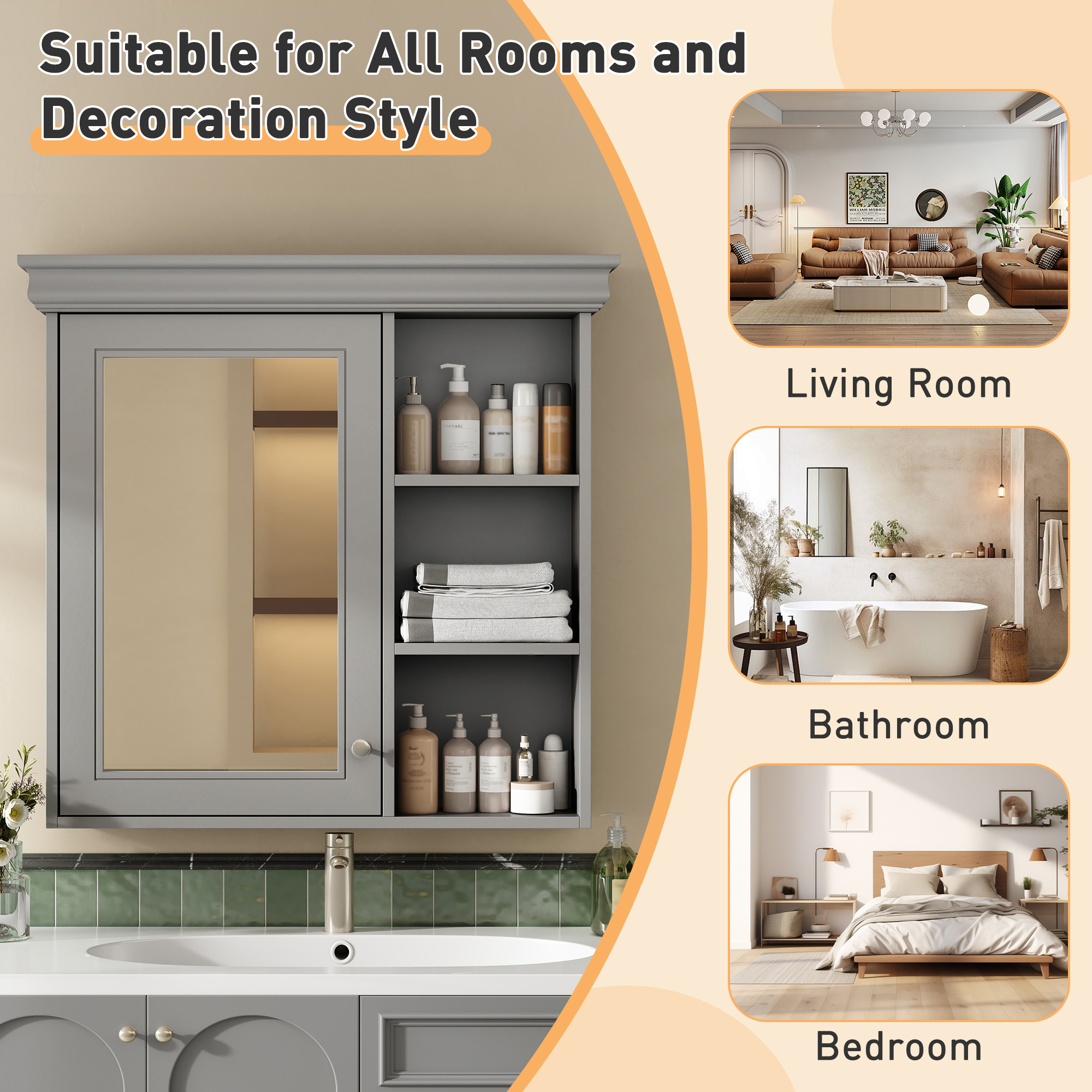 MRS 30'' x 28'' Bathroom Medicine Cabinet with Mirror, Wall Mounted Mirror Cabinet with Storage Organizer, Over the Toilet Storage Storage Cabinet for Bathroom. Designed to provide practical task lighting around a vanity or bathroom mirror while supporting everyday grooming routines. Material: MDF. Product dimensions and weight: length 33.7, width 20.8, height 7, weight 34.83.