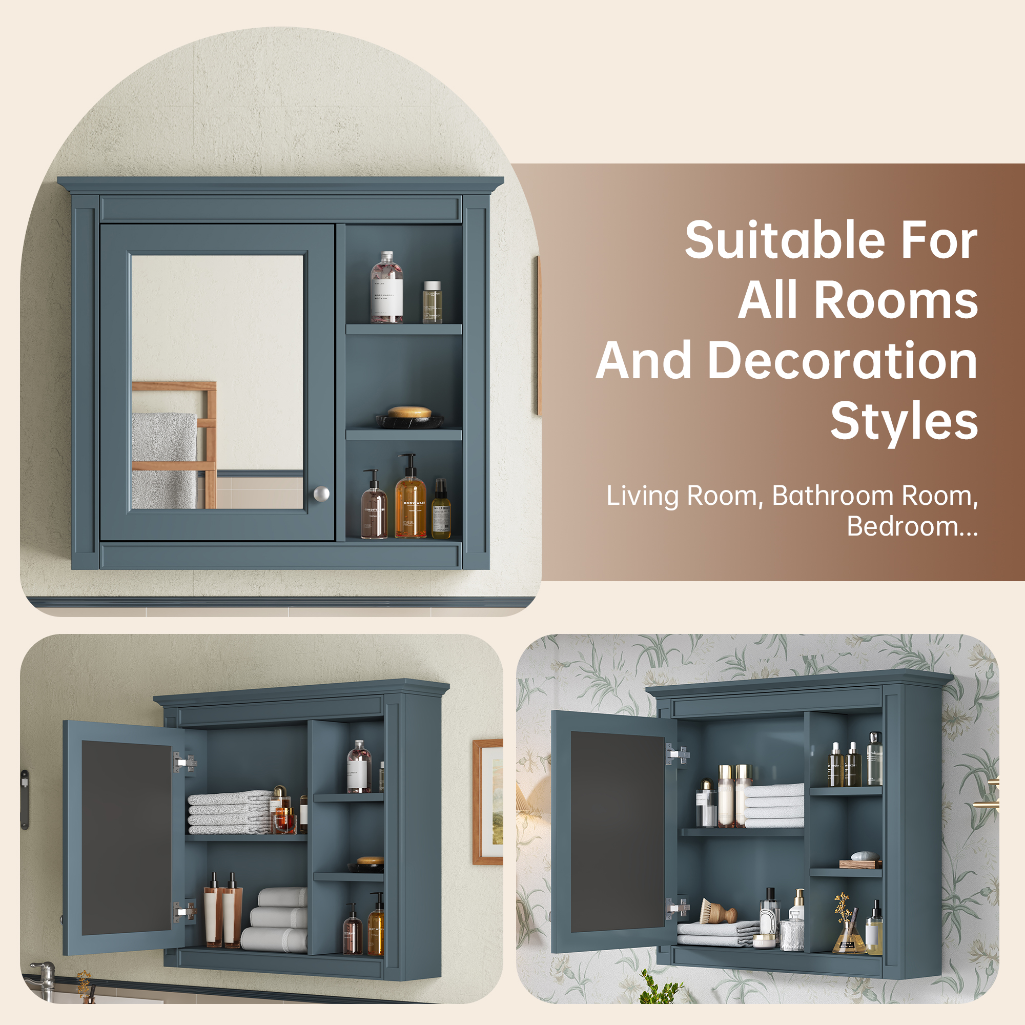 MRS 30'' x 28'' Medicine Cabinet, Wall Mounted Bathroom Storage Cabinet, Modern Bathroom Wall Cabinet with Mirror,Medicine Cabinet, Mirror Cabinet with 3 Open Shelves (Not Include Bathroom Vanity ). Designed to provide practical task lighting around a vanity or bathroom mirror while supporting everyday grooming routines. Material: MDF. Product dimensions and weight: length 33.86, width 24.21, height 6.69, weight 37.48.