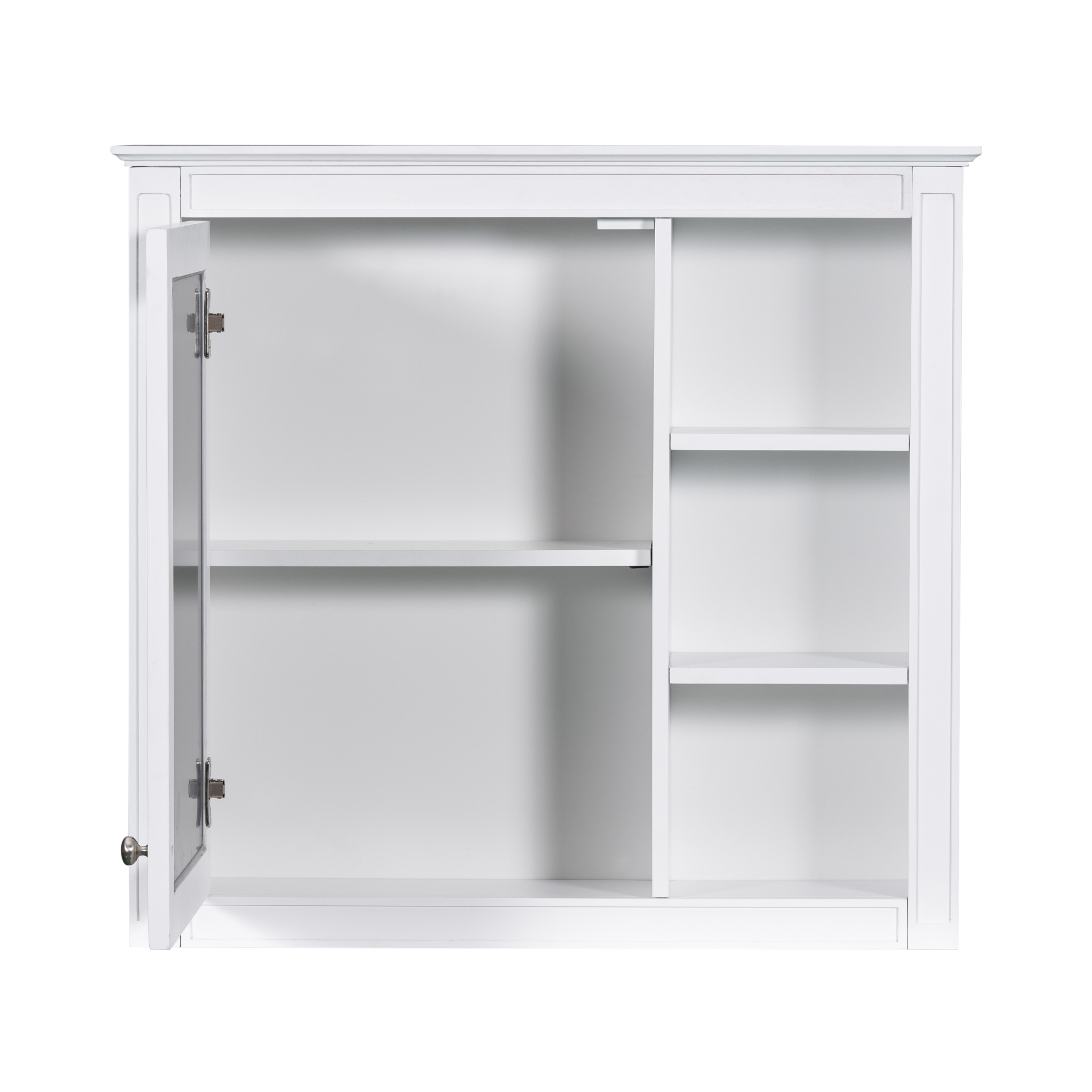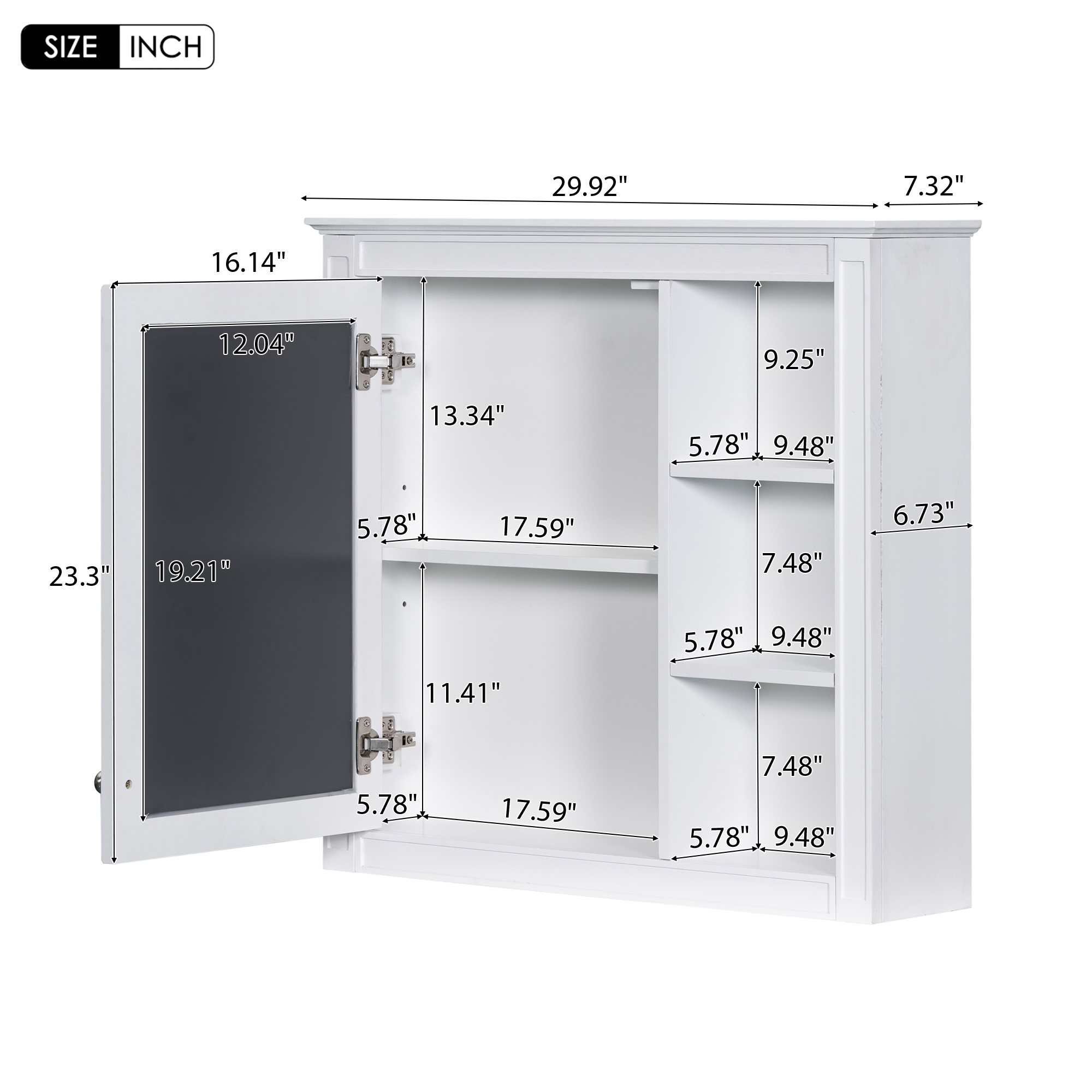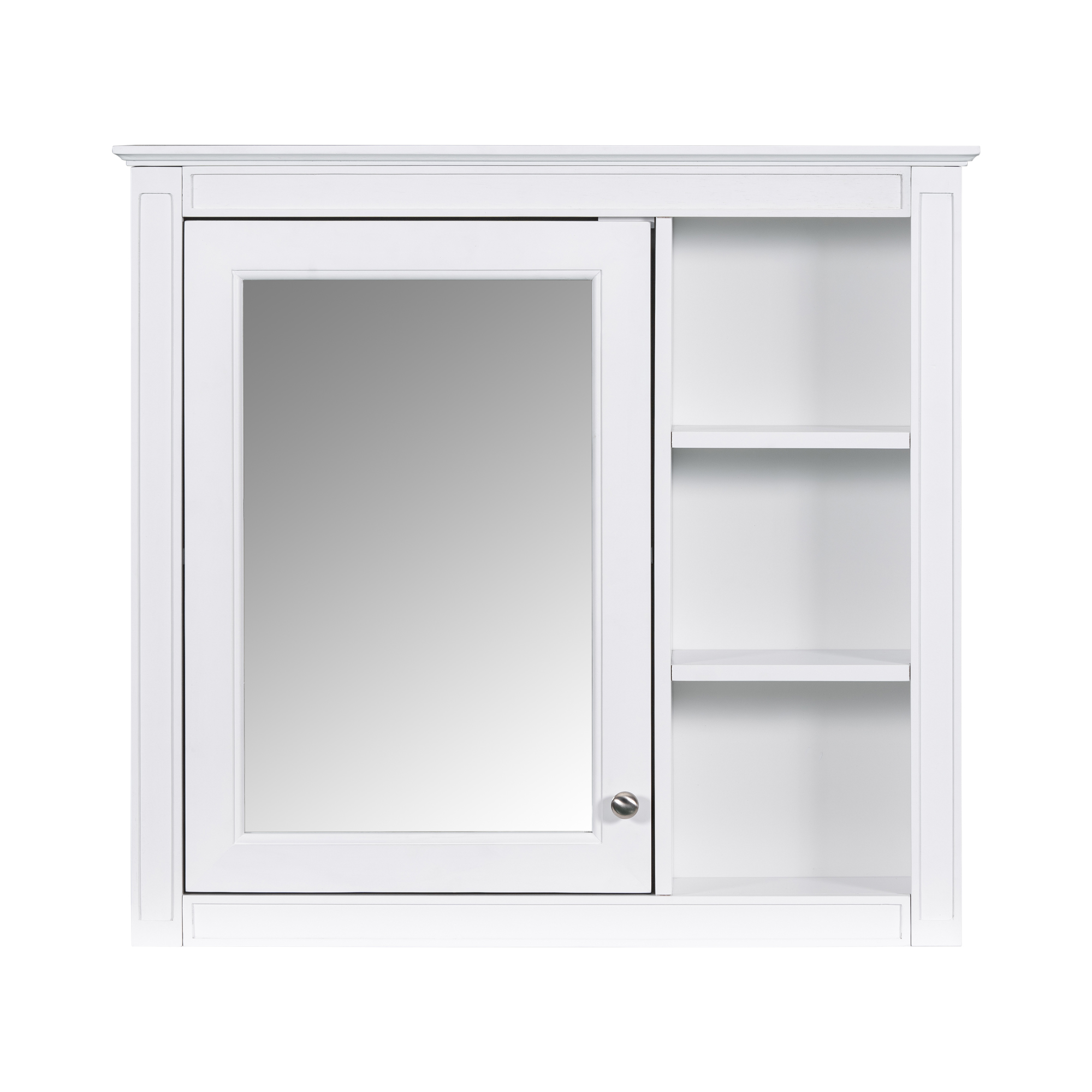 MRS 30'' x 28'' Medicine Cabinet, Wall Mounted Bathroom Storage Cabinet, Modern Bathroom Wall Cabinet with Mirror,Medicine Cabinet, Mirror Cabinet with 3 Open Shelves (Not Include Bathroom Vanity ). Designed to provide practical task lighting around a vanity or bathroom mirror while supporting everyday grooming routines. Material: Solid Wood+MDF+Glass. Product dimensions and weight: length 33.86, width 24.21, height 6.69, weight 37.48.