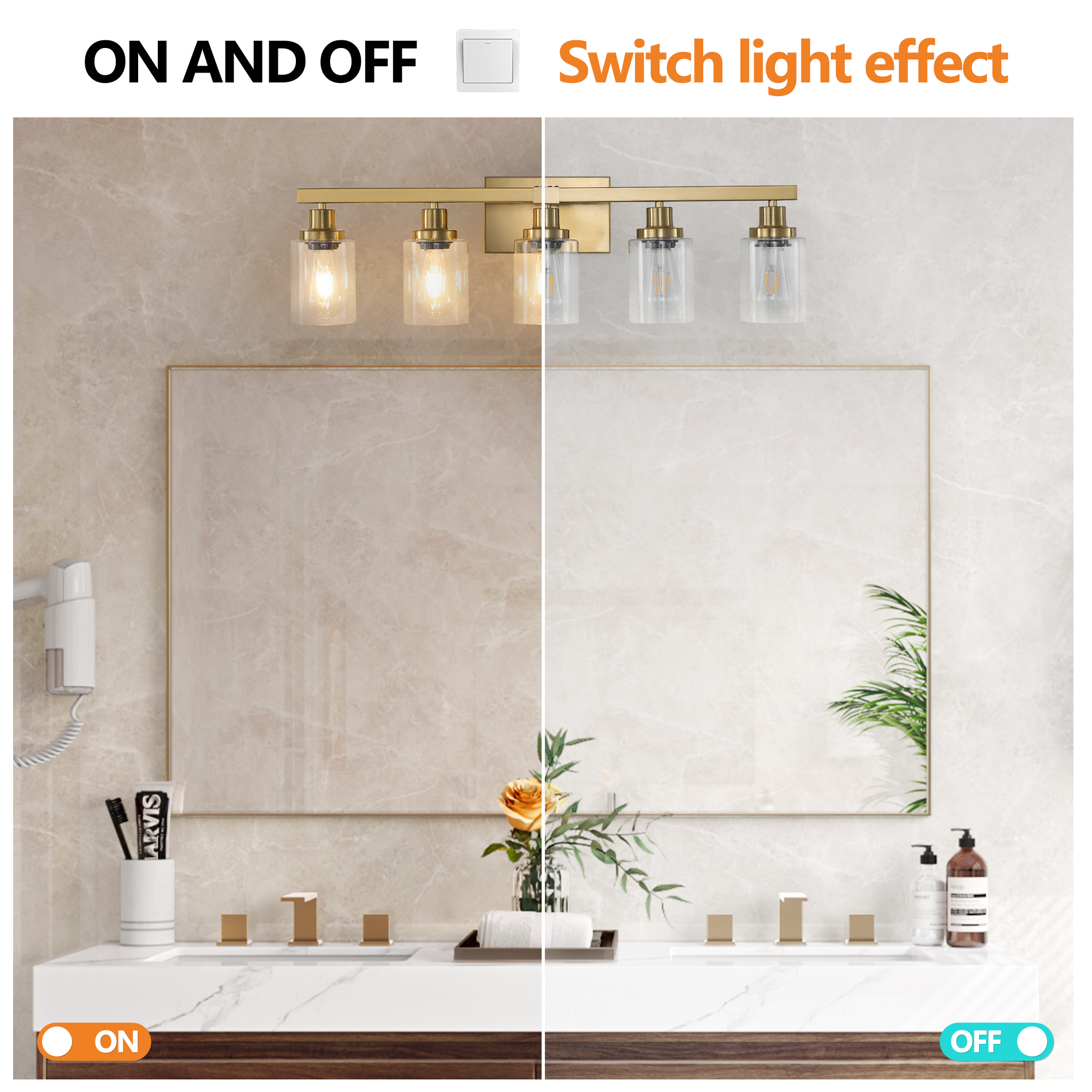 NEOSGO 31" Golden 5-Light Vanity Light with Clear Glass Shades, Modern Iron Metal Bathroom Wall Fixture for Mirror, Ideal for Bathroom and Dressing Table (No Bulbs) is designed to improve daily bathroom routines with a clearer mirror area and more useful lighting around the vanity space. The product presentation suggests a modern wall-mounted mirror intended for grooming, makeup, skincare, shaving, and other tasks that benefit from more even front-facing light. It works especially well in bathrooms, powder rooms, and remodeled vanity areas where customers want the mirror to provide both practical function and a cleaner visual upgrade. This type of mirror is a strong fit for shoppers looking to make the room feel brighter, more modern, and easier to use every day. Overall size is approximately 17.32 x 13.39 x 7.09 inches with a listed weight of 6.4. The current listing includes 10 product images, which help clarify the product shape, proportions, and visual placement in a real room setting.