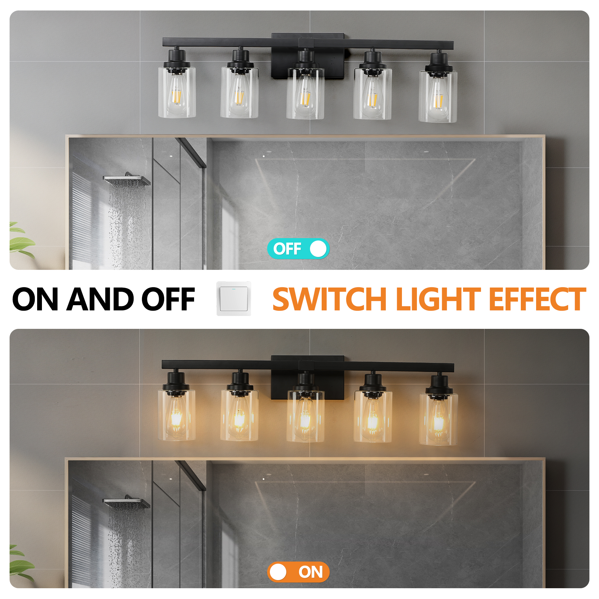 NEOSGO 31" Modern Black 5-Light Bathroom Vanity Light Fixture, Industrial Wall Sconce with Clear Glass Shades for Mirror, Bathroom, Bedroom, and Hallway (No Bulbs) is designed to improve daily bathroom routines with a clearer mirror area and more useful lighting around the vanity space. The product presentation suggests a modern wall-mounted mirror intended for grooming, makeup, skincare, shaving, and other tasks that benefit from more even front-facing light. It works especially well in bathrooms, powder rooms, and remodeled vanity areas where customers want the mirror to provide both practical function and a cleaner visual upgrade. This type of mirror is a strong fit for shoppers looking to make the room feel brighter, more modern, and easier to use every day. Overall size is approximately 17.32 x 13.39 x 7.09 inches with a listed weight of 6.4. The current listing includes 9 product images, which help clarify the product shape, proportions, and visual placement in a real room setting.