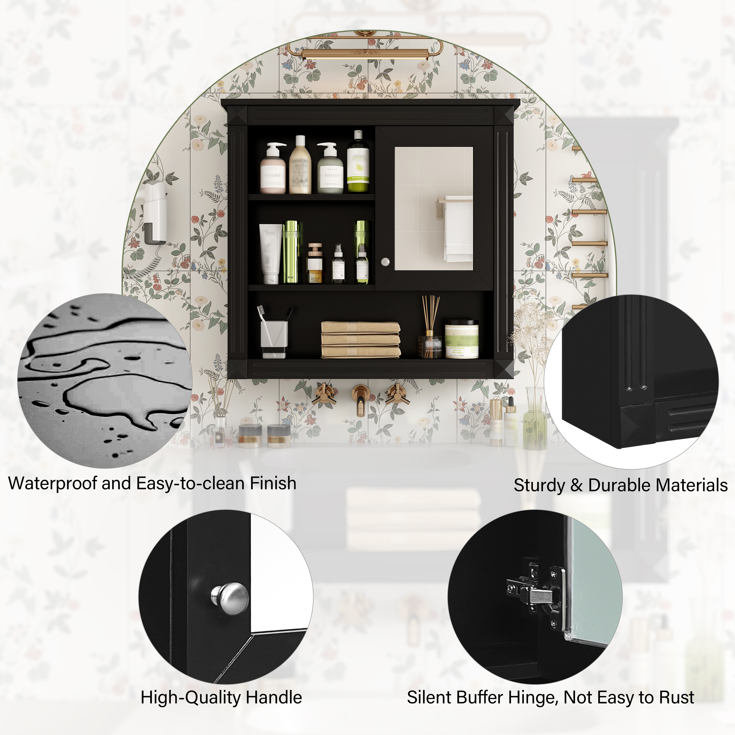 MRS 32'' Bathroom Wall Cabinet with Mirror, Wall Mounted Medicine Cabinet with 4 Shelves, Mirrored Door Over Toilet Storage Cabinet& Adjustable Shelves. Designed to provide practical task lighting around a vanity or bathroom mirror while supporting everyday grooming routines. Material: MDF+glass. Product dimensions and weight: length 36, width 17, height 7.5, weight 34.39.