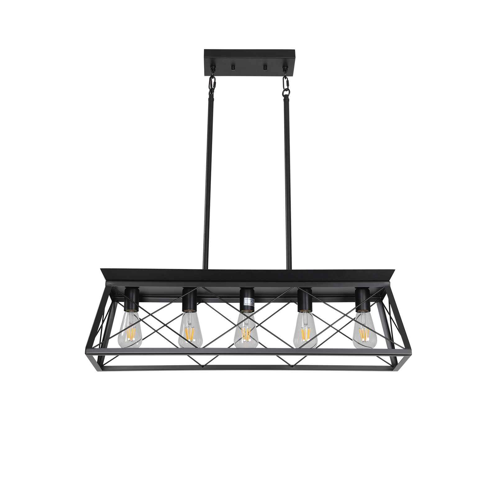 NEOSGO 32-inch Black Industrial 5-Light Pendant Chandelier, Modern Metal Cage Design, Adjustable Hanging Light for Dining Room, Kitchen, Living Room (Bulb Not Included) is designed to serve as both a lighting source and a decorative focal point within the room. This type of fixture is especially effective above dining tables, in entryways, and in living spaces where the customer wants overhead light with stronger visual impact. The product presentation suggests a style-driven fixture that helps define the ceiling area and gives the space a more elevated, finished character. It is a strong fit for customers who want lighting that contributes to the overall look of the room rather than functioning as a utility piece alone. Overall size is approximately 33.5 x 12 x 10.6 inches with a listed weight of 15.4. The current listing includes 10 product images, which help clarify the product shape, proportions, and visual placement in a real room setting.